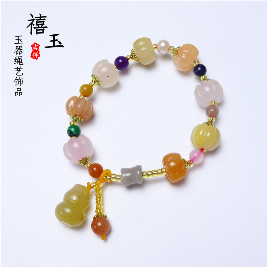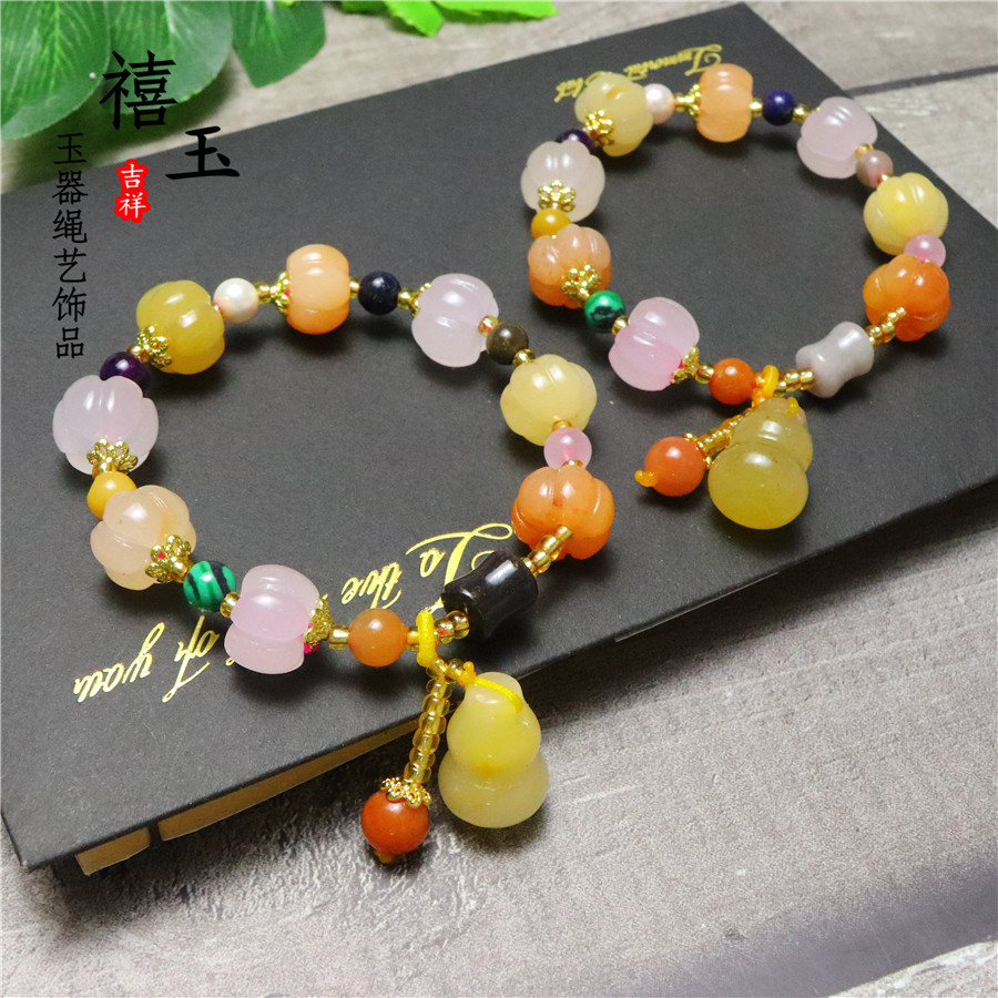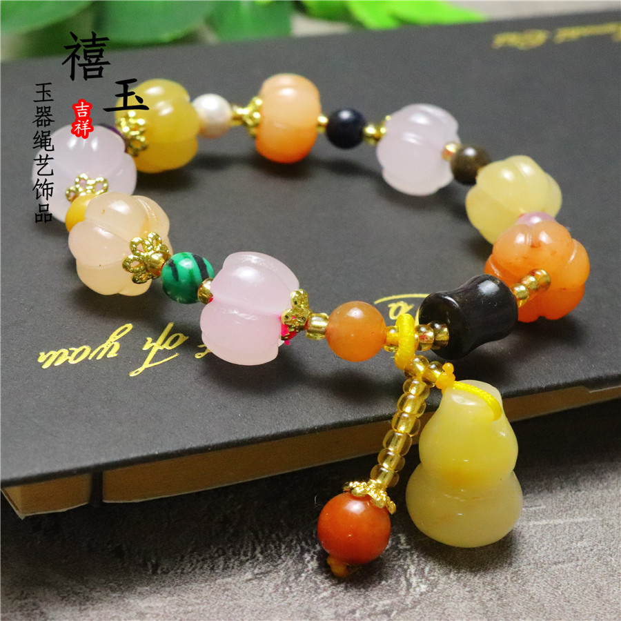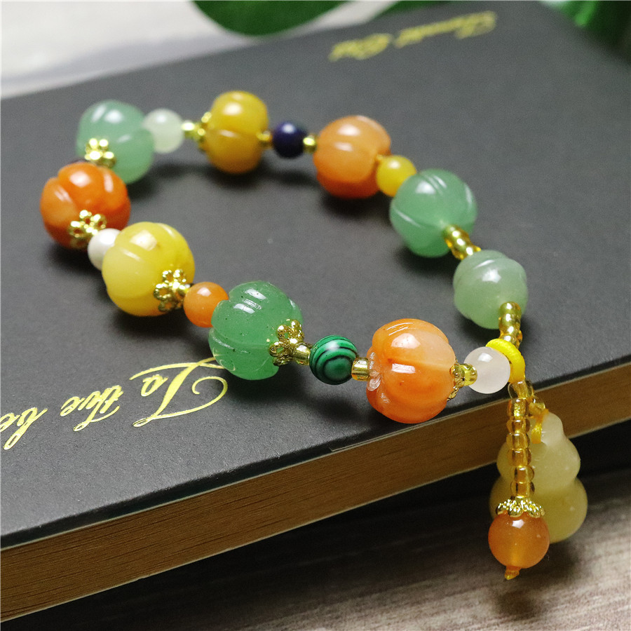 颜色 三彩南瓜珠手串,南瓜珠手串,苹果桶珠,三彩南瓜竹节,风铃花,10mm南瓜手串