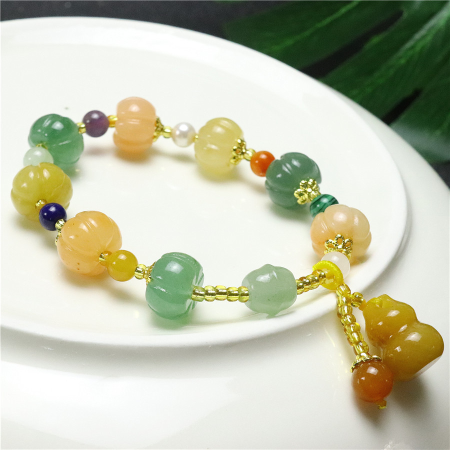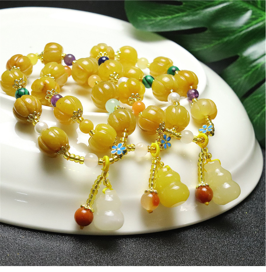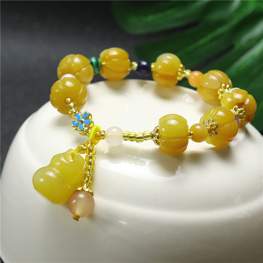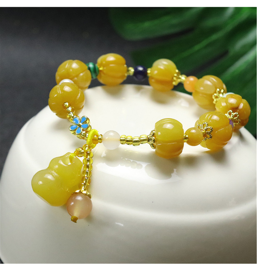新品天然黄玉金丝玉南瓜手串批发 招财旺运 男女款手链厂家直销