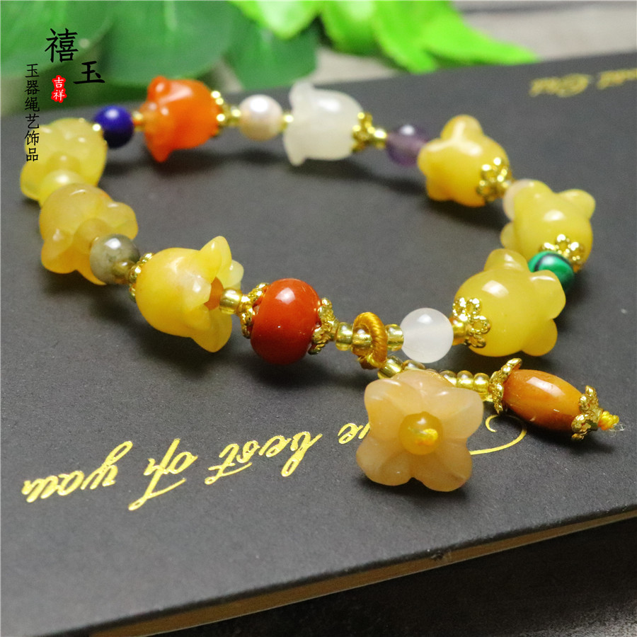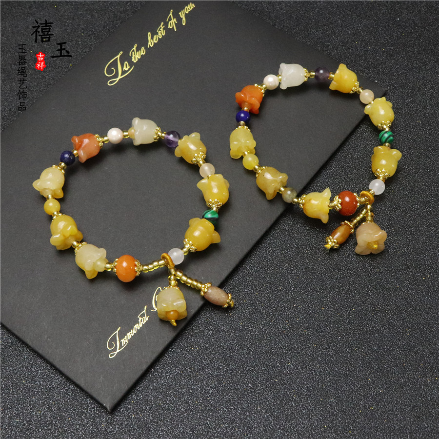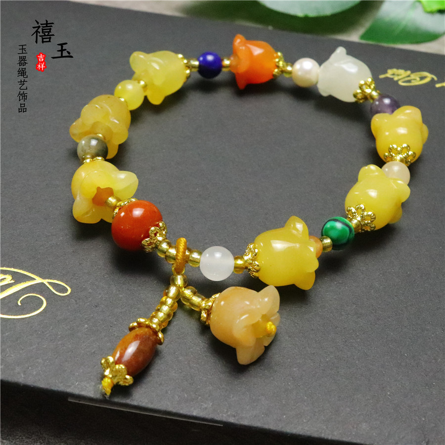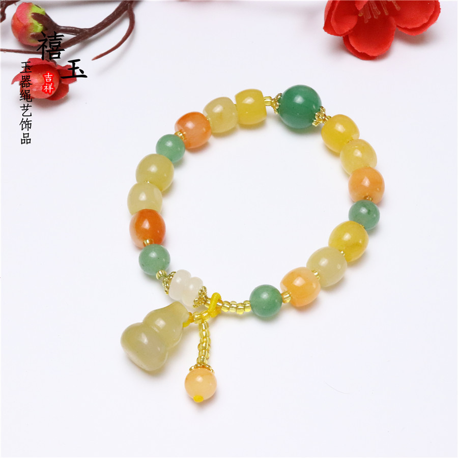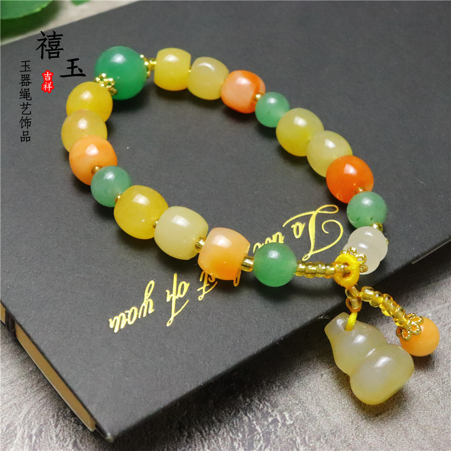 新品天然黄玉金丝玉南瓜手串批发 招财旺运 男女款手链厂家直销