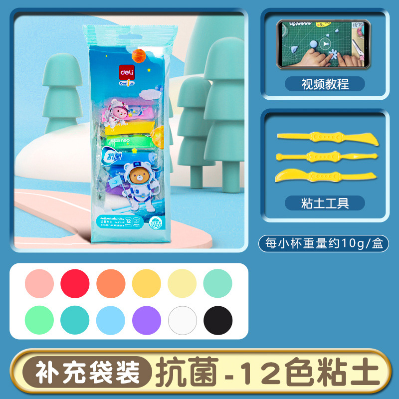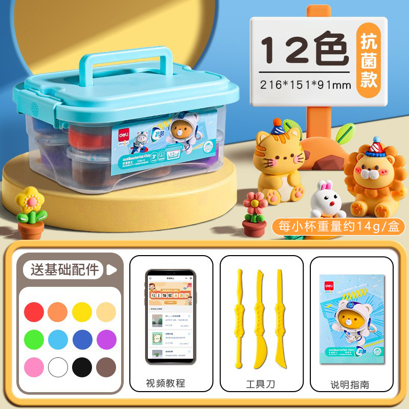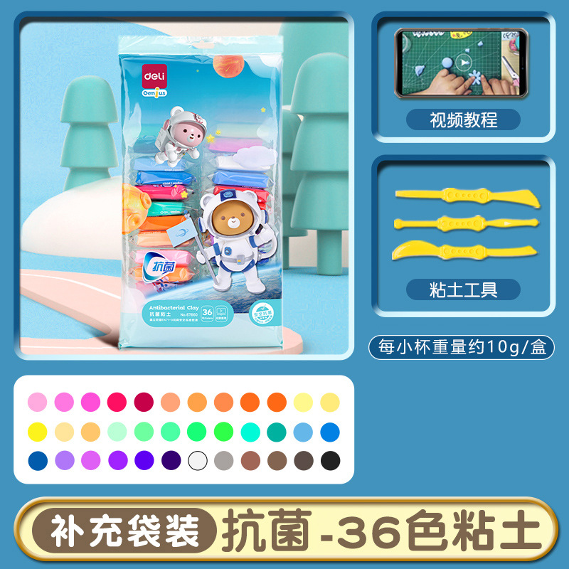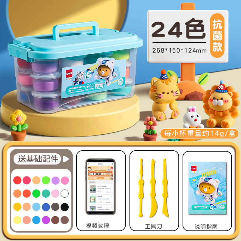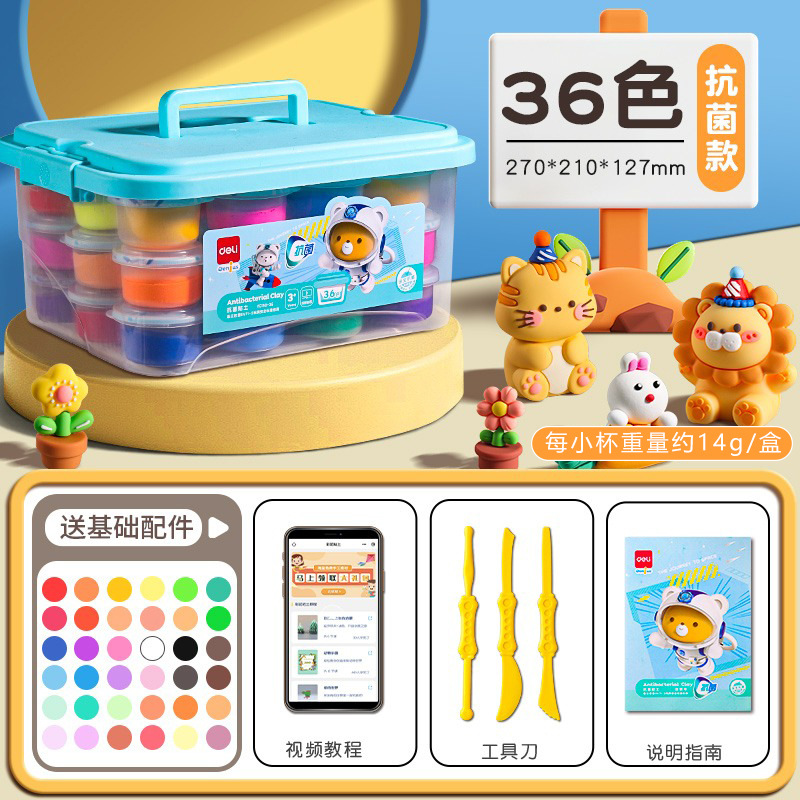得力YC150超轻粘土抗菌安全12 36色小学生橡皮泥儿童彩泥24色黏土