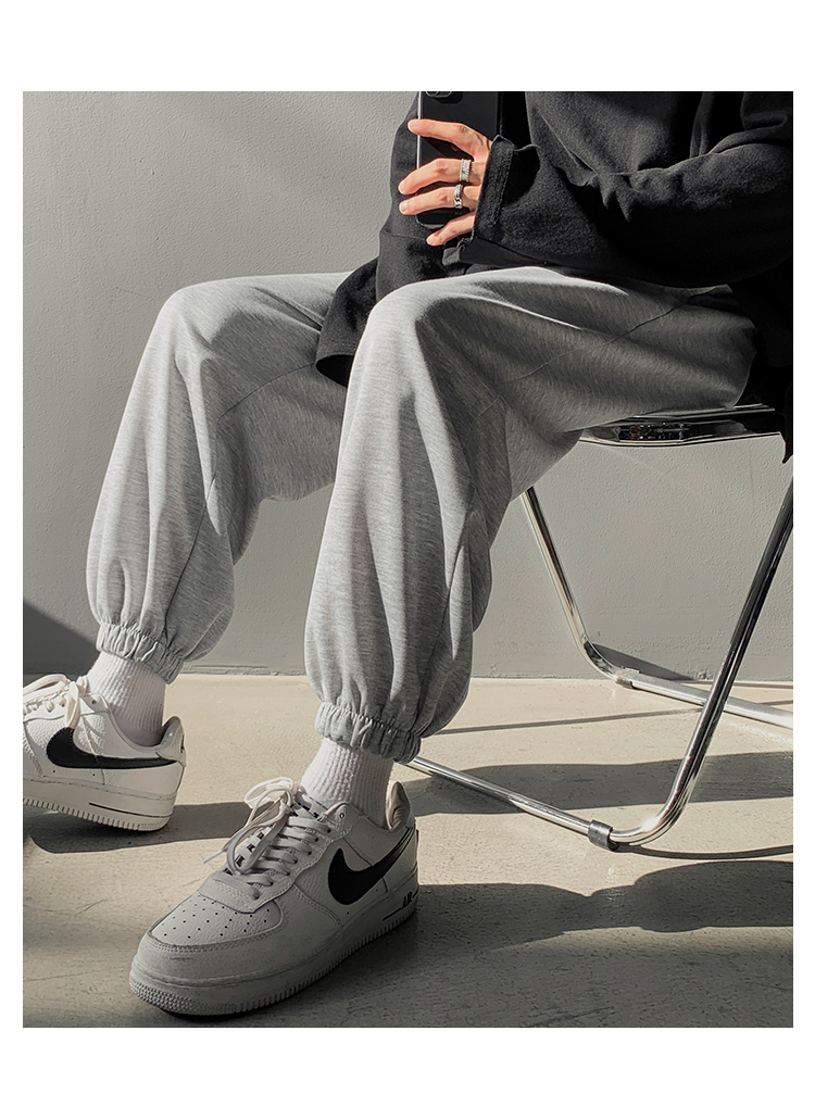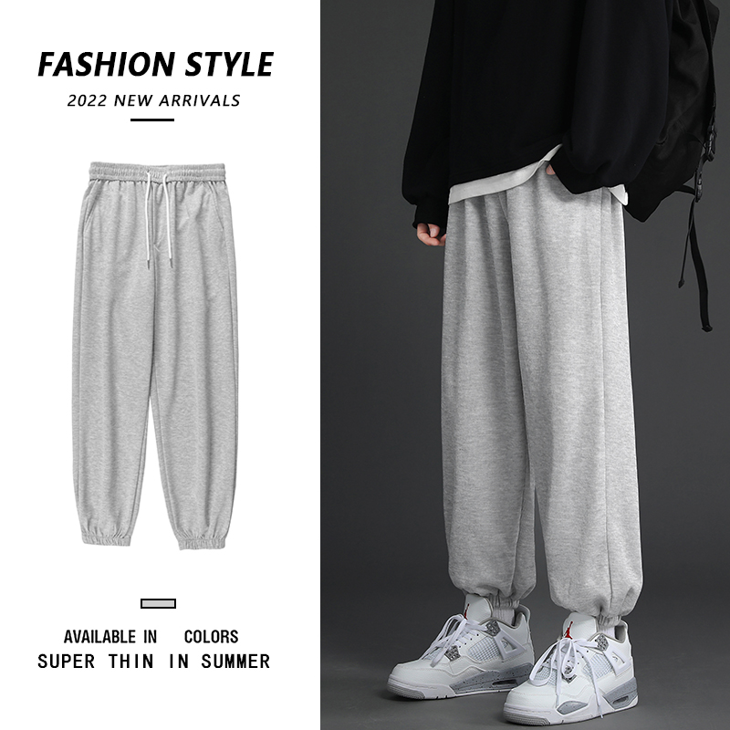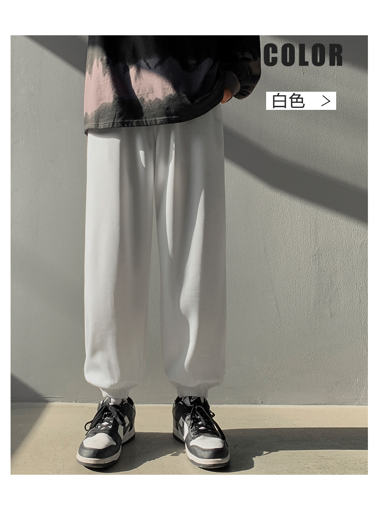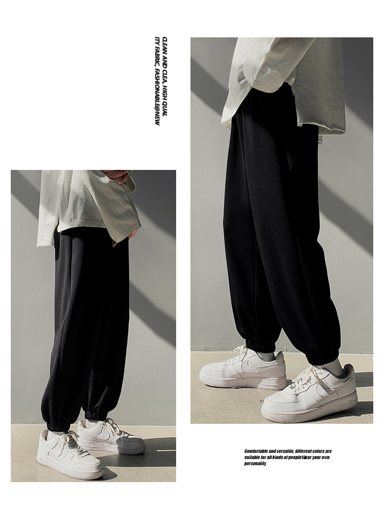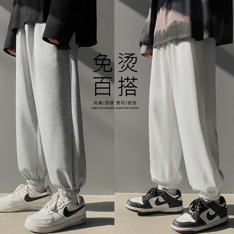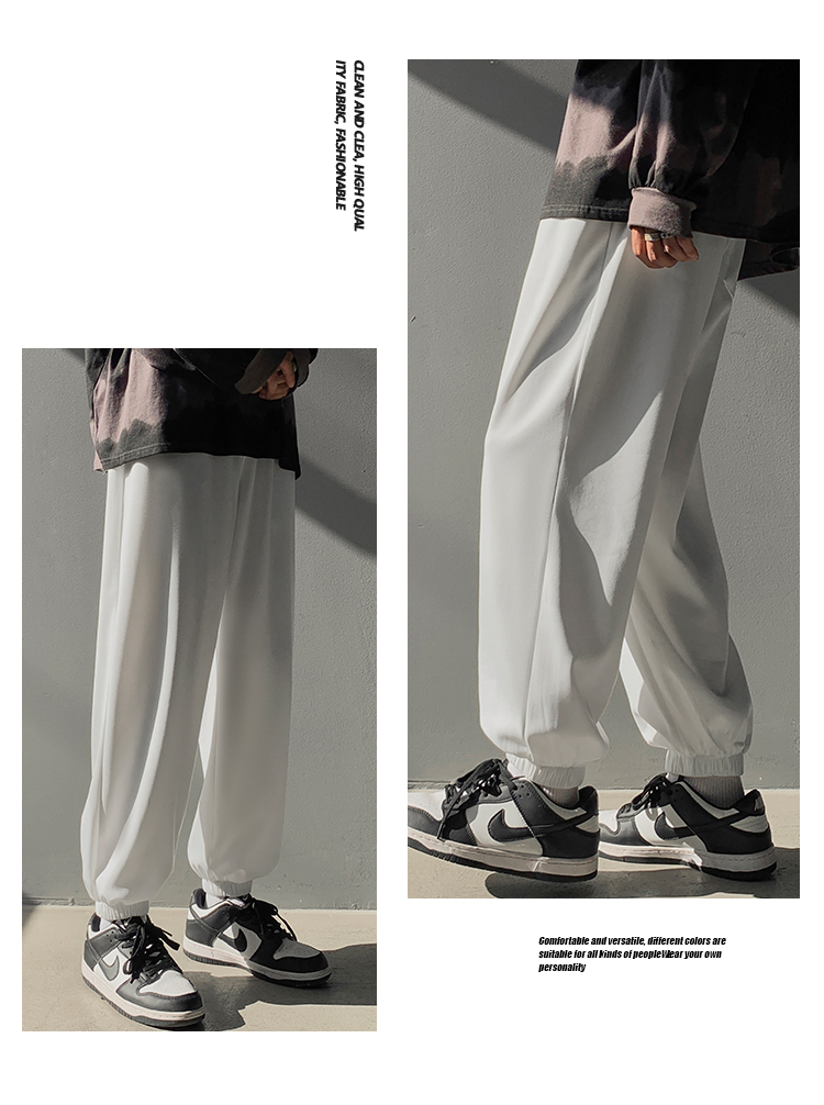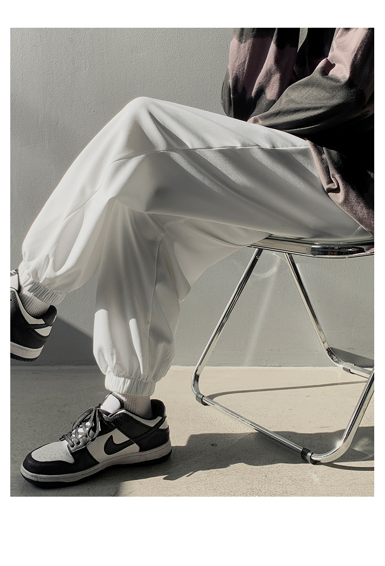 搭配馬丁靴的褲子男夏季薄款白色束腳衛褲情侶休閒運動美式工裝褲