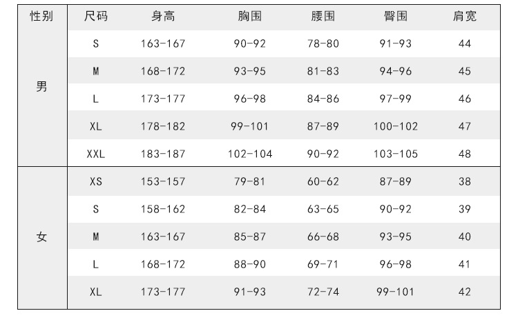 尺码 S,M,L,XL,XXL,儿童110码,儿童120码,儿童130码,儿童140码,儿童150码