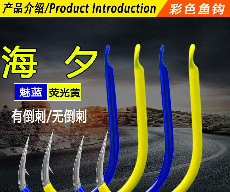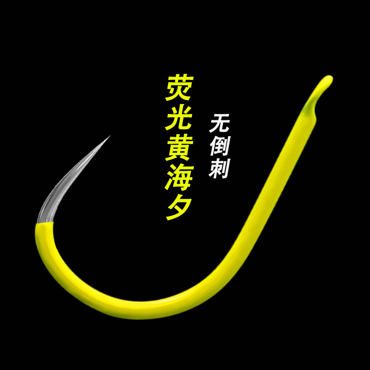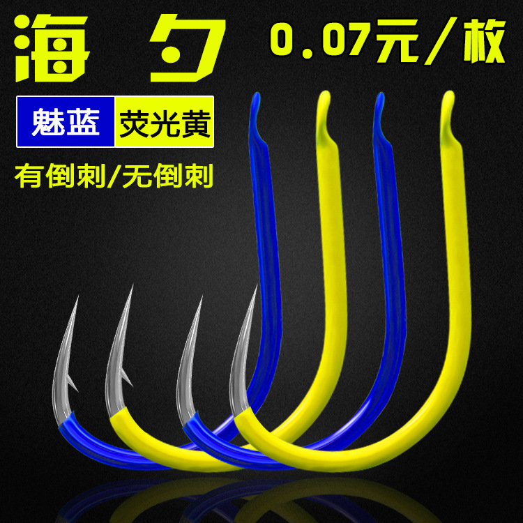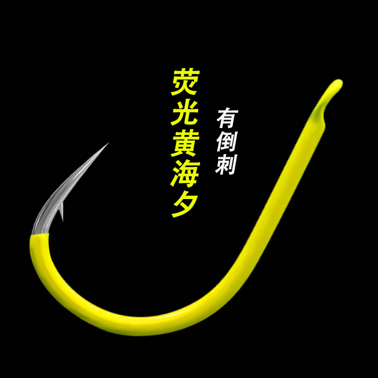 彩色海夕荧光黄魅蓝红色日本高碳有倒刺尖锋散装钓鱼钩批发