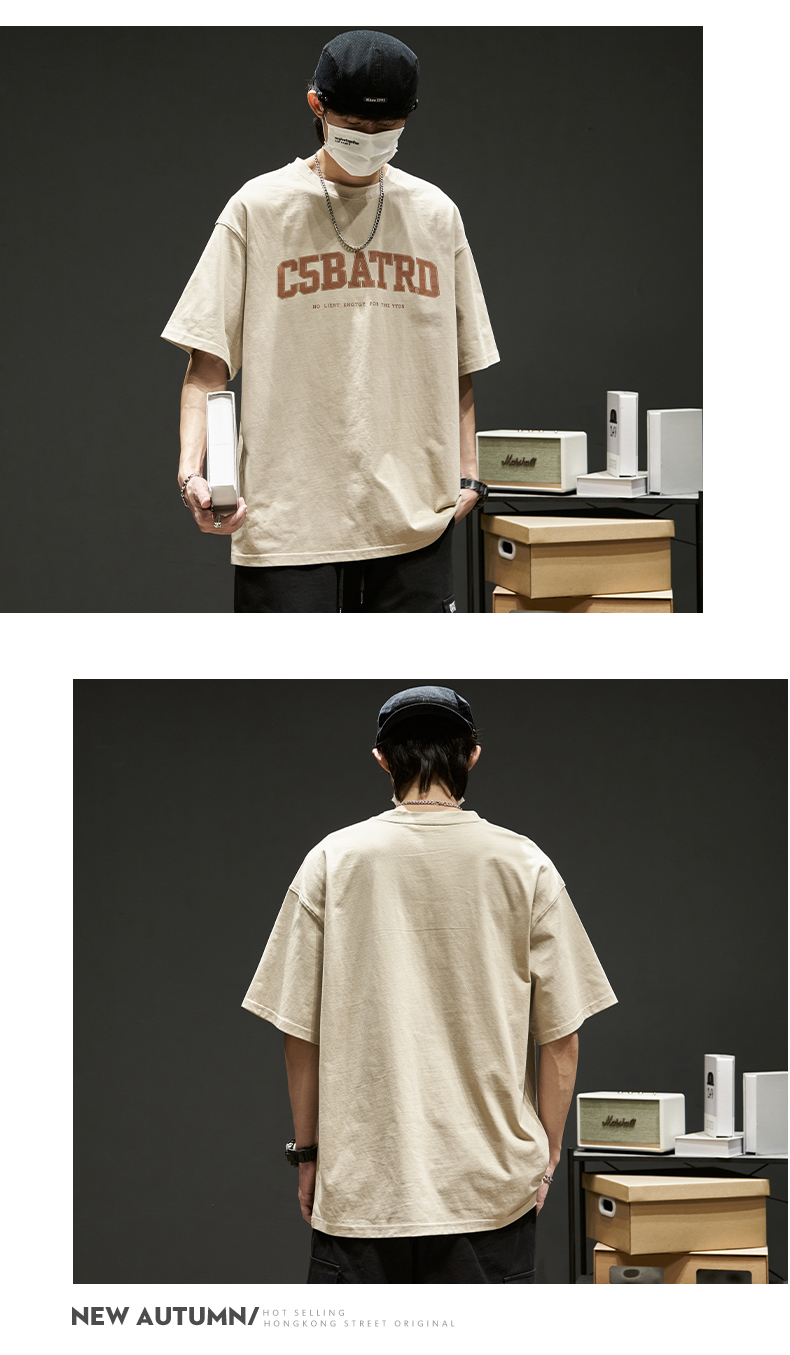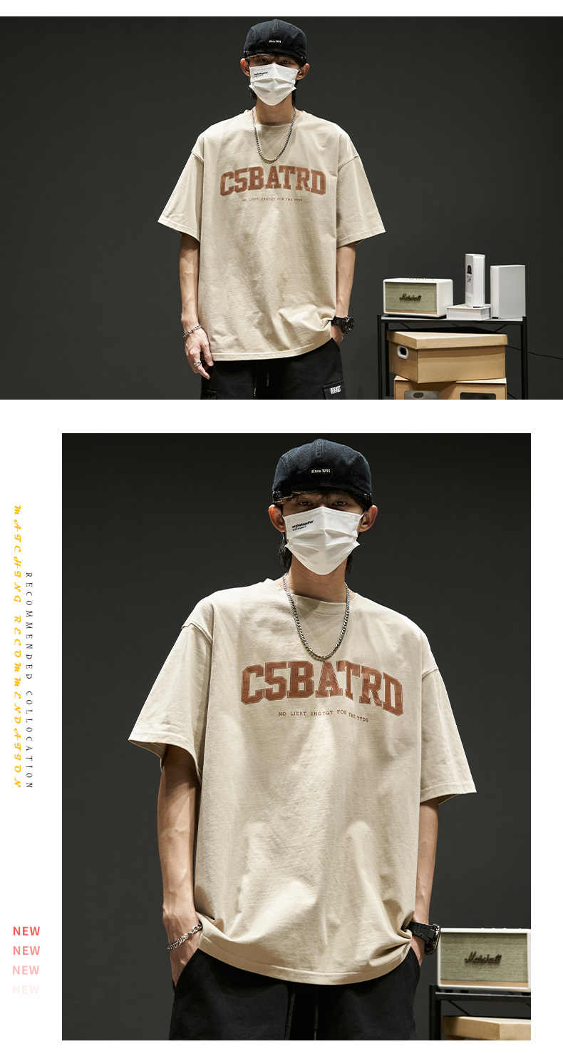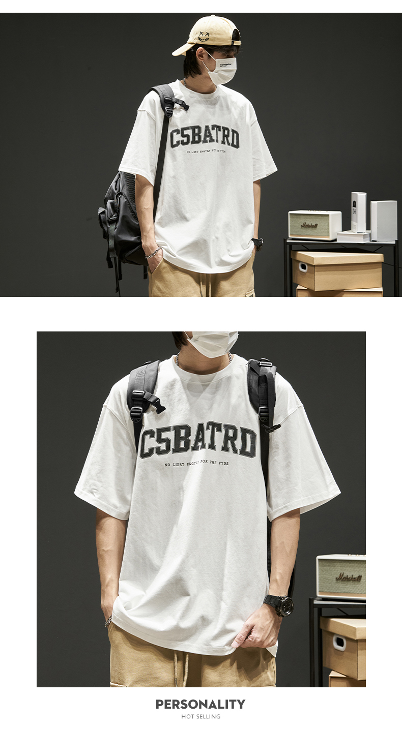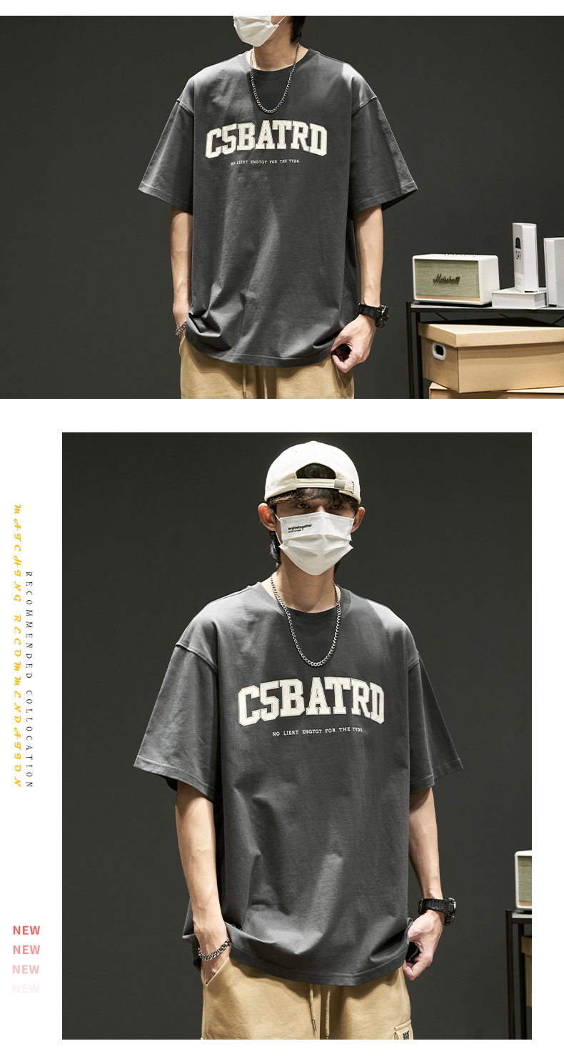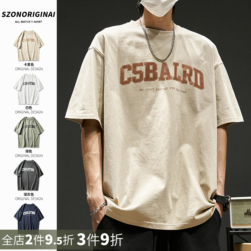 T恤男夏季日系寬鬆純棉字母印花T恤重磅280g新款休閒短袖潮流ins