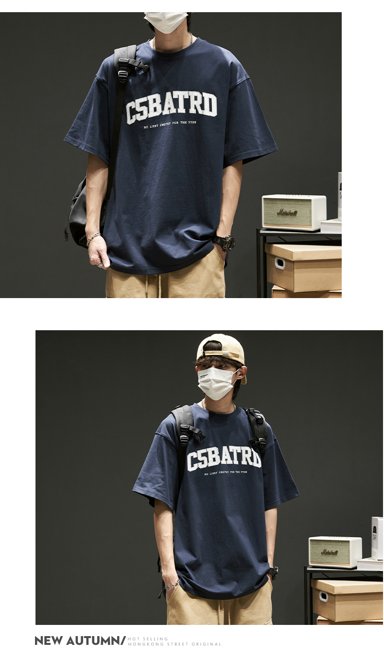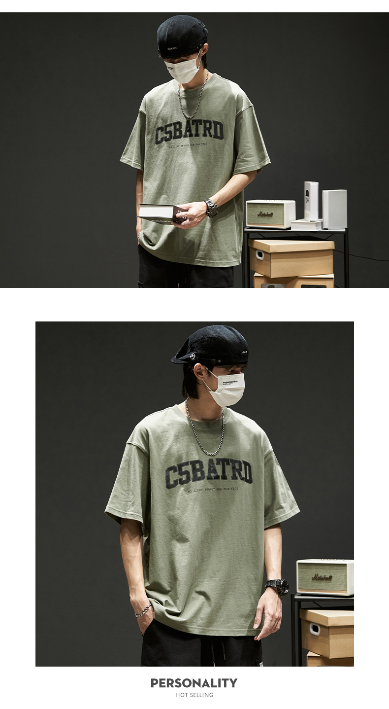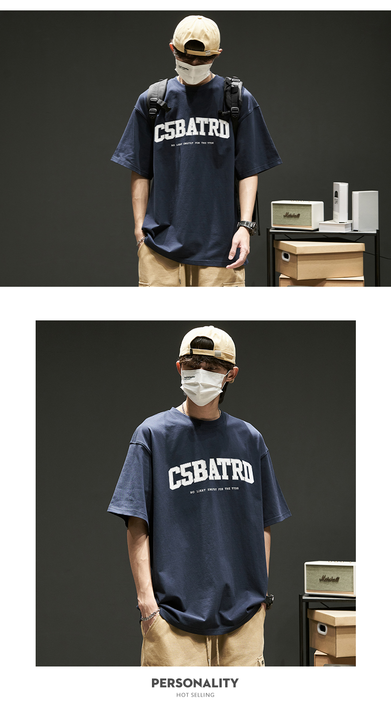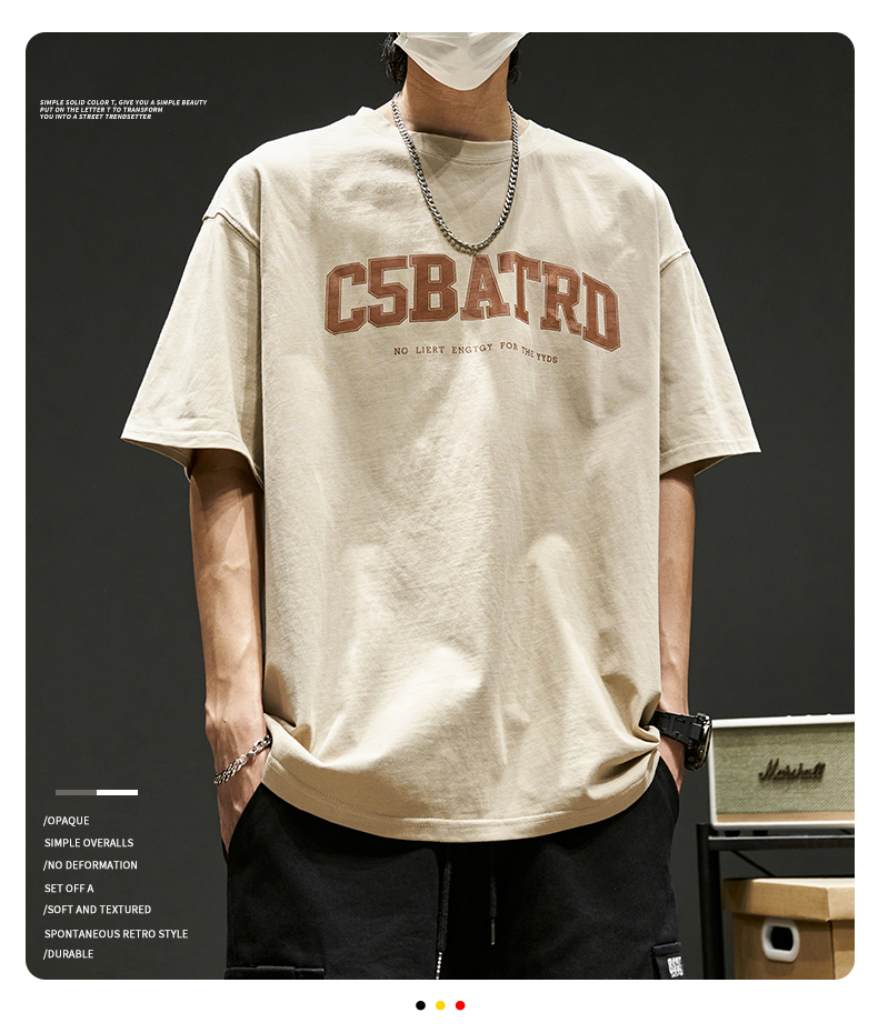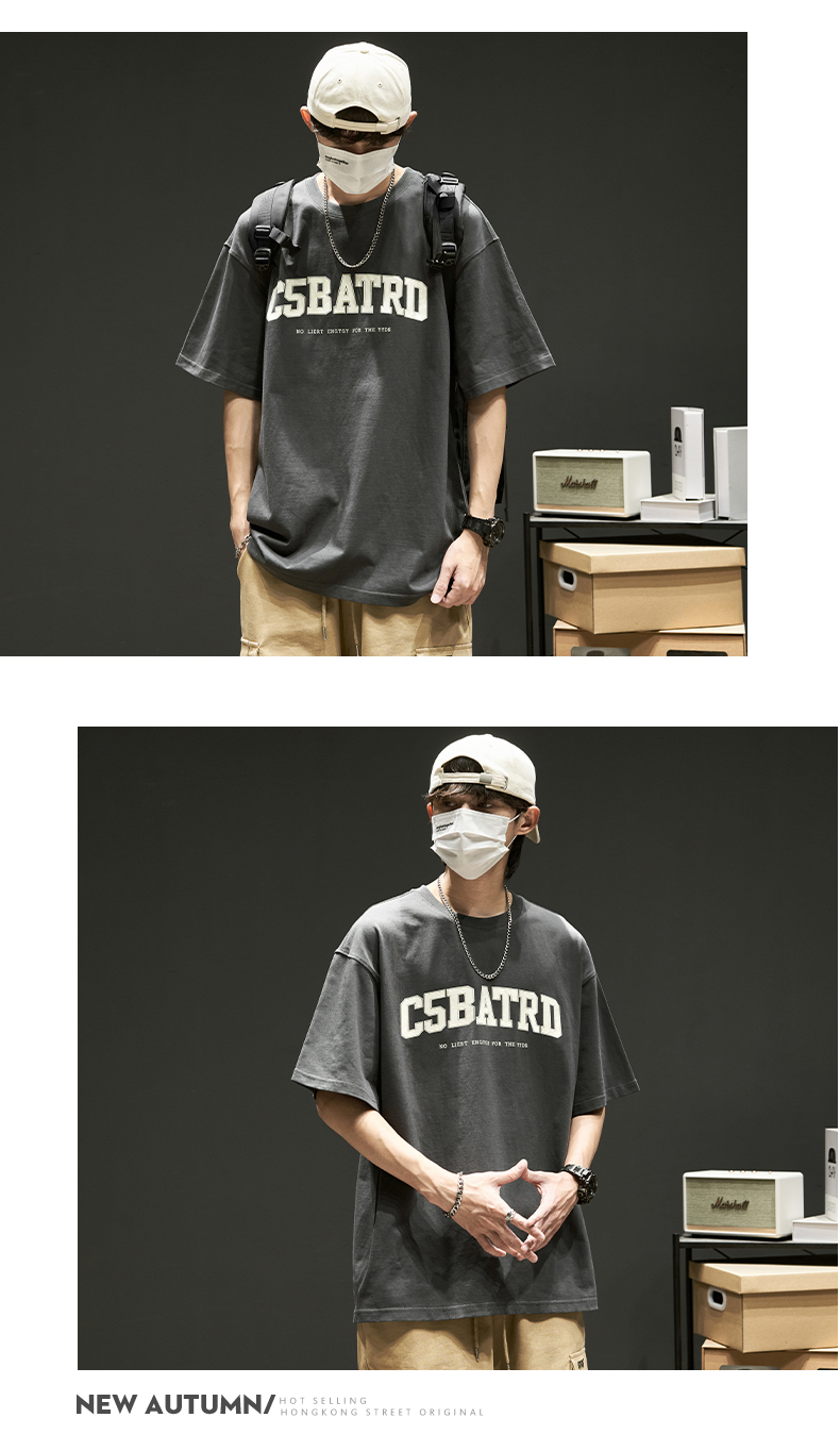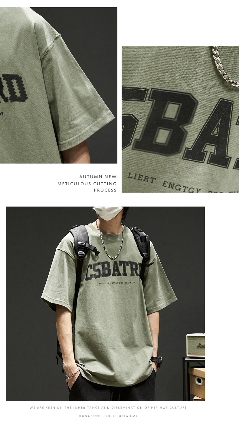 T恤男夏季日系寬鬆純棉字母印花T恤重磅280g新款休閒短袖潮流ins