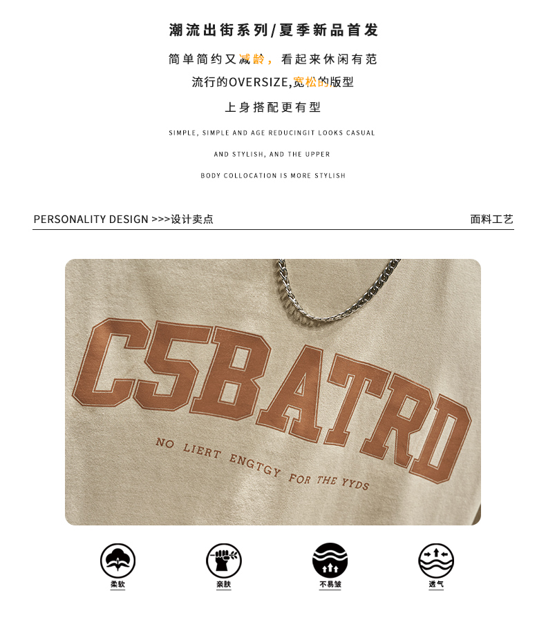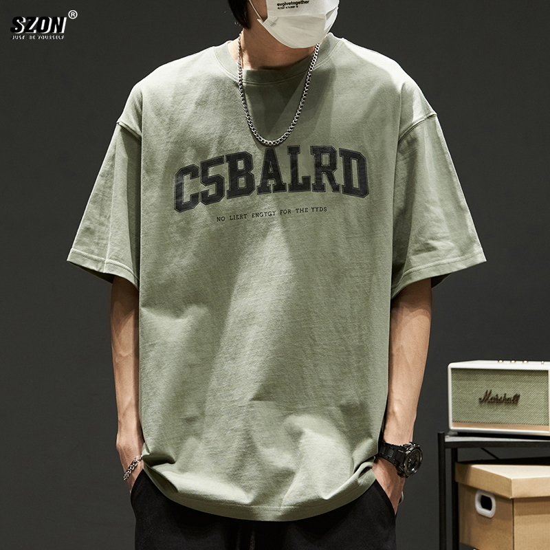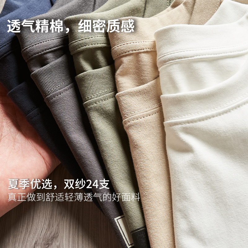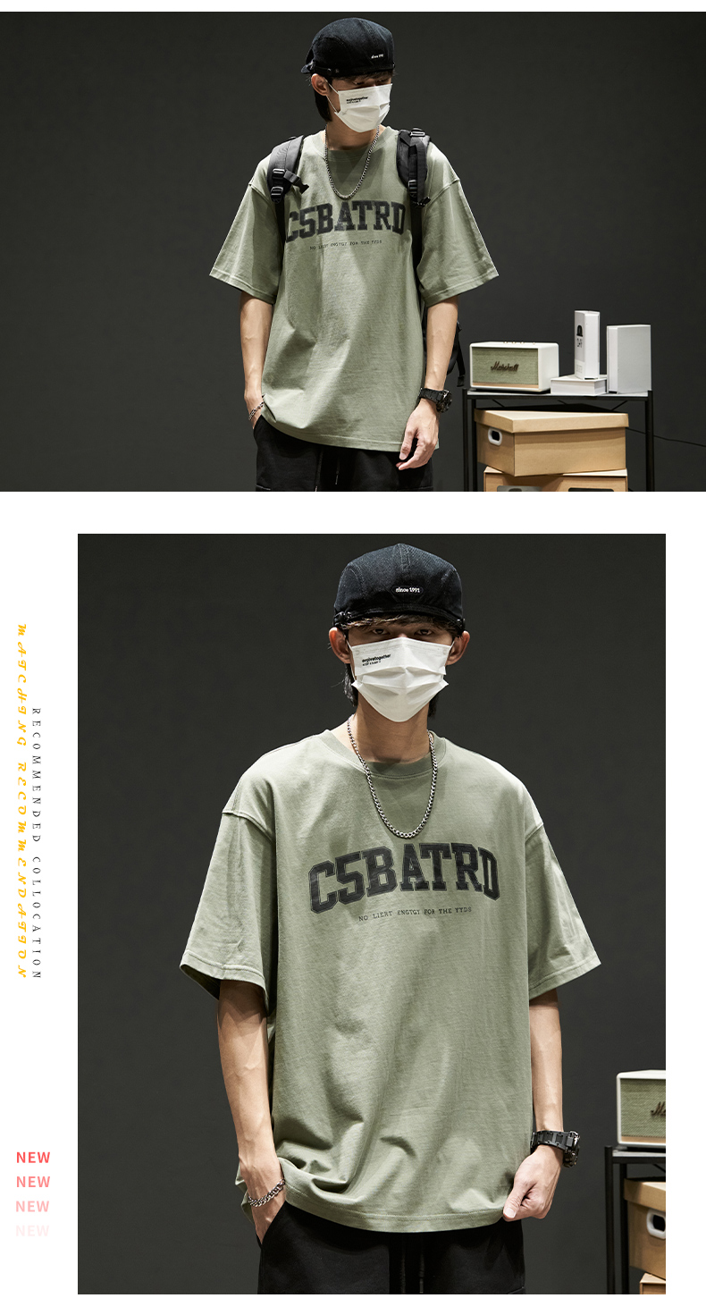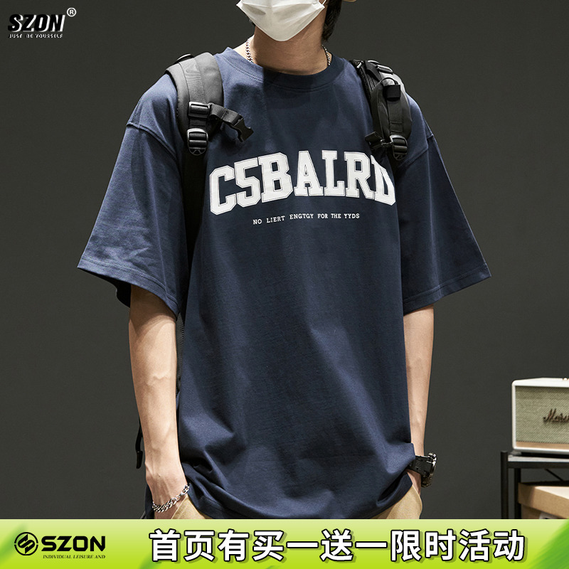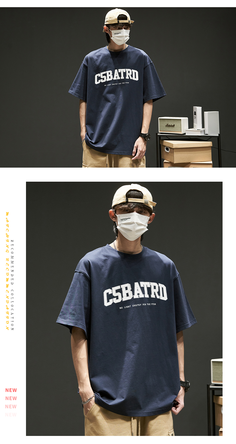 T恤男夏季日系寬鬆純棉字母印花T恤重磅280g新款休閒短袖潮流ins
