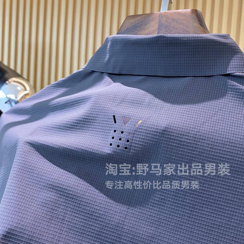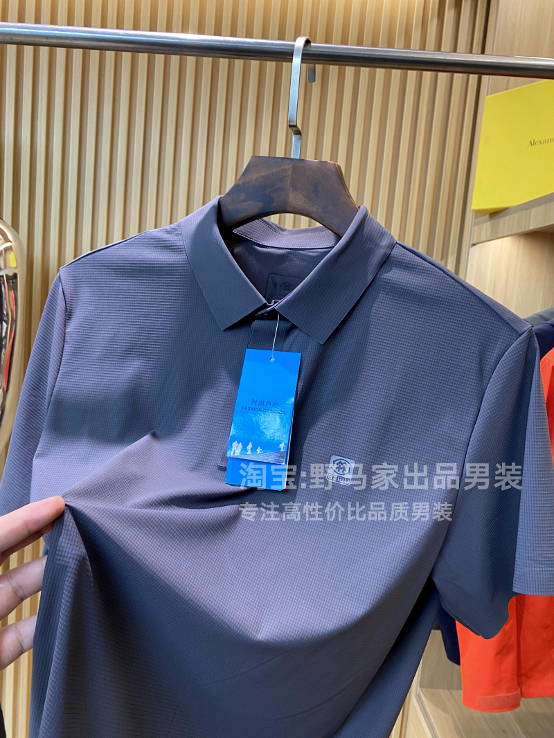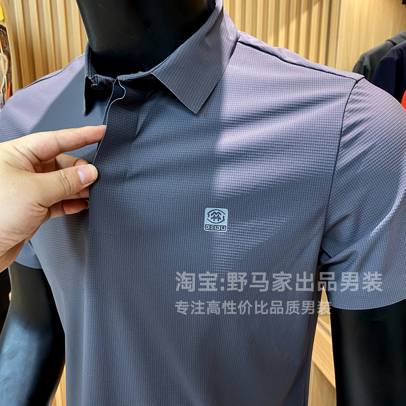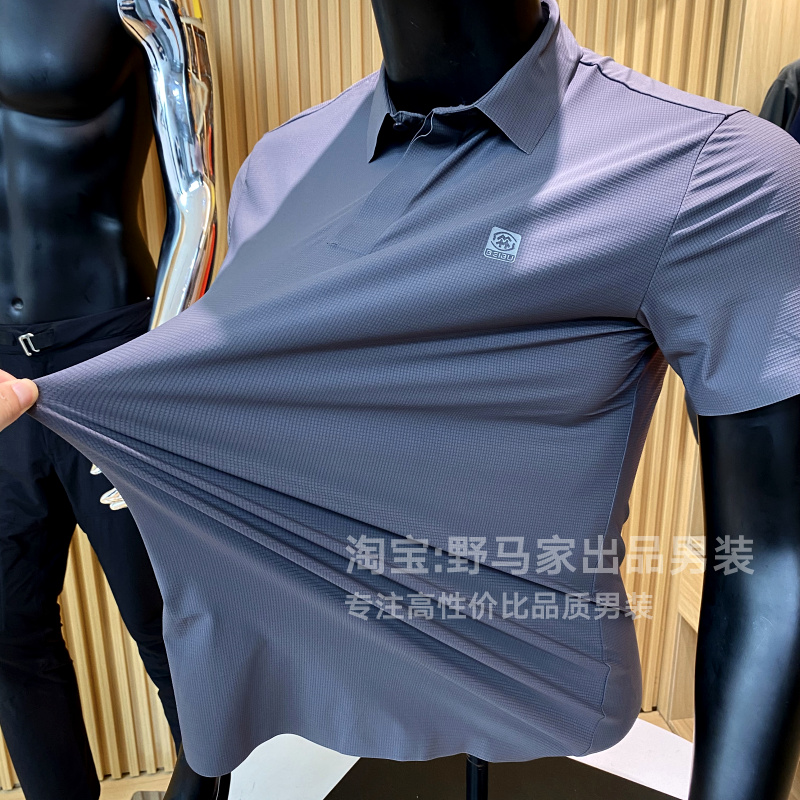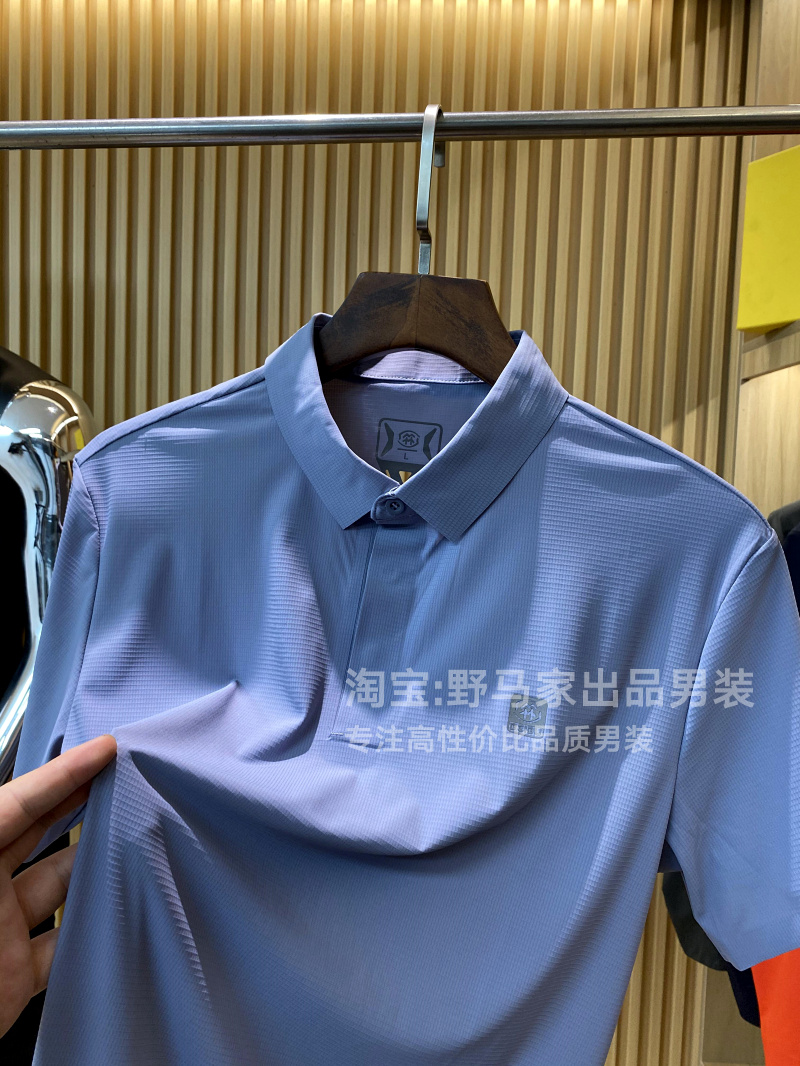高檔貨 無痕壓膠!激光沖孔!夏季男士商務休閒翻領冰絲短袖T恤