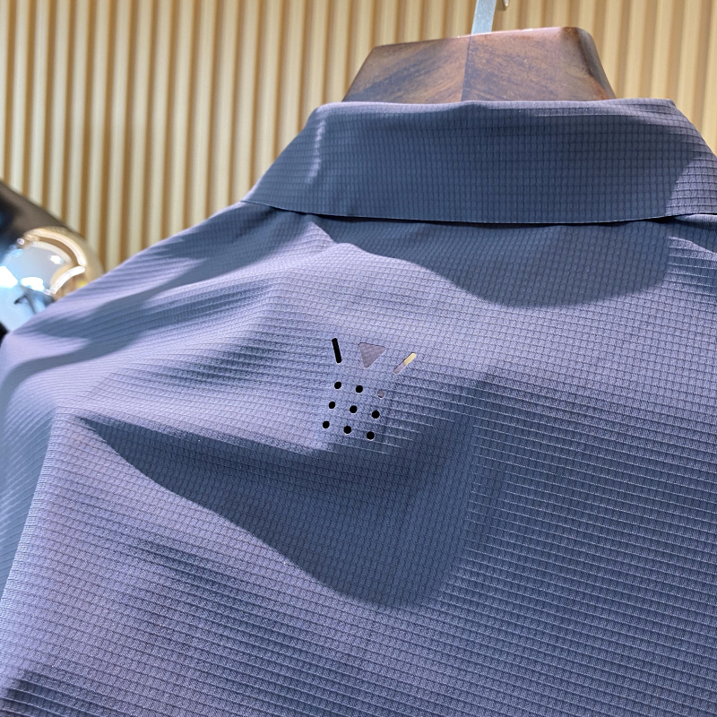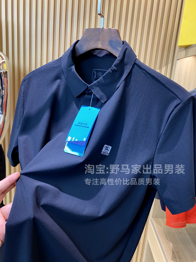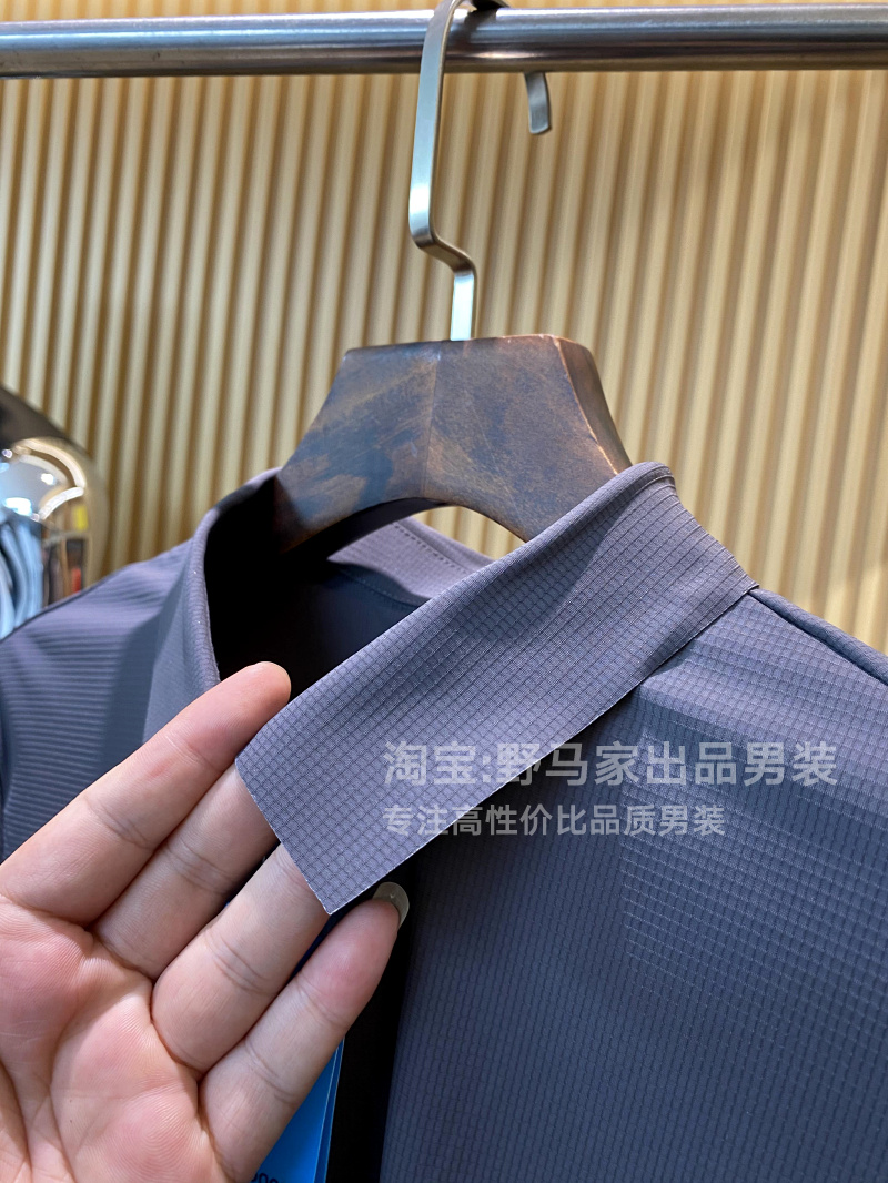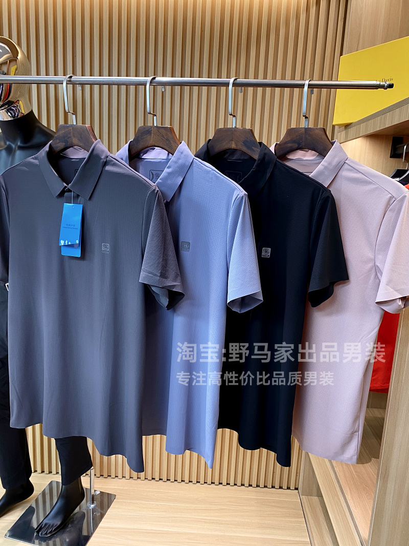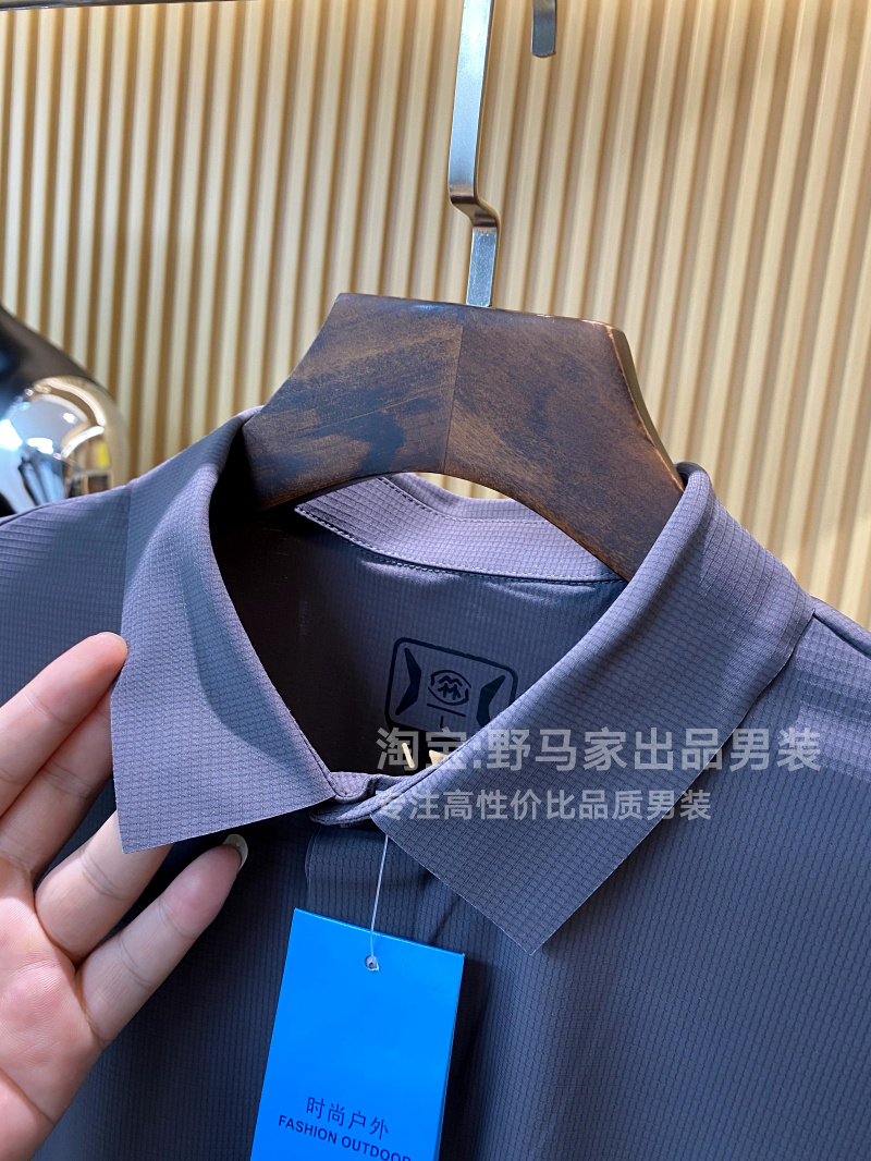 高檔貨 無痕壓膠!激光沖孔!夏季男士商務休閒翻領冰絲短袖T恤
