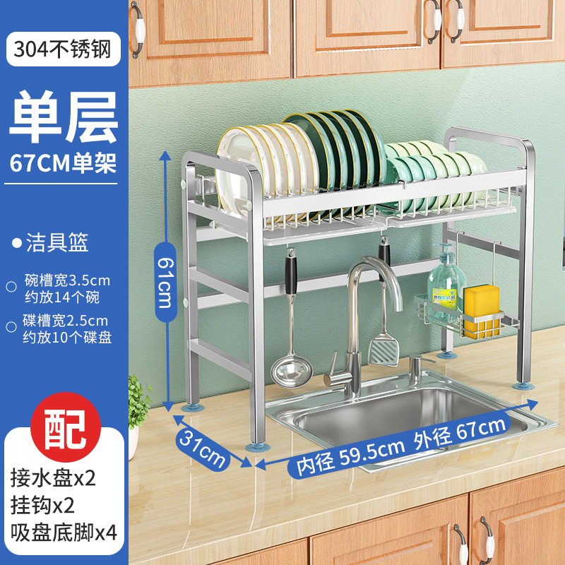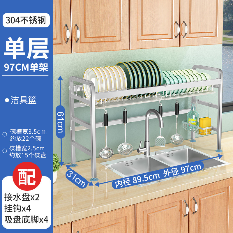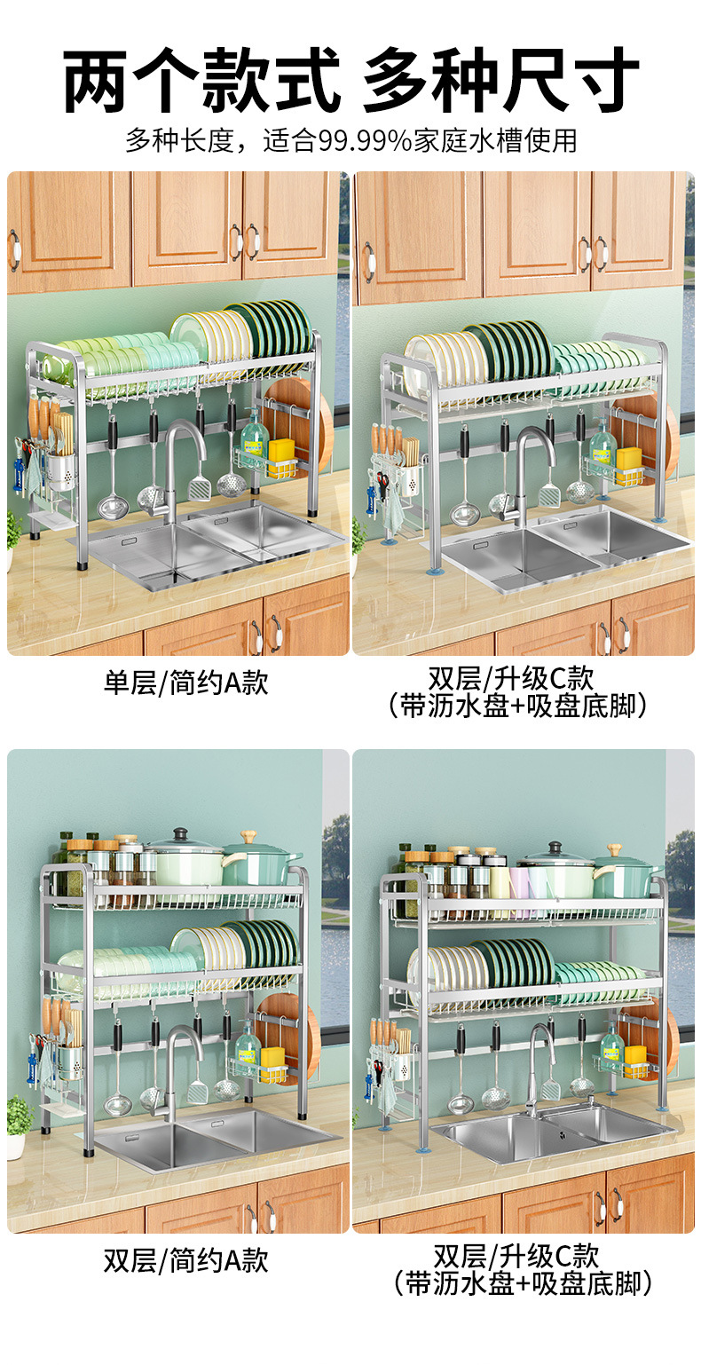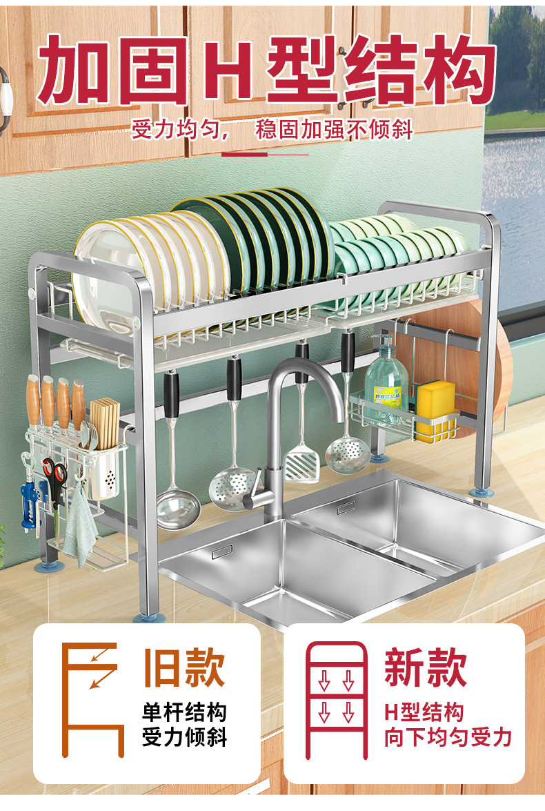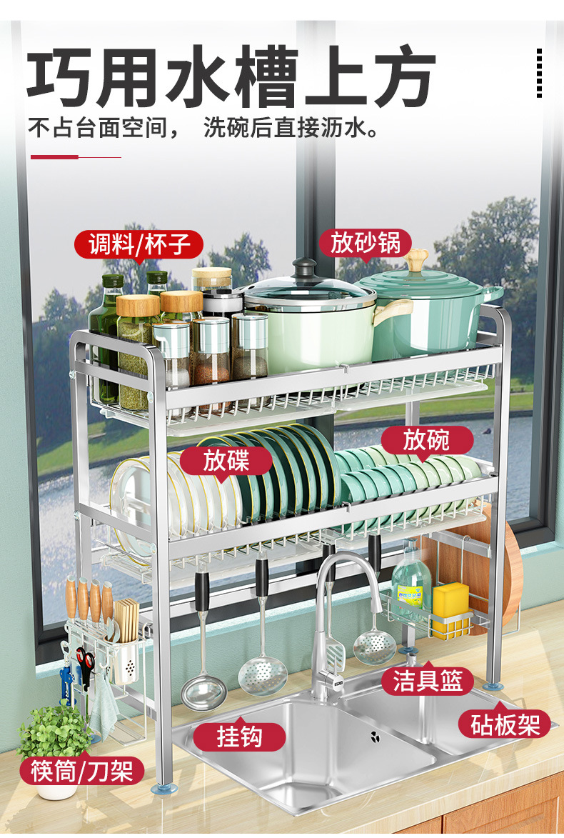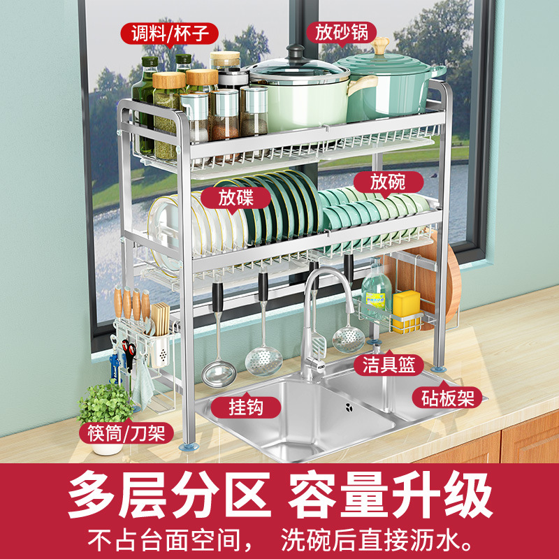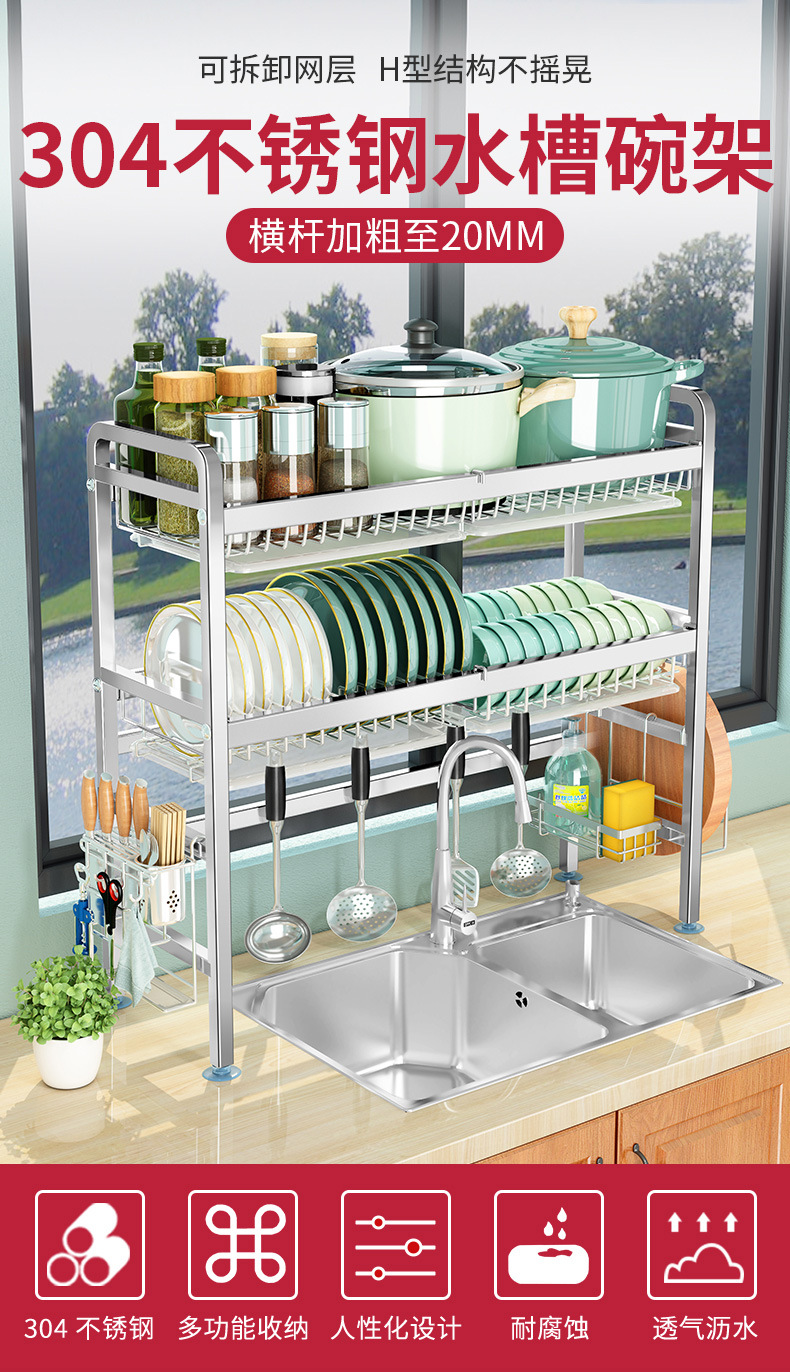 厨房用品304加厚不锈钢水槽碗架置物架厨房沥水架水池放碗碟收纳