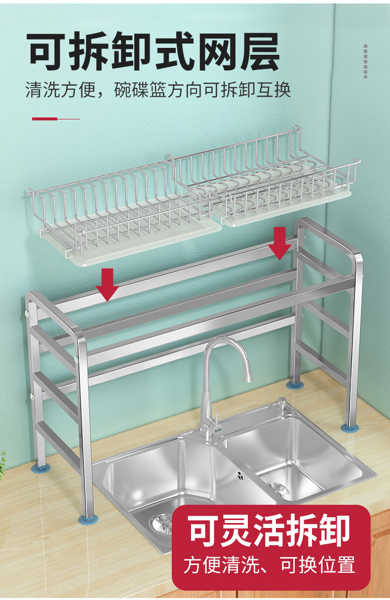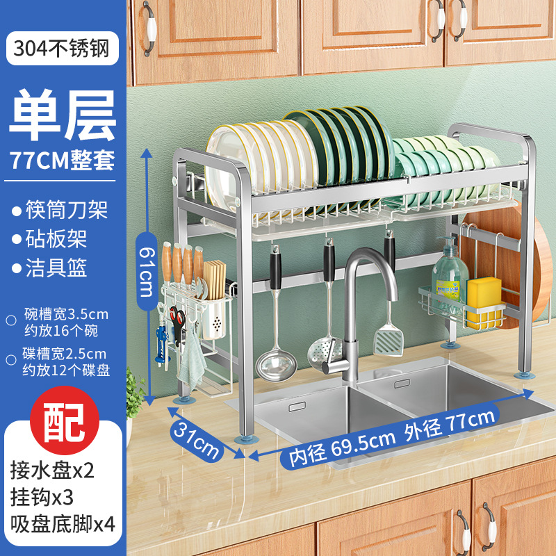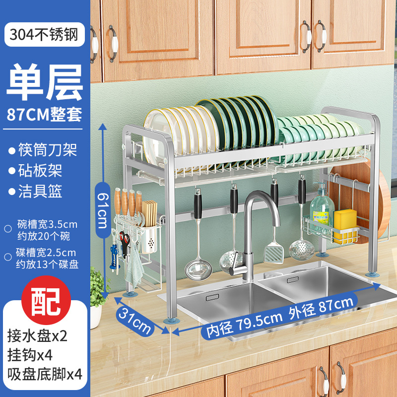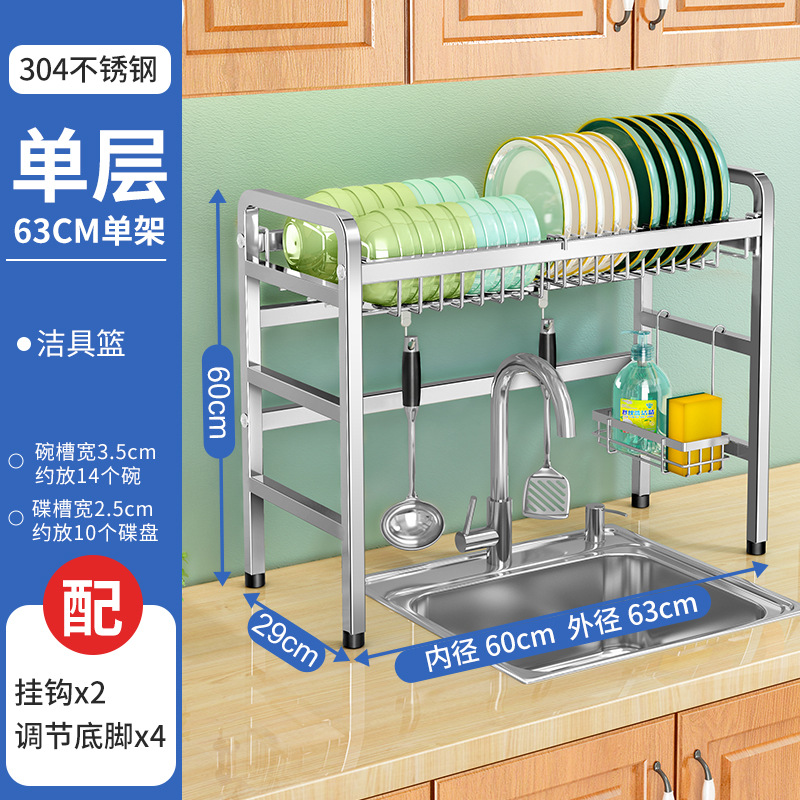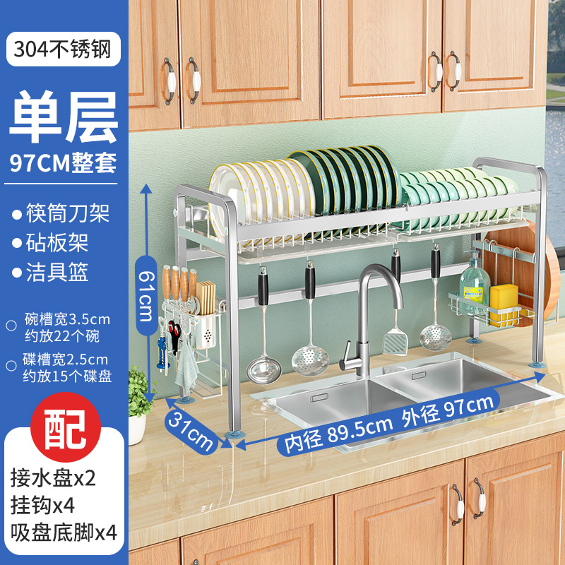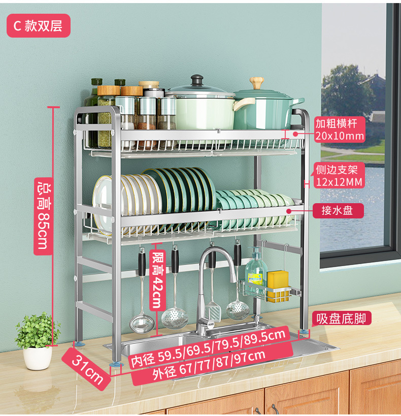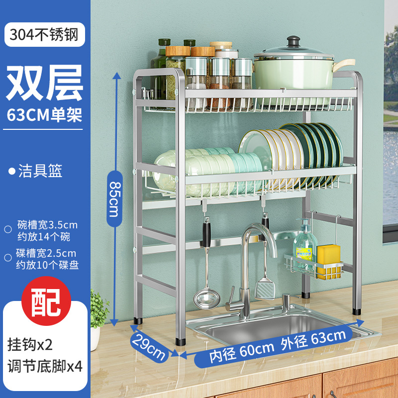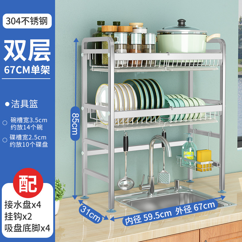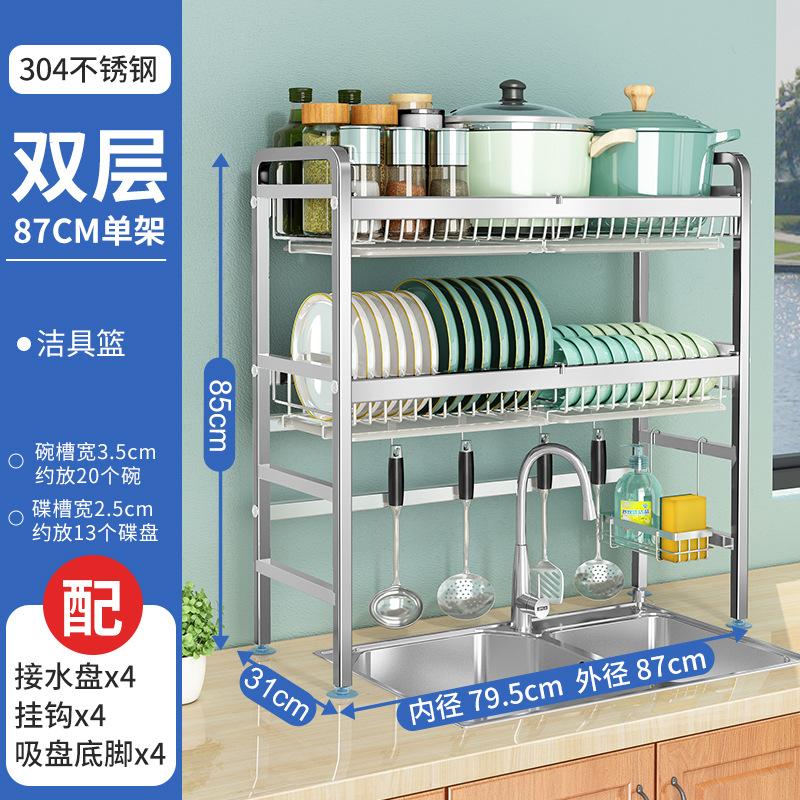 厨房用品304加厚不锈钢水槽碗架置物架厨房沥水架水池放碗碟收纳