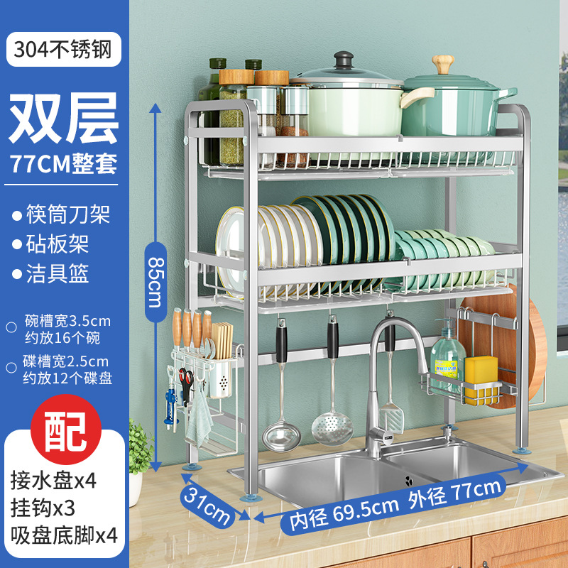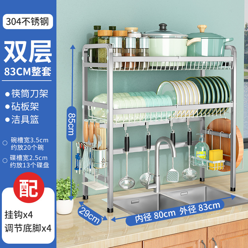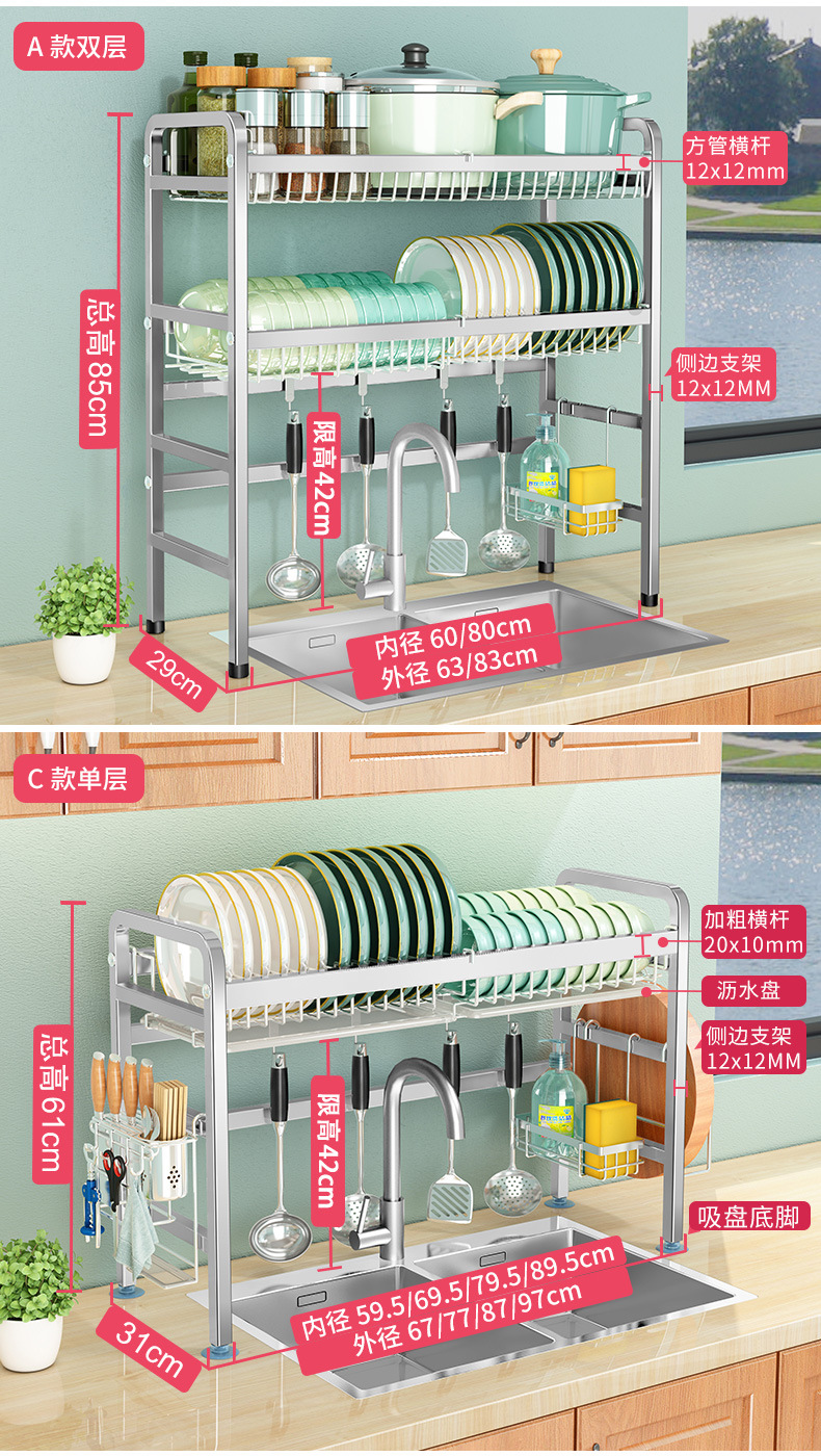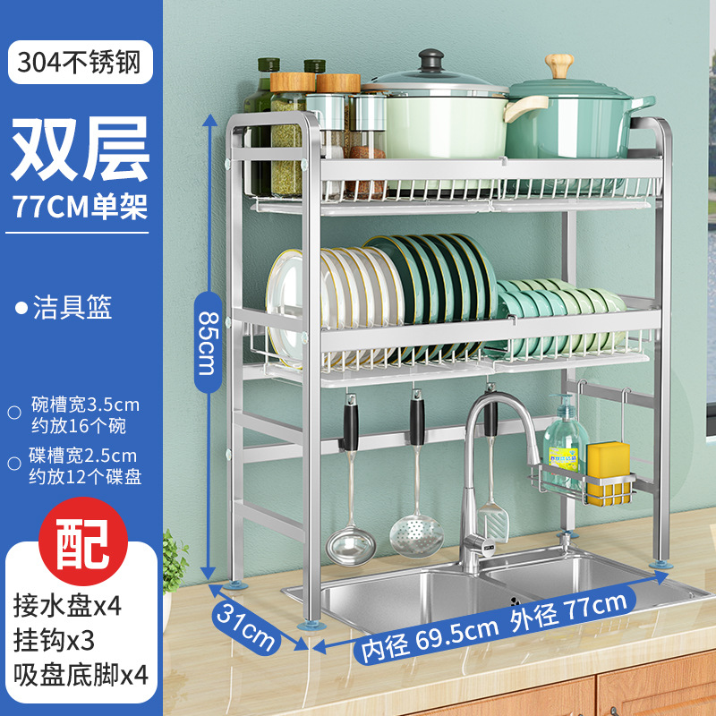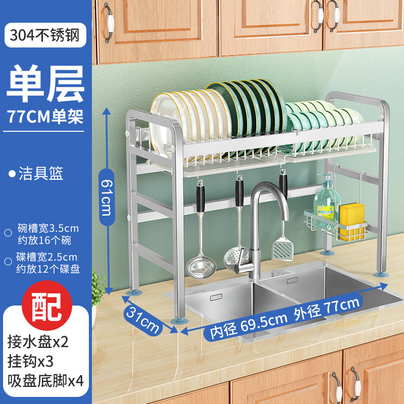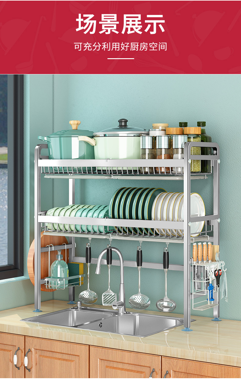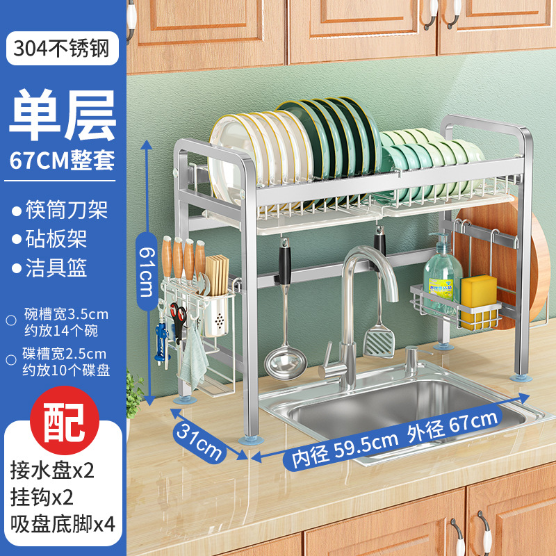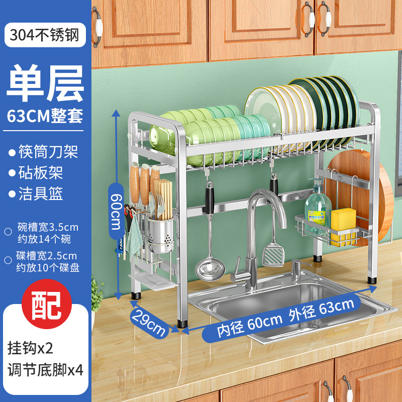 厨房用品304加厚不锈钢水槽碗架置物架厨房沥水架水池放碗碟收纳