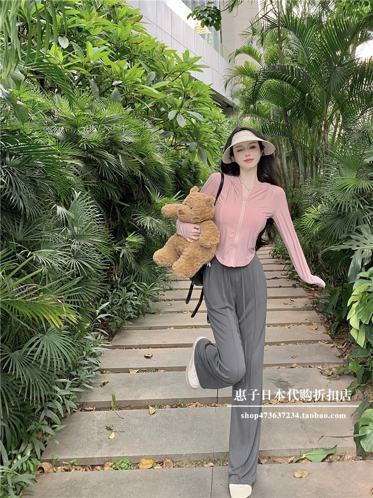 日本代購新款夏季防曬衣抗UV修身2023女款寬鬆闊腿褲套裝