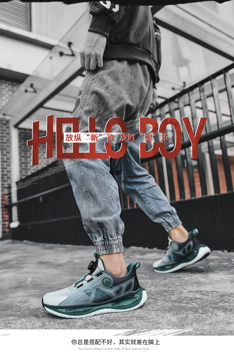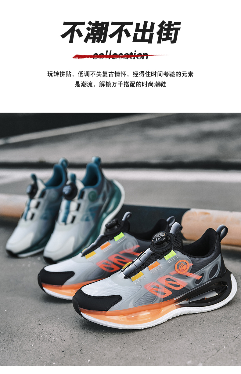 DEKN男鞋2023秋季新款青少年透氣網面爆米花旋轉鈕釦運動鞋跑步鞋