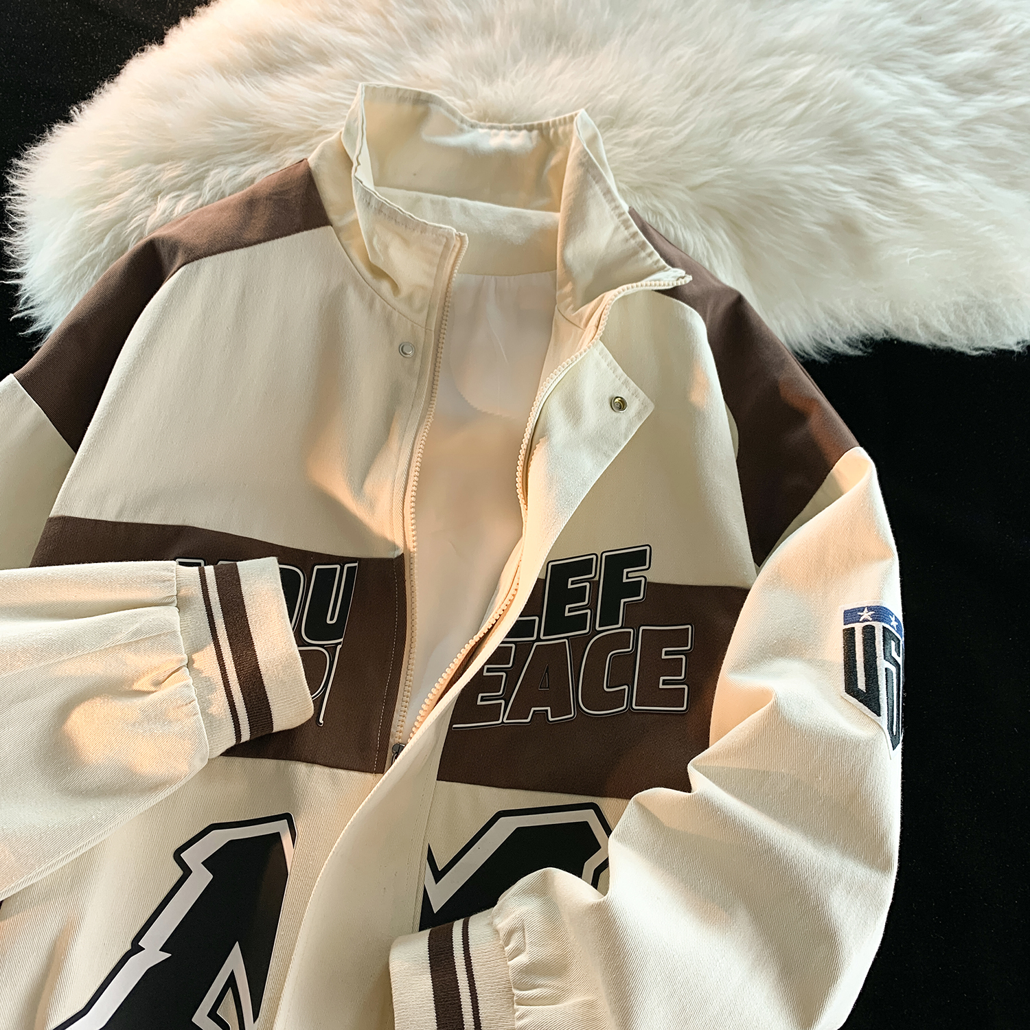 美式復古機車棒球服外套春秋江浙滬穿搭高街飛行員夾克情侶賽車服