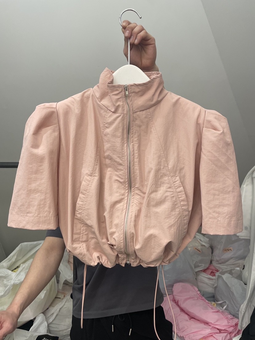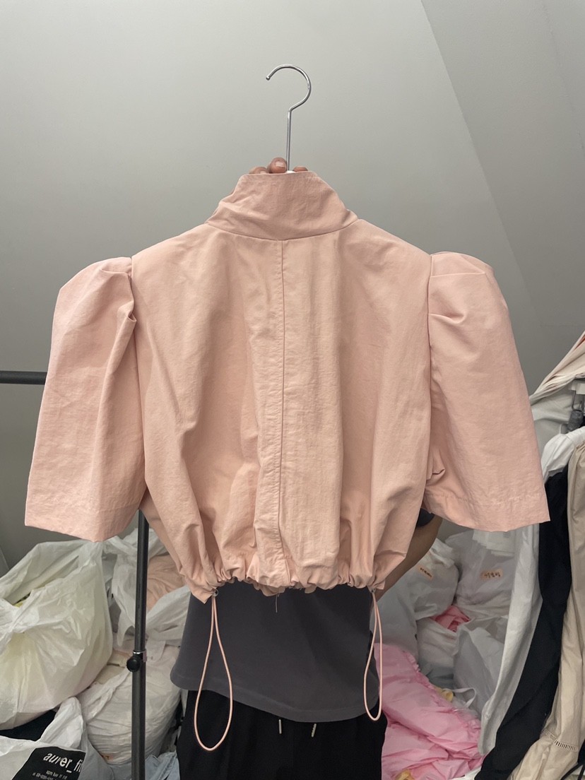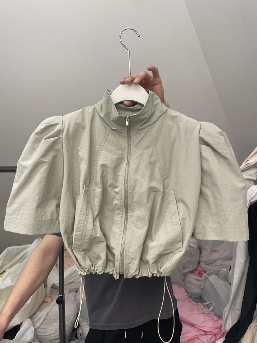韓國東大門春夏新款純色立領抽繩拉鍊泡泡長袖短款運動外套防曬衣