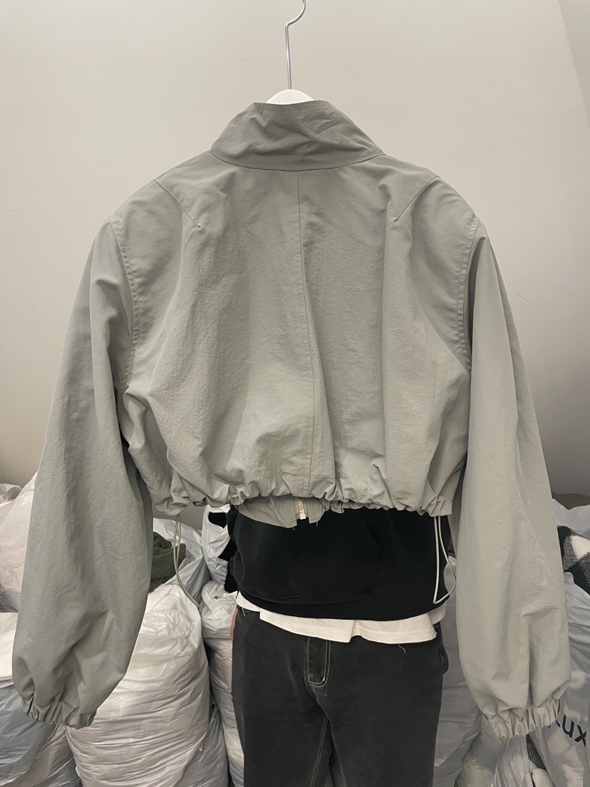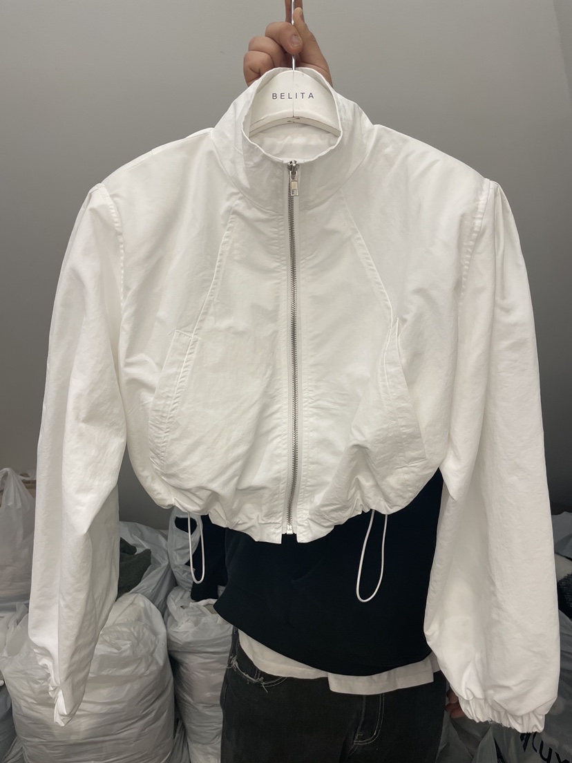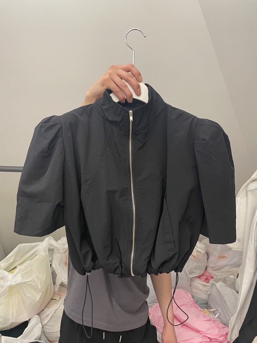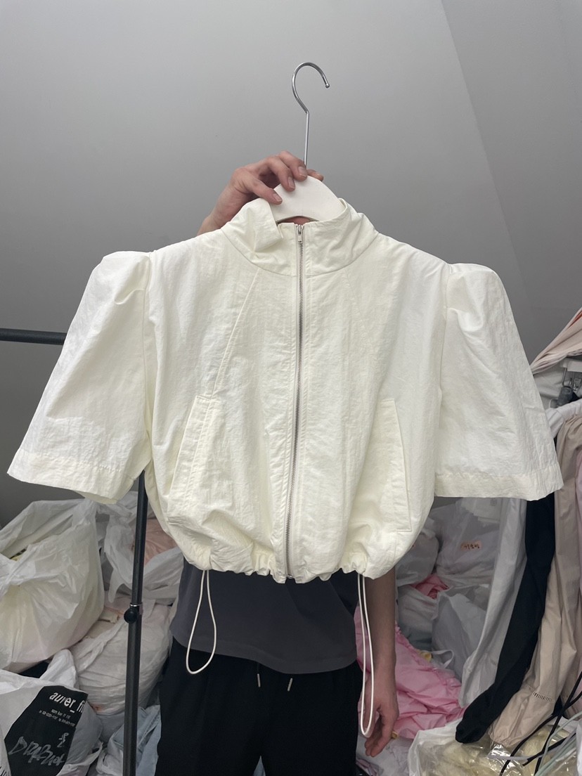 韓國東大門春夏新款純色立領抽繩拉鍊泡泡長袖短款運動外套防曬衣