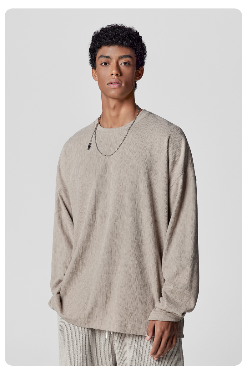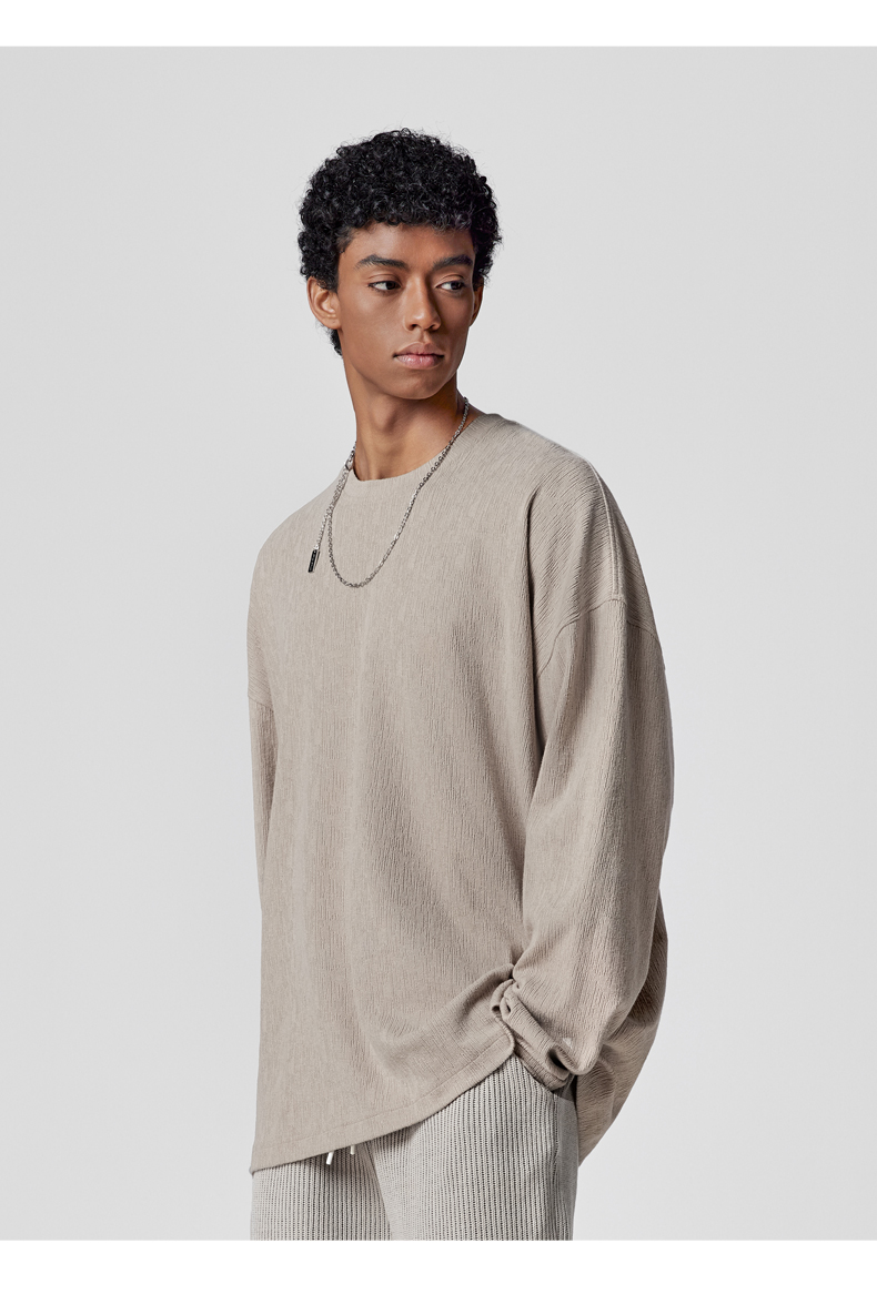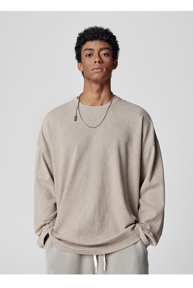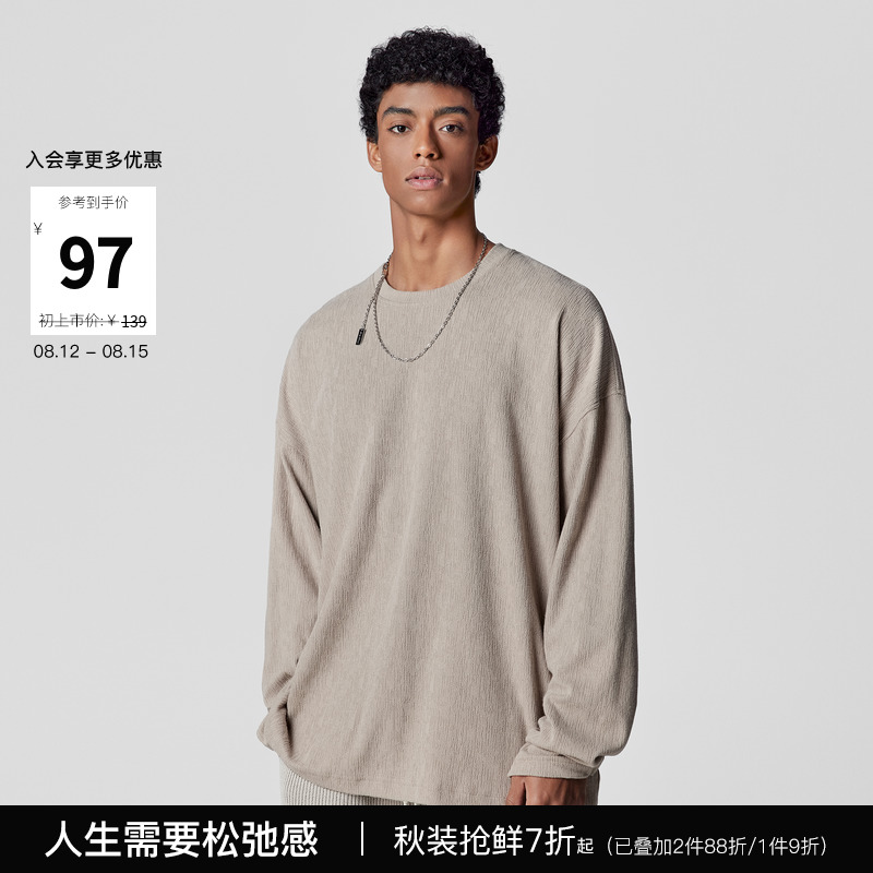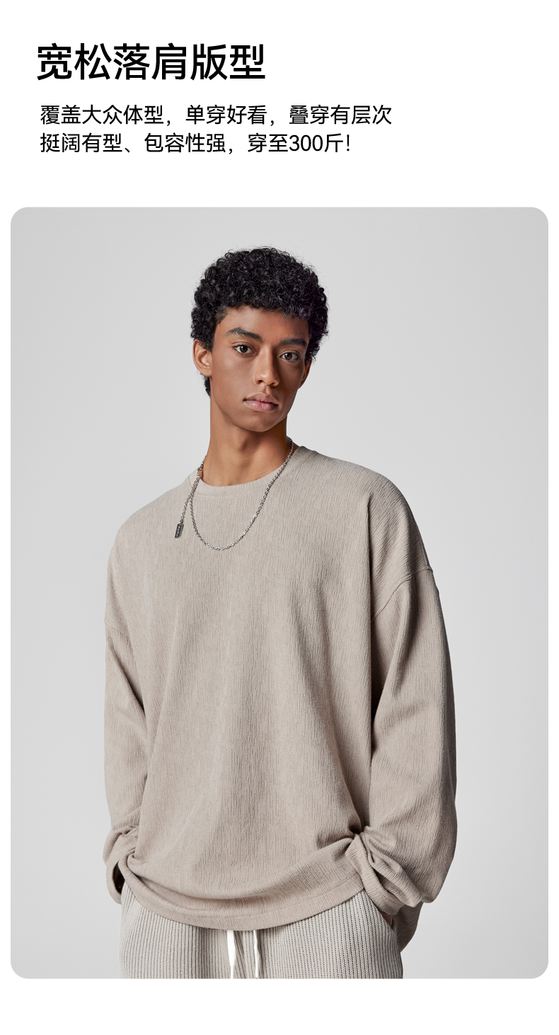 BODYDREAM長袖美式復古T恤新款秋裝上衣圓領垂感純色內搭衣男裝潮
