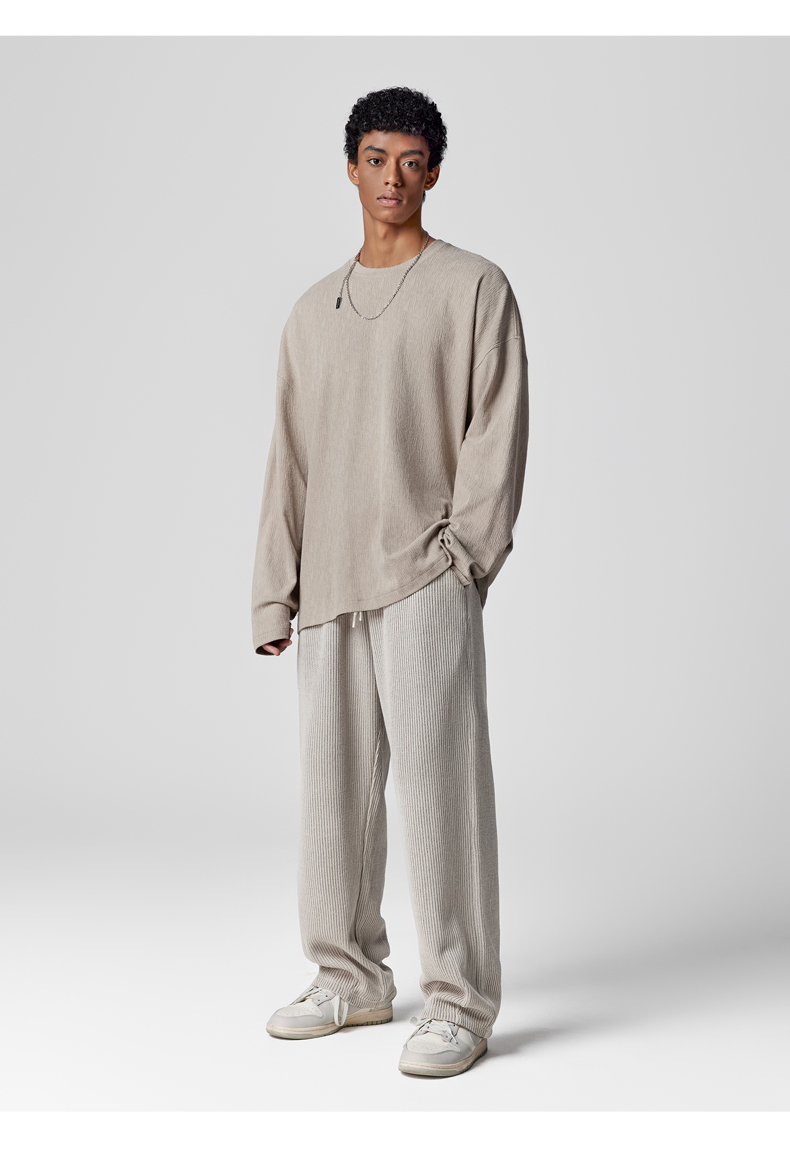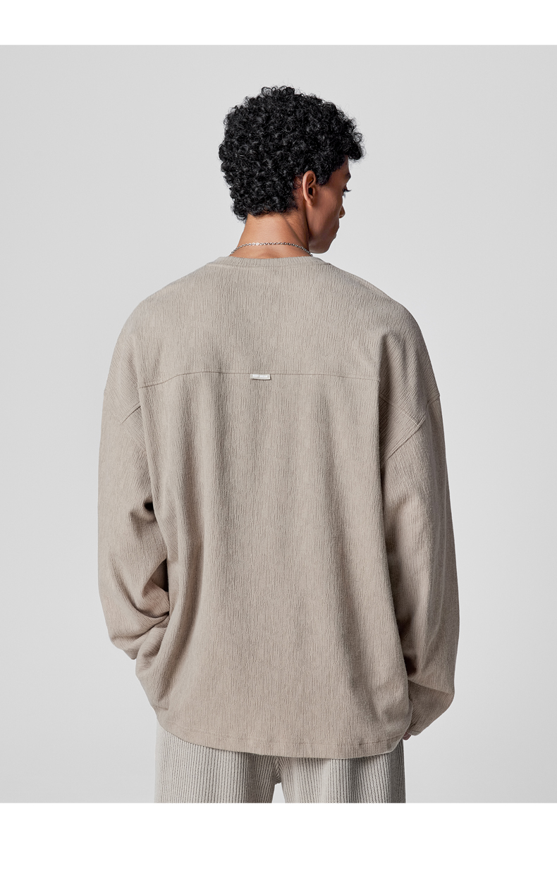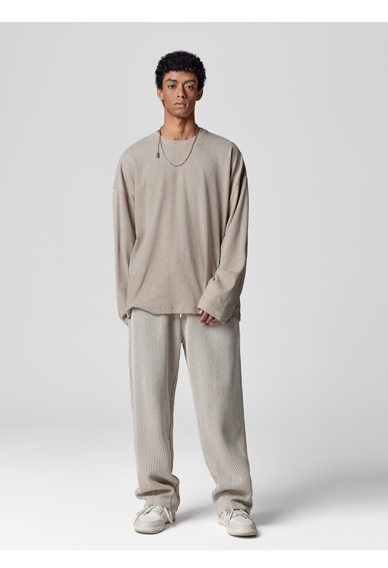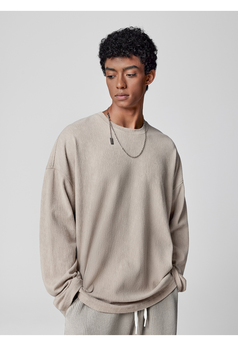 BODYDREAM長袖美式復古T恤新款秋裝上衣圓領垂感純色內搭衣男裝潮
