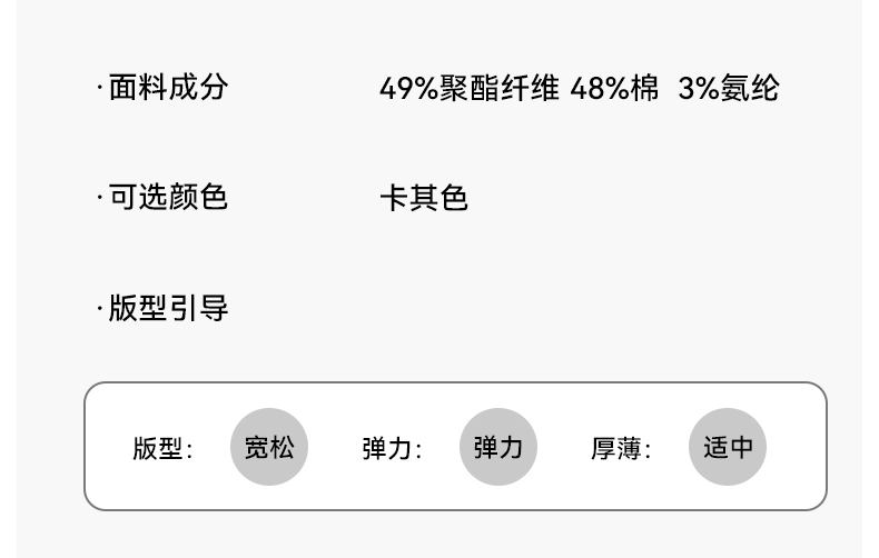 材質成分 聚酯纖維49% 棉48% 聚氨酯彈性纖維(氨綸)3%
