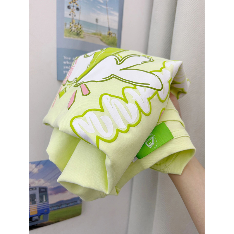 2023新款綠色純棉短袖T恤女夏季寬鬆vintage情侶裝甜酷半袖上衣潮