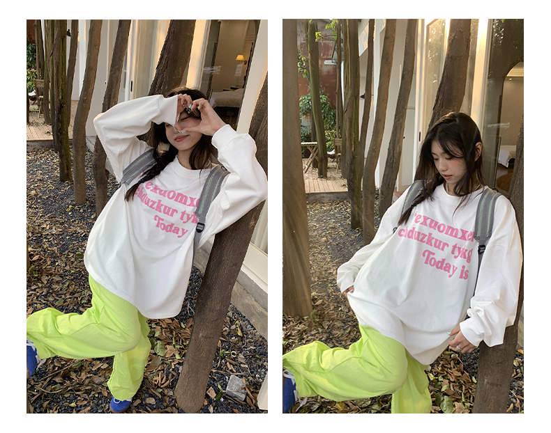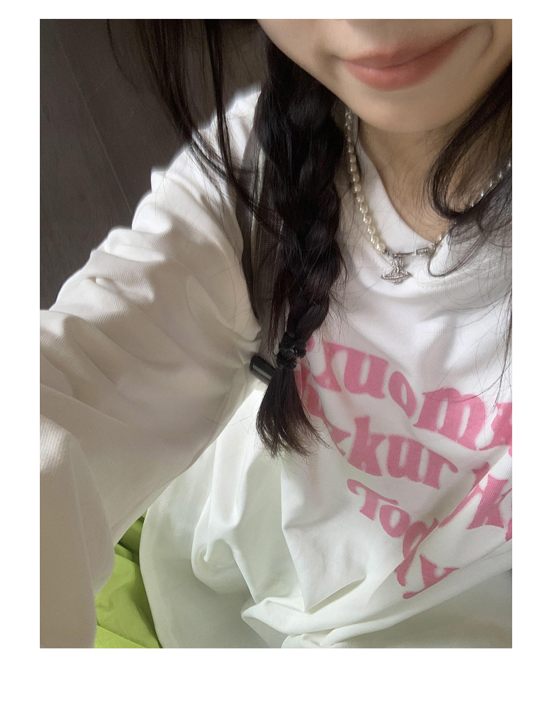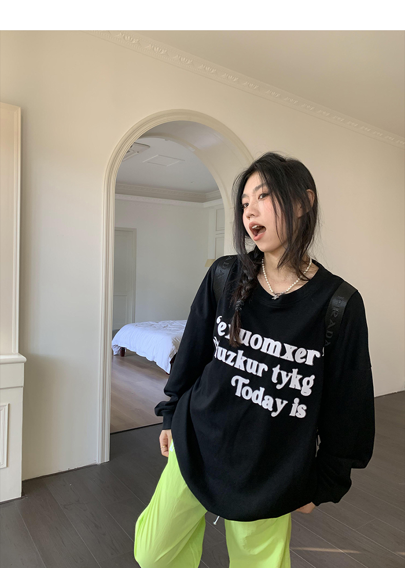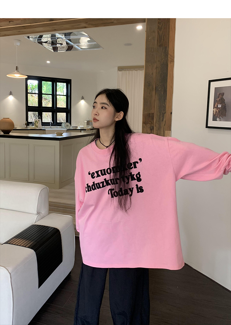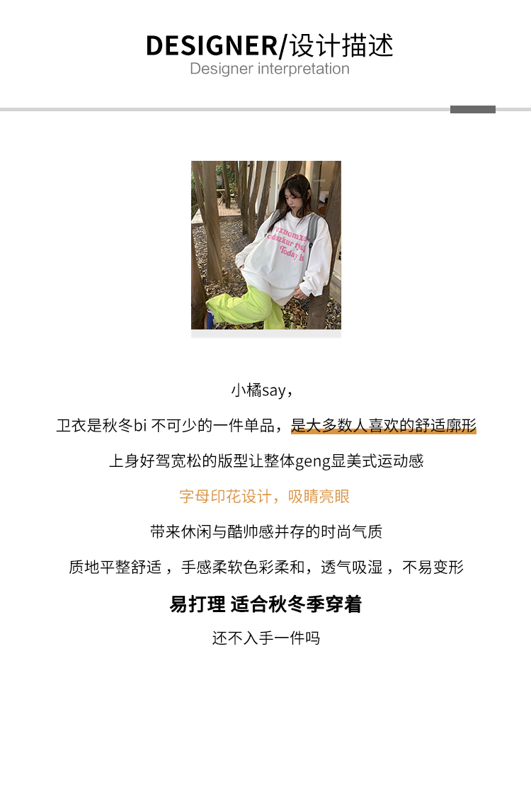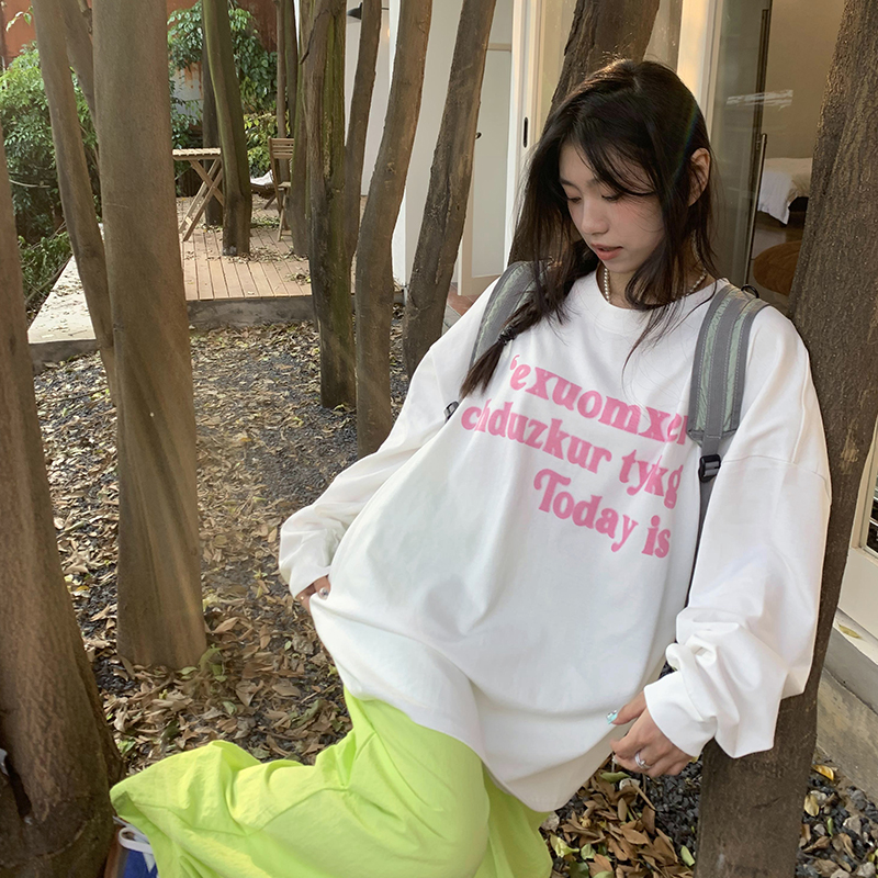 橘子樹在哪兒簡約字母印花圓領厚棉T女春秋款韓版寬鬆休閒長袖上衣