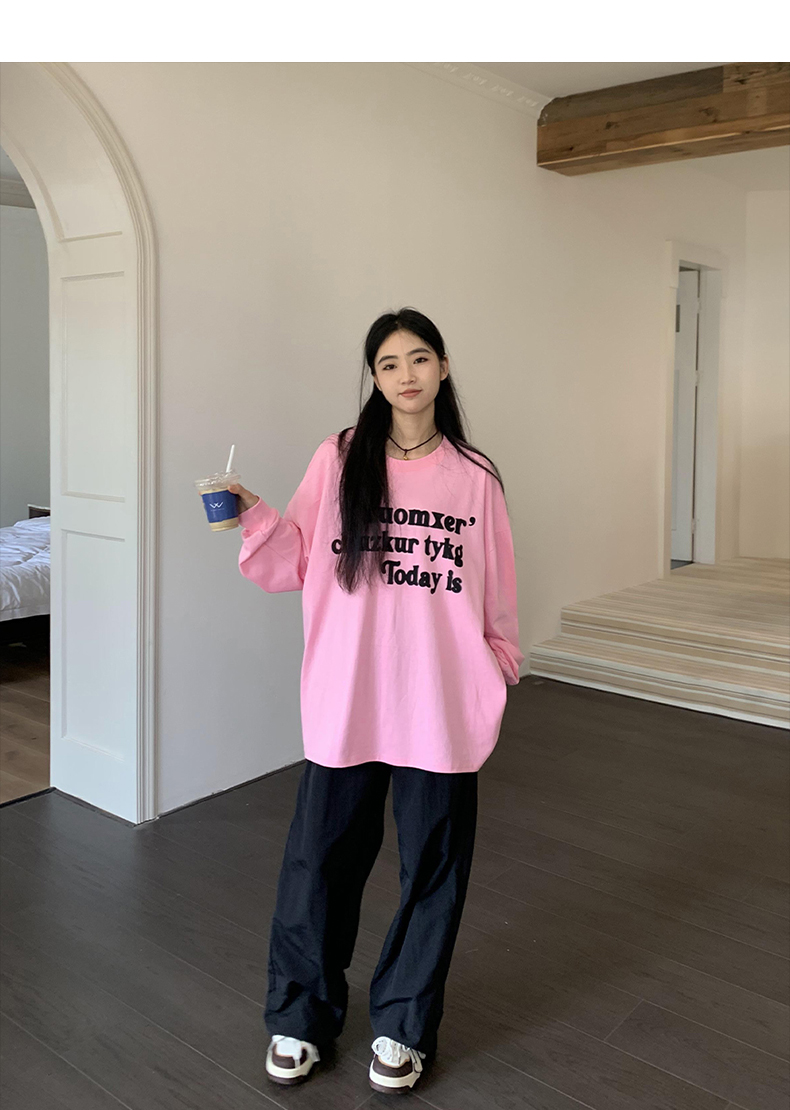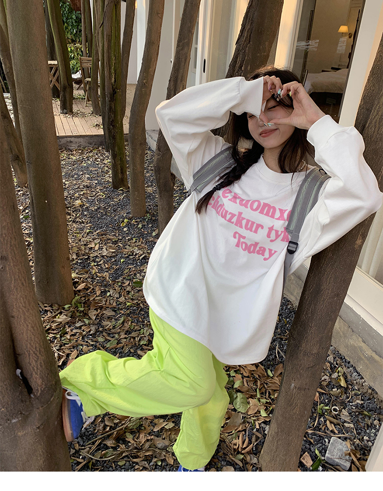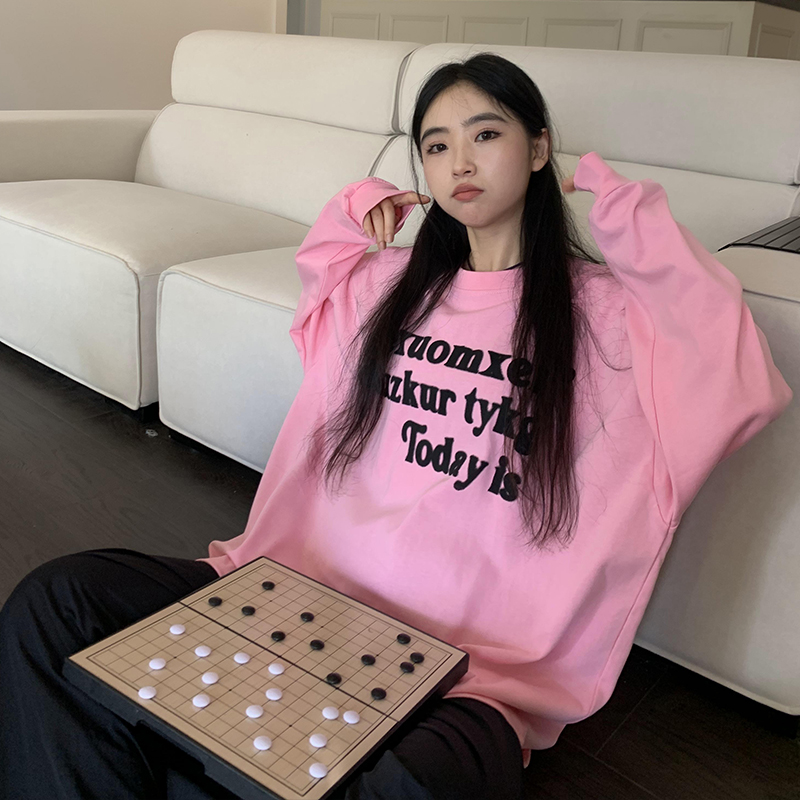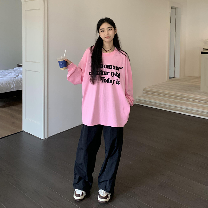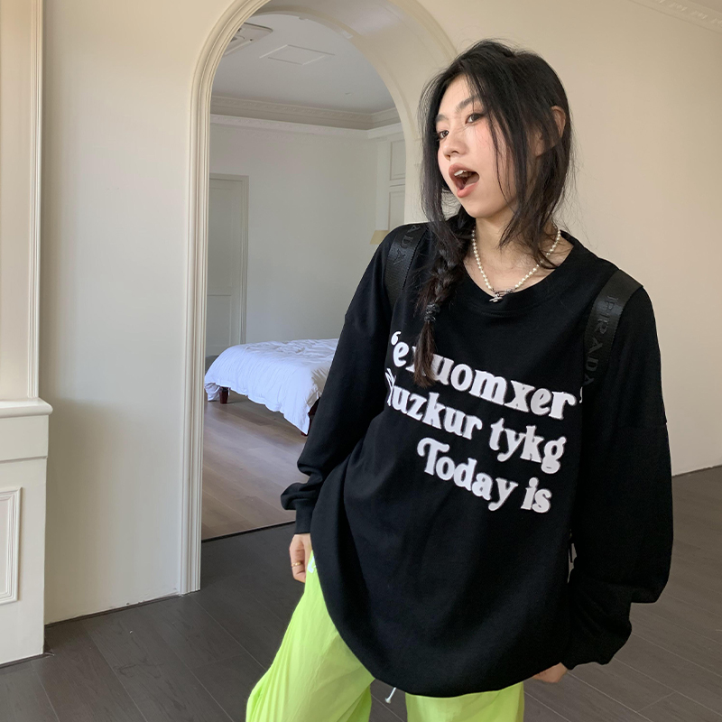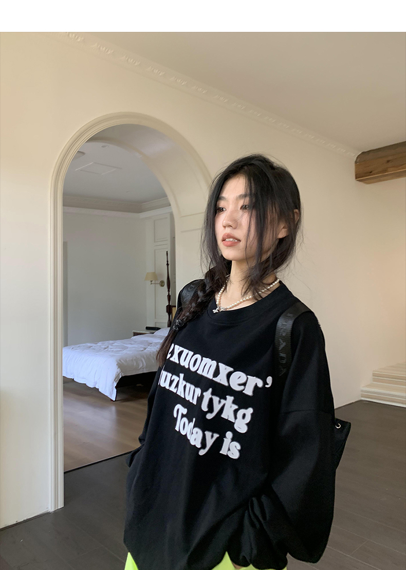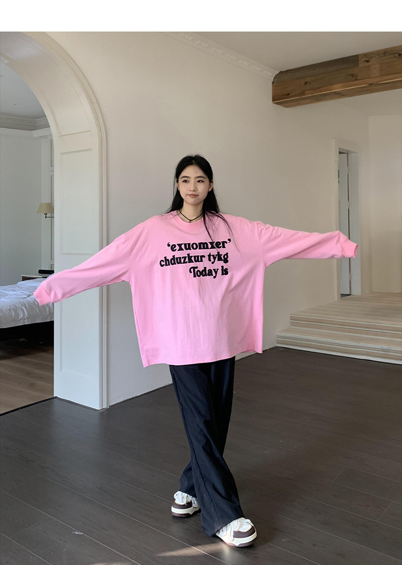 橘子樹在哪兒簡約字母印花圓領厚棉T女春秋款韓版寬鬆休閒長袖上衣
