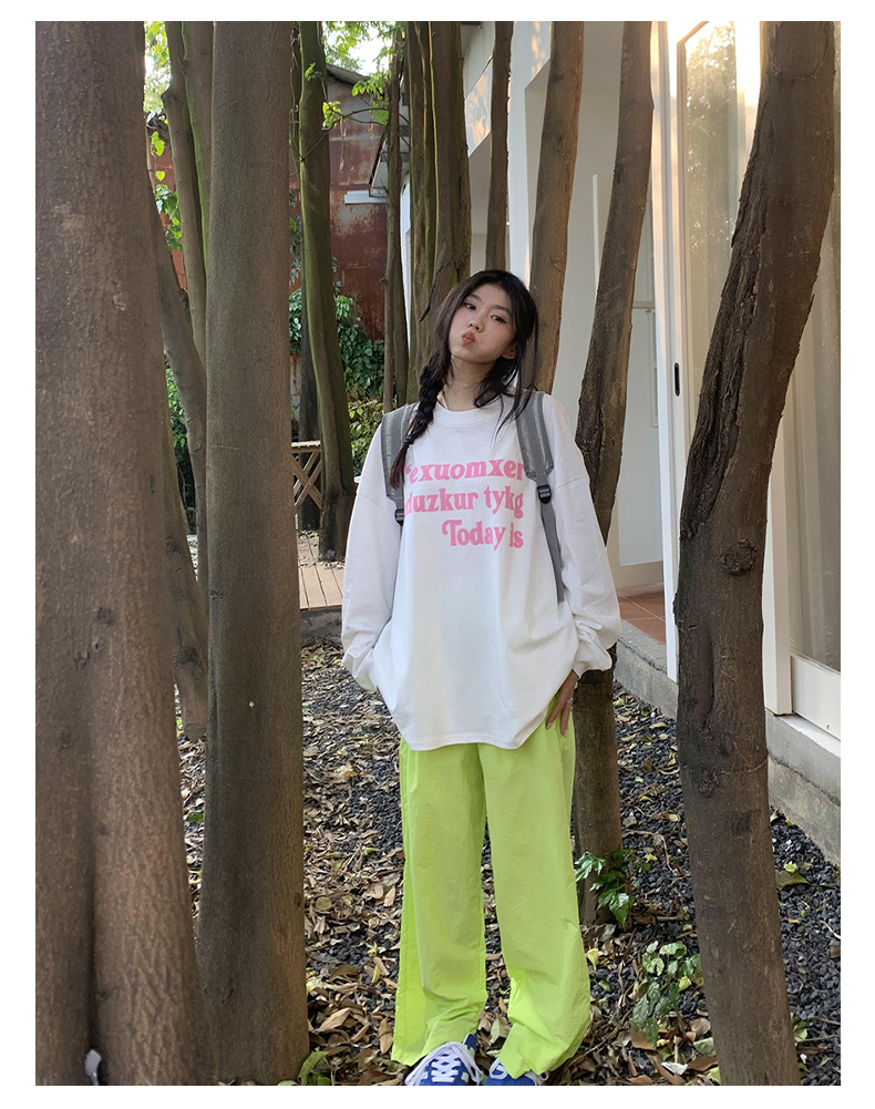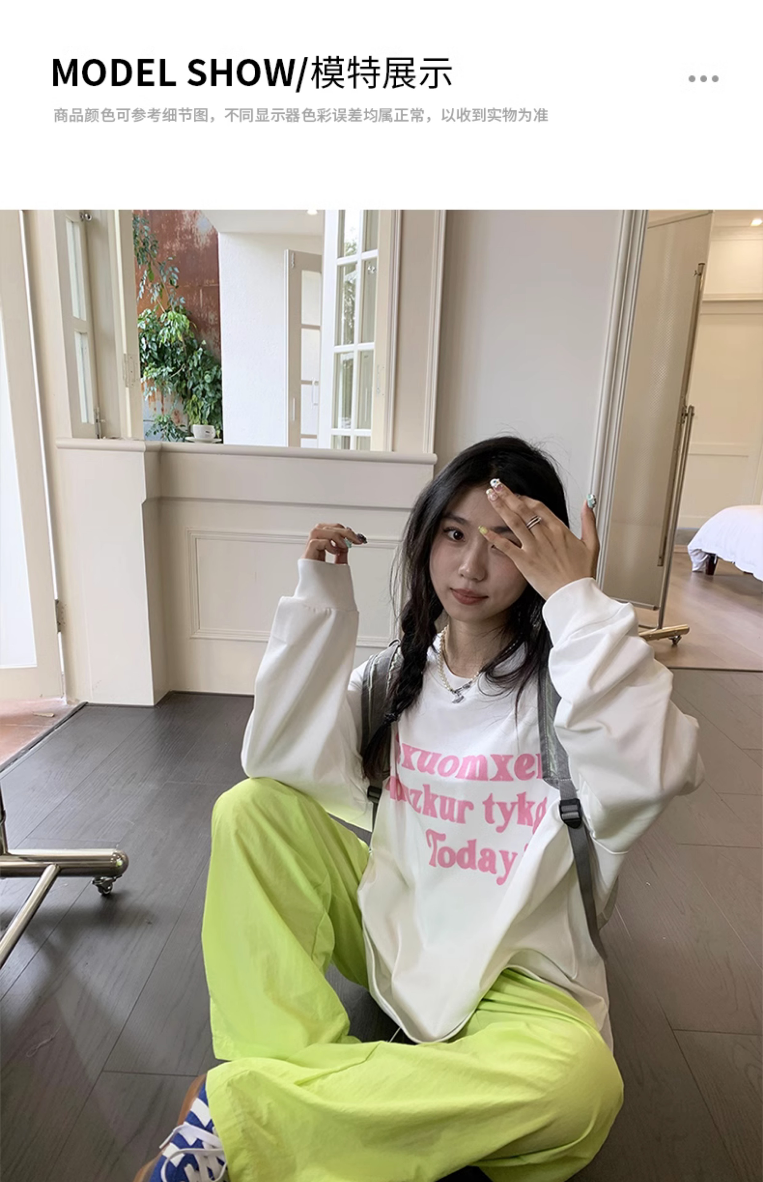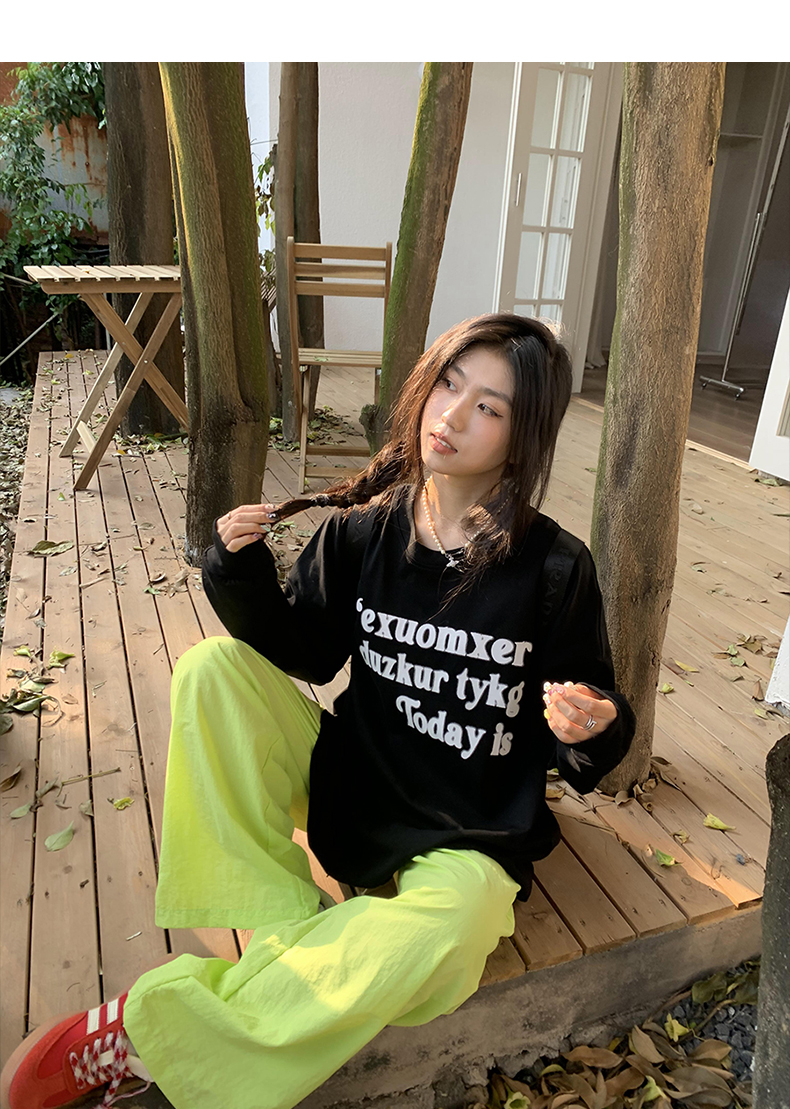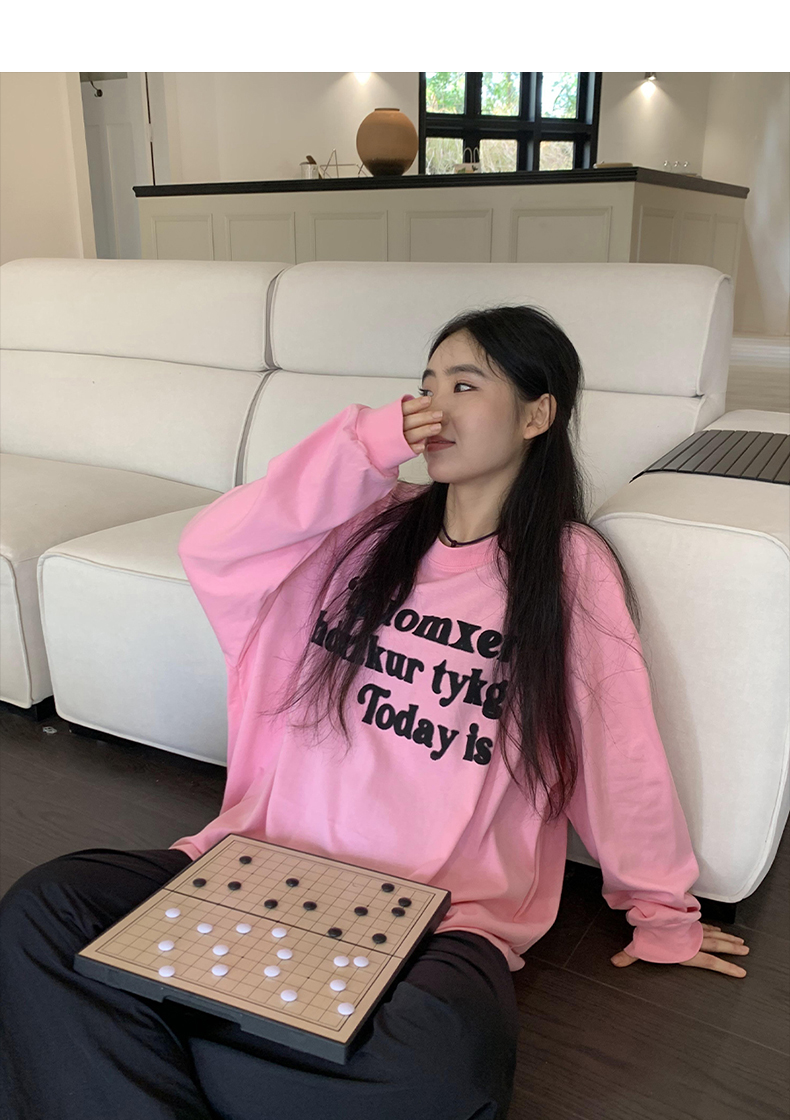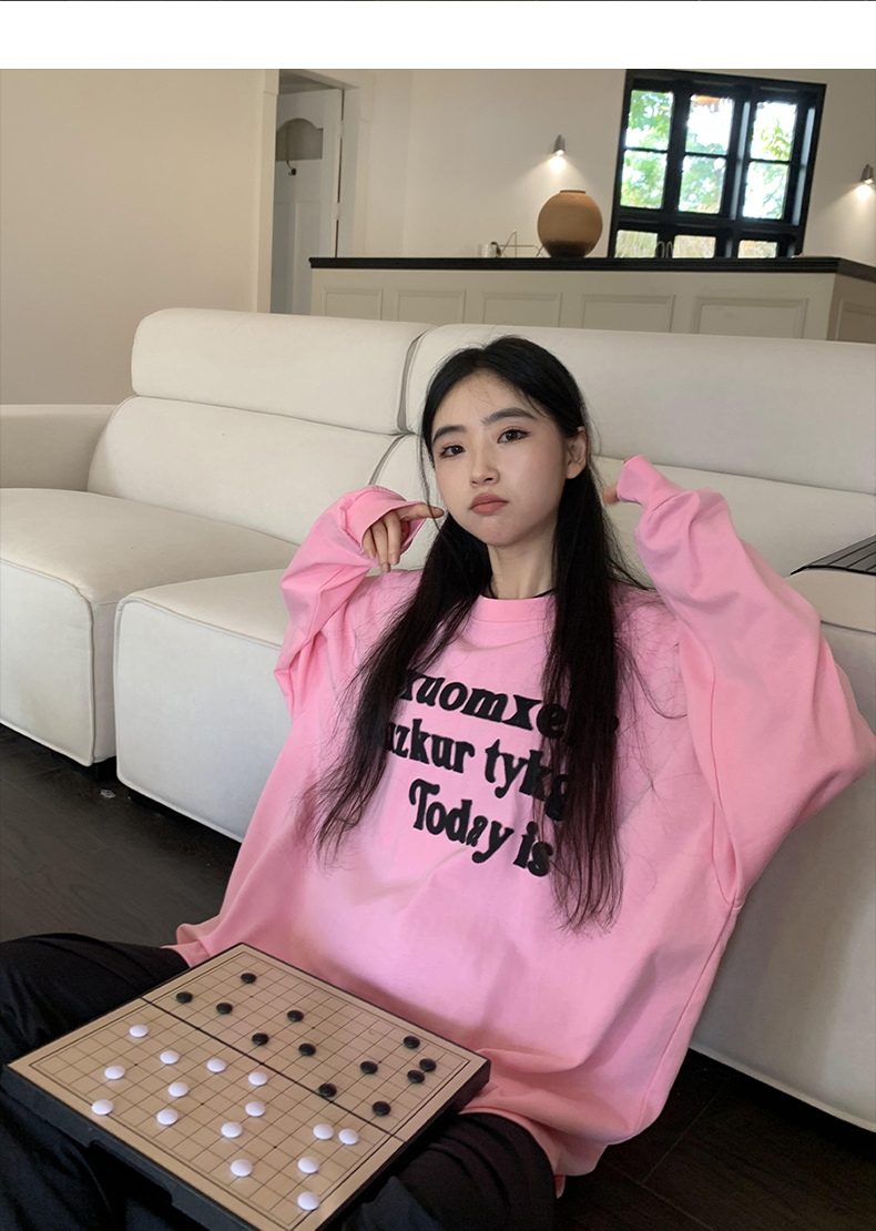 橘子樹在哪兒簡約字母印花圓領厚棉T女春秋款韓版寬鬆休閒長袖上衣