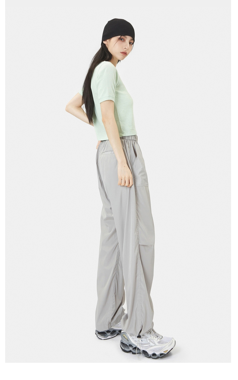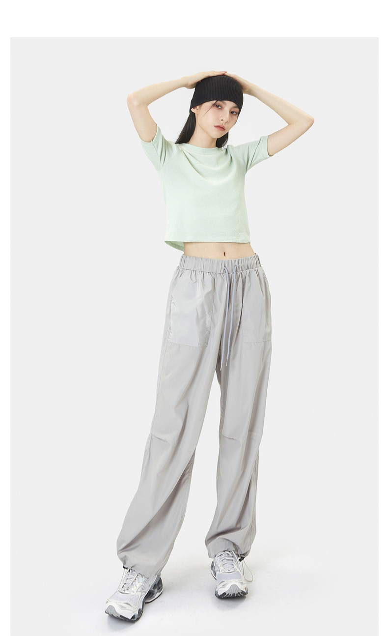 工裝褲女2023年新款夏季薄款小個子美式寬鬆直筒束腳跳舞闊腿褲子