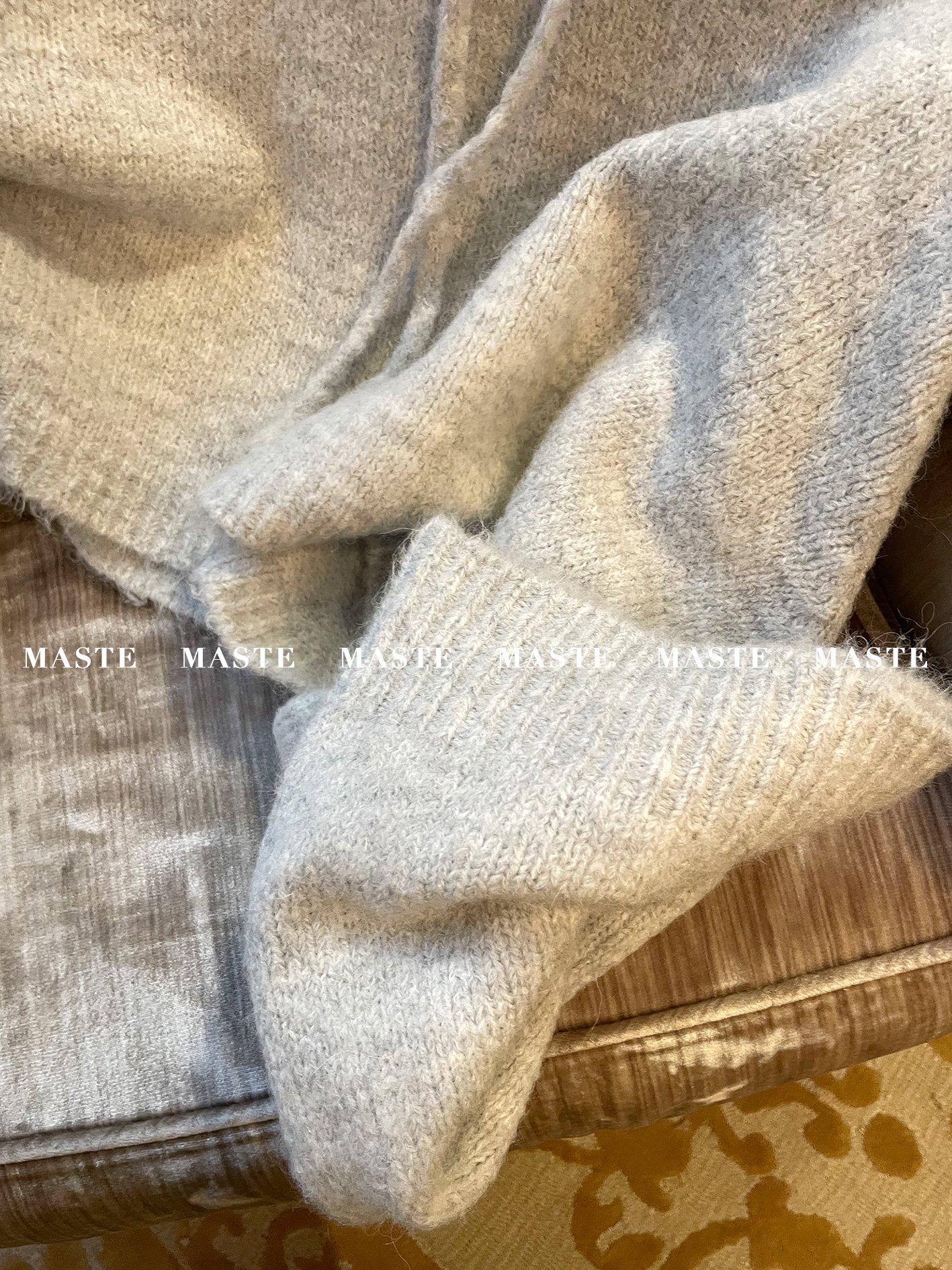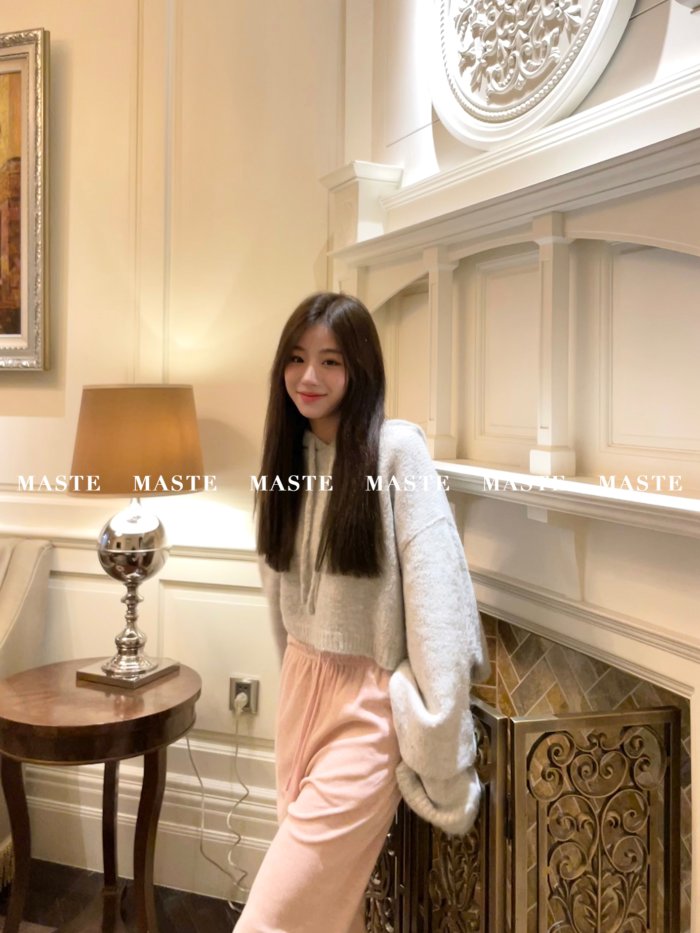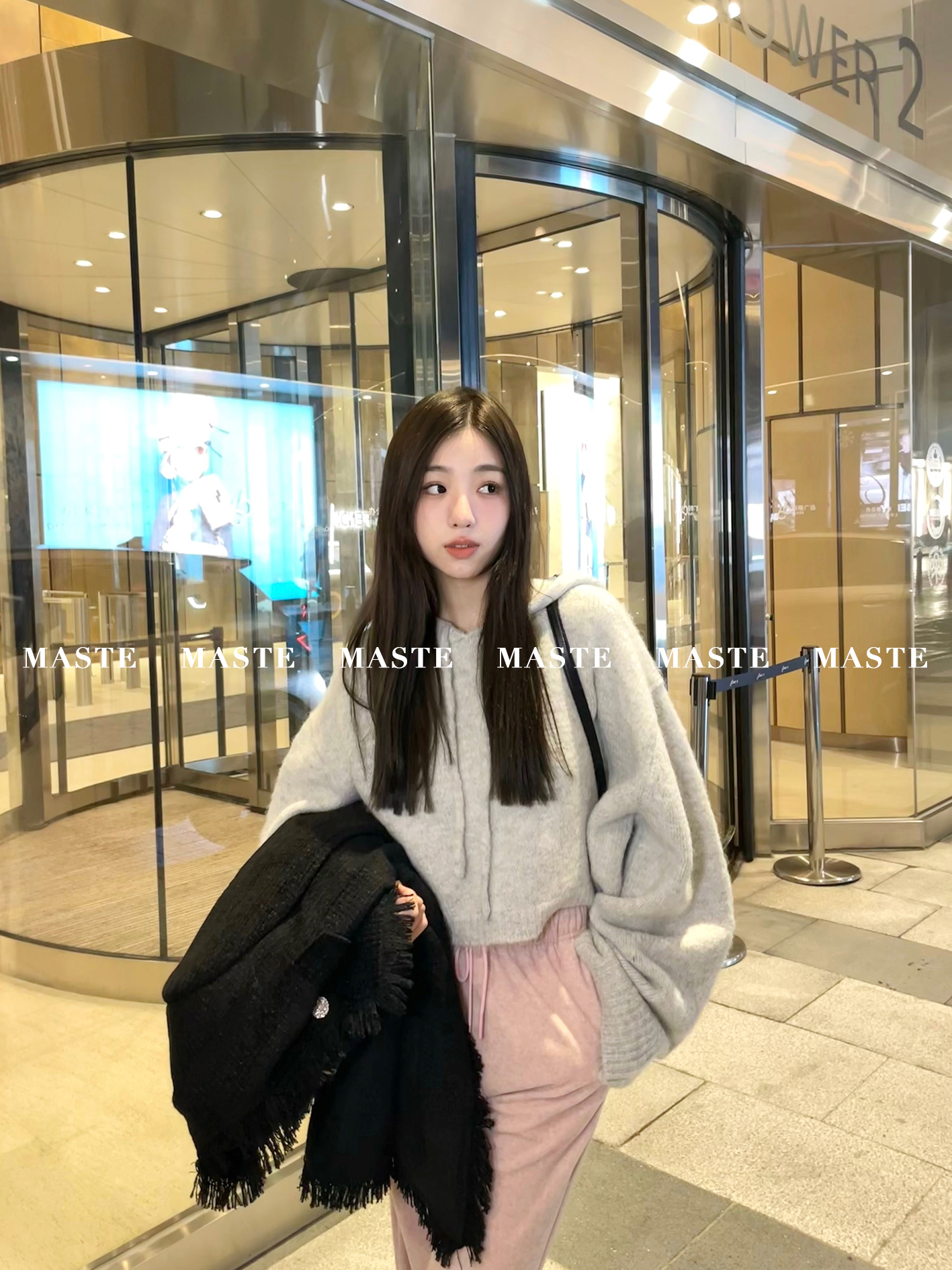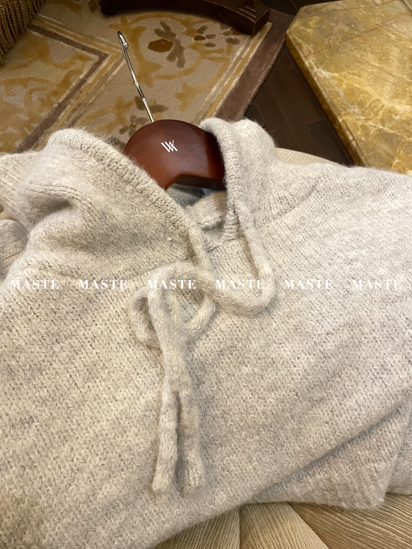 MASTE 伊甸之冬 雪鬆灰超厚針織比例感帽衫秋冬毛衣女小個子上衣