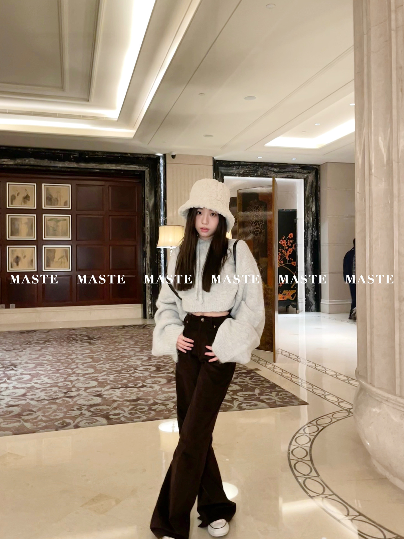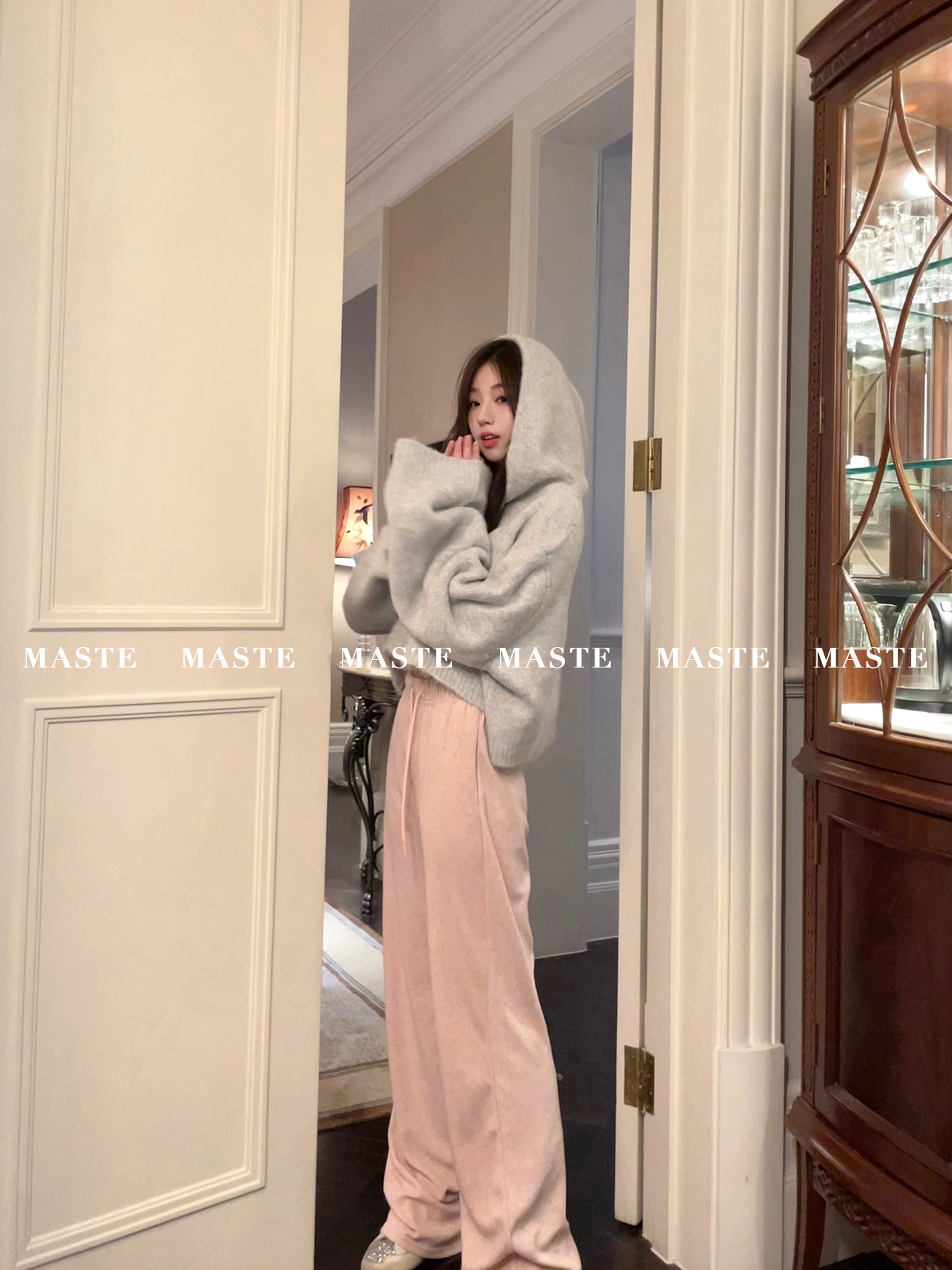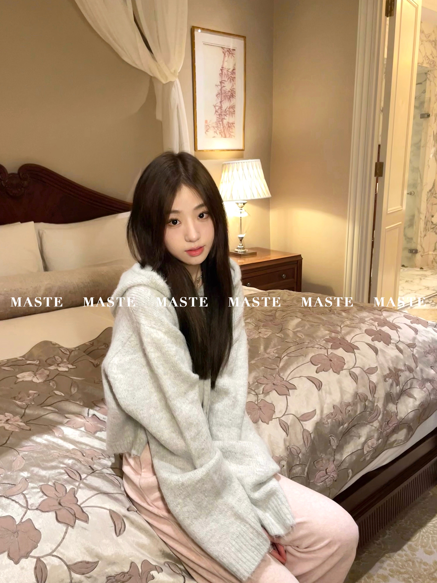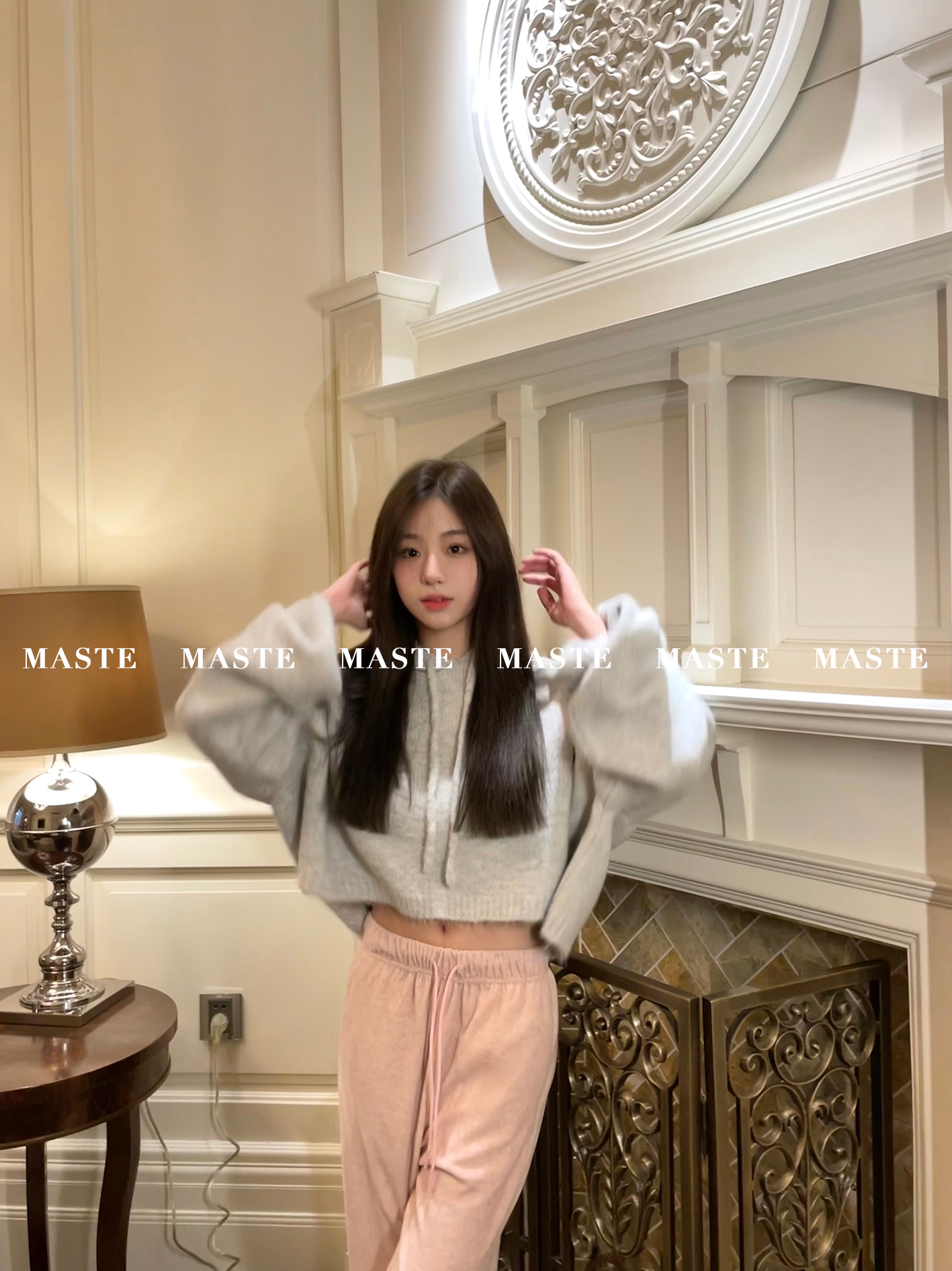 MASTE 伊甸之冬 雪鬆灰超厚針織比例感帽衫秋冬毛衣女小個子上衣