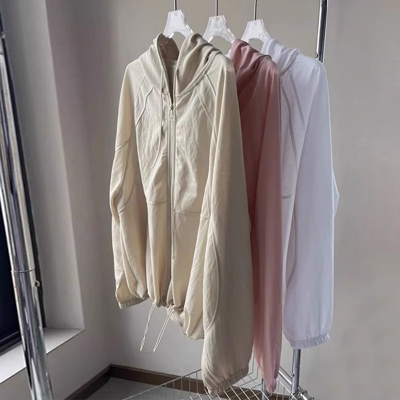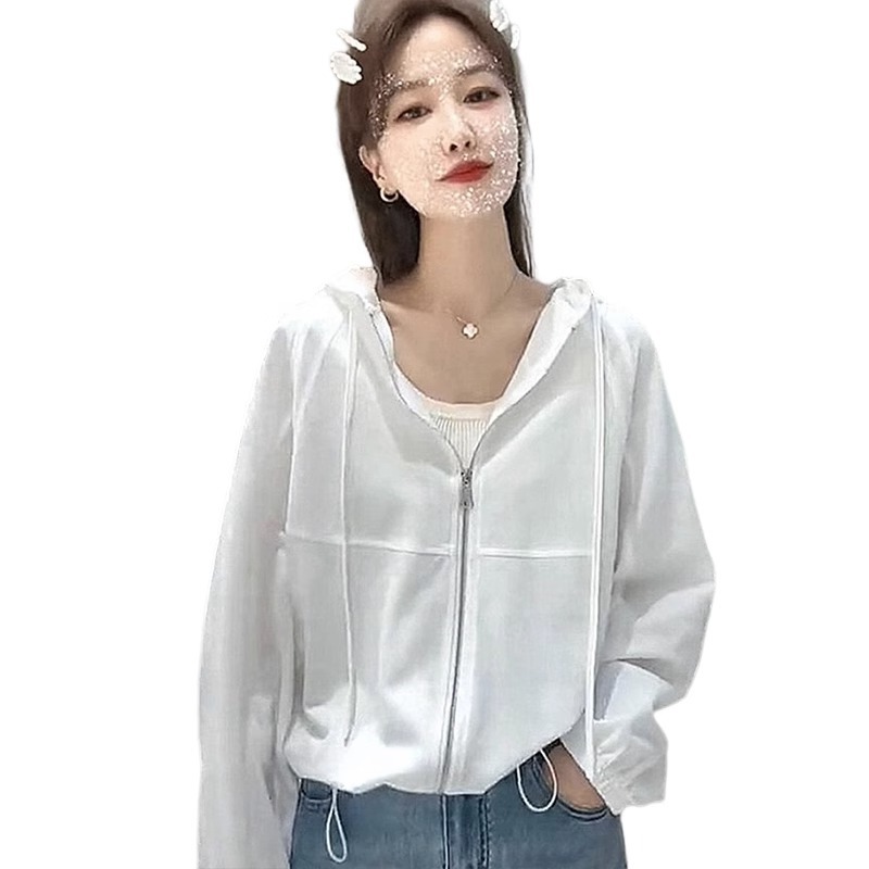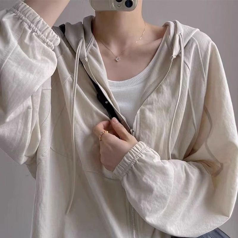 夏季小眾高級感簡約純色時尚寬鬆休閒小個子連帽防曬開衫外套潮女