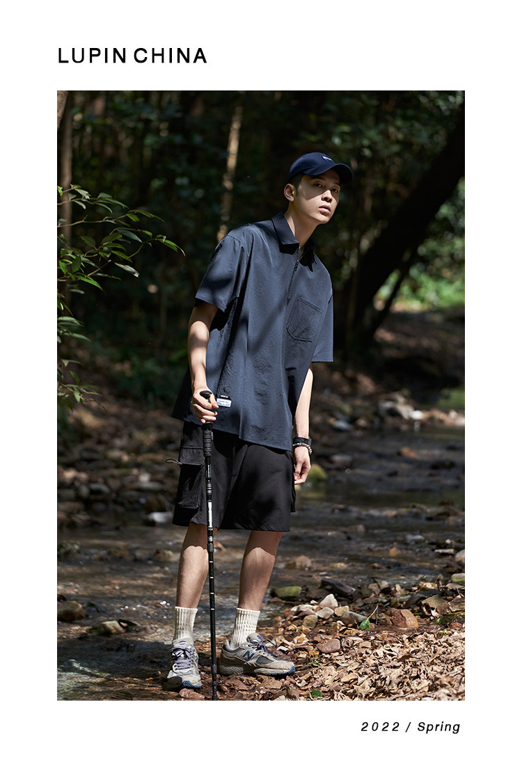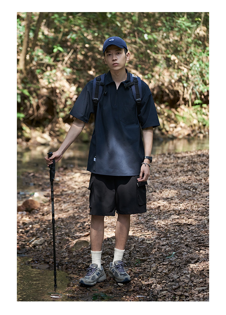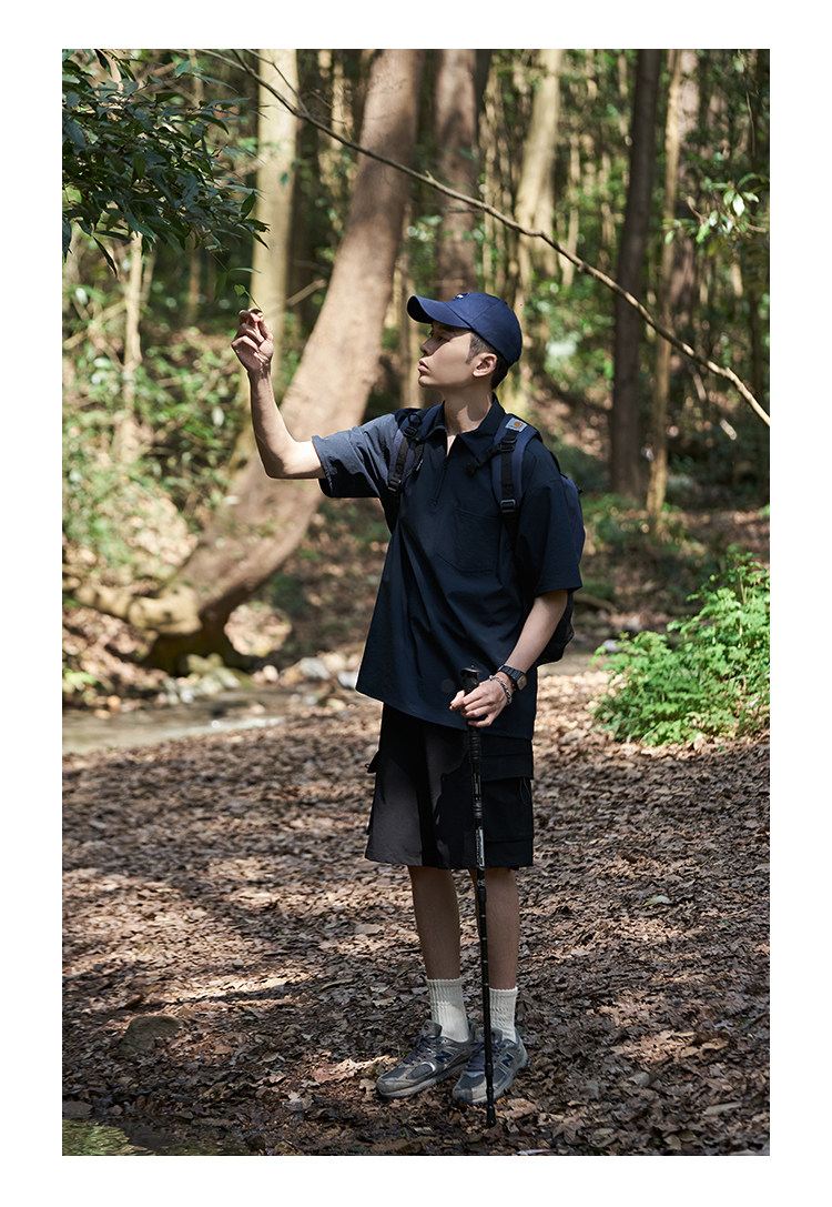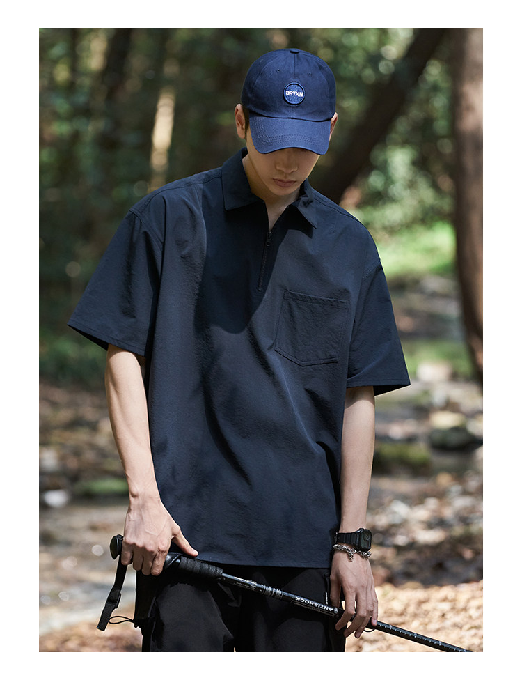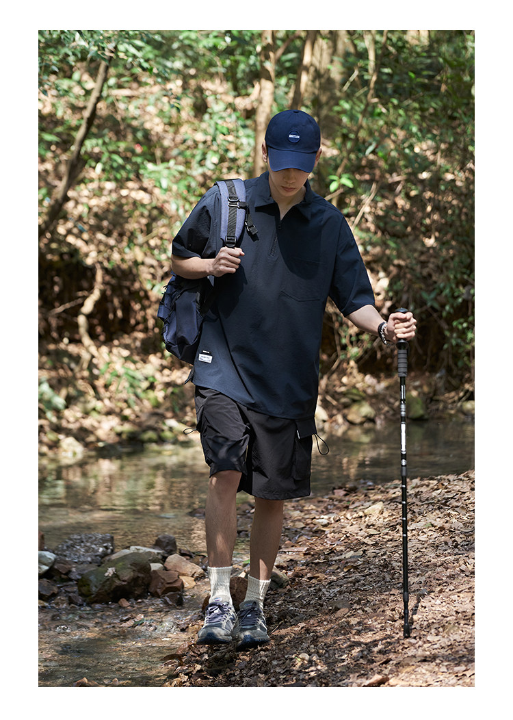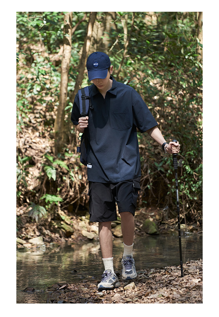 爐品復古POLO衫男短袖翻領速乾工裝機能T恤戶外吸汗透氣快乾上衣