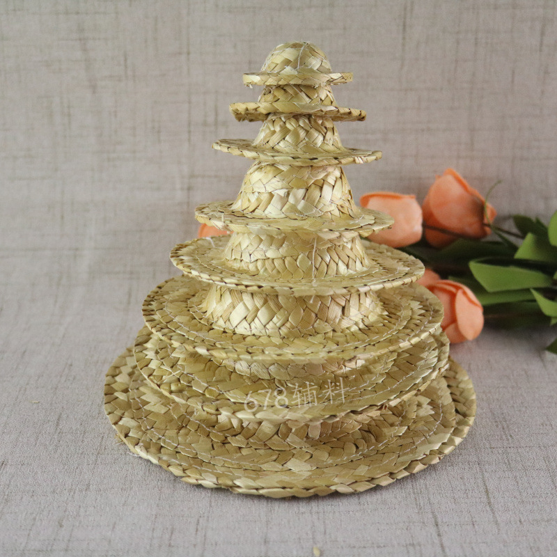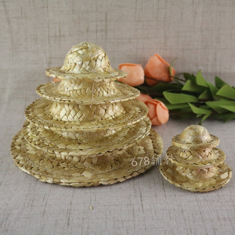手工编织小草帽 迷你草帽 工艺装饰公仔帽子 DIY饰品配件 4-20CM