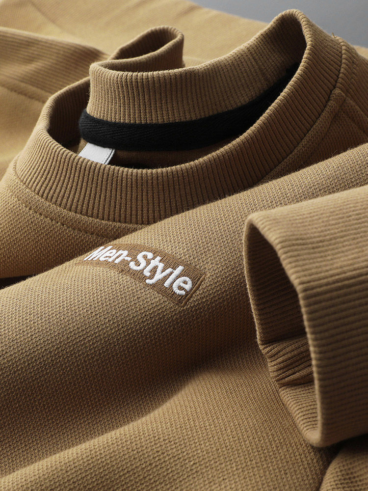 高端重磅圓領刺繡衛衣男士2022秋季高級感長袖T恤套頭潮牌上衣