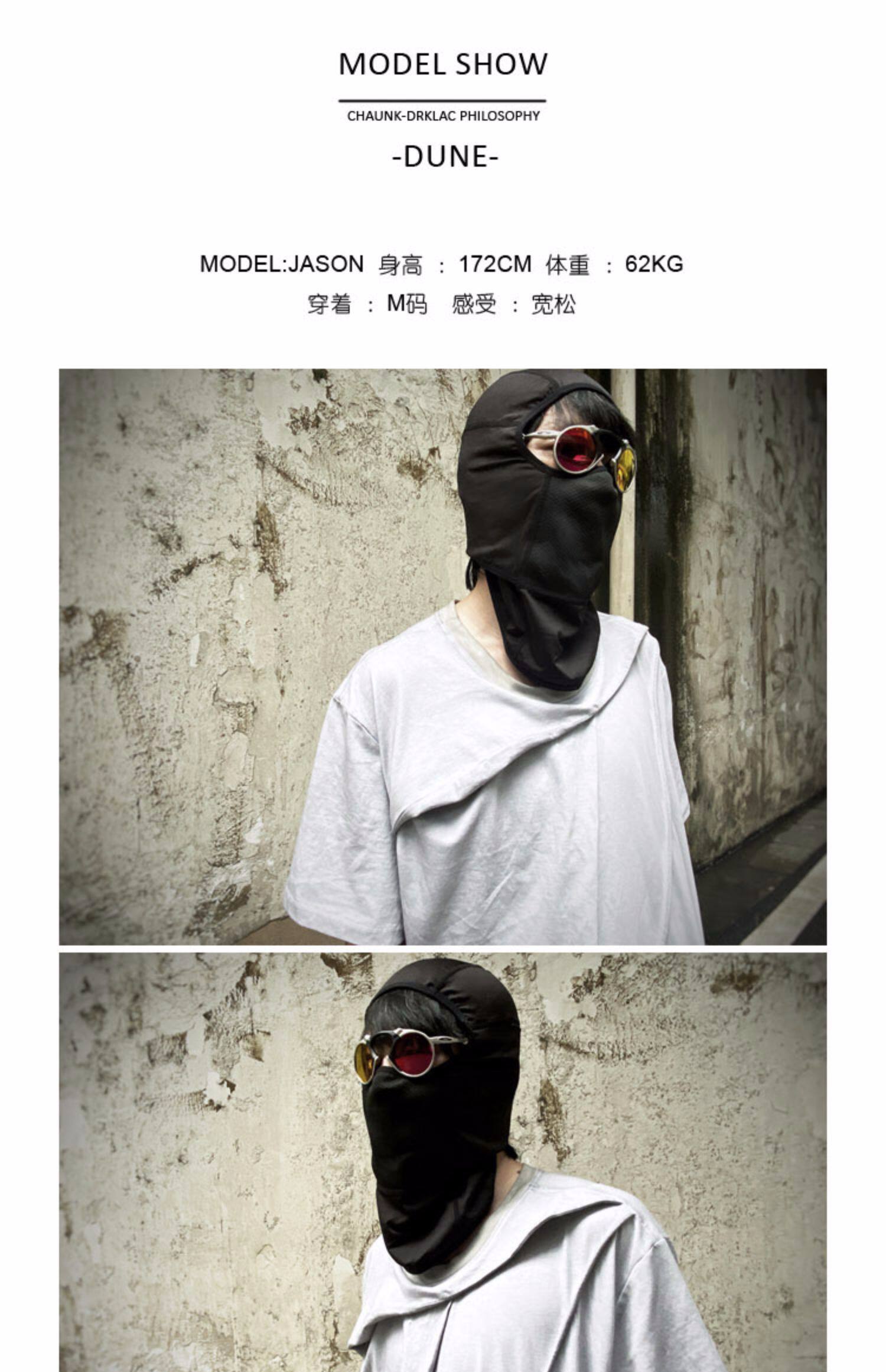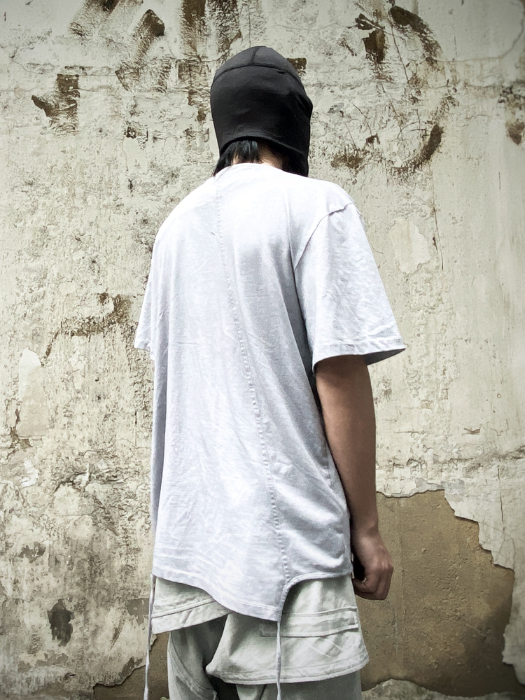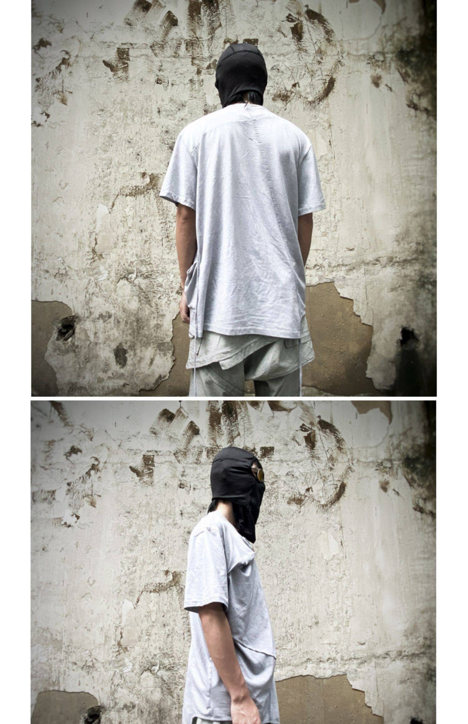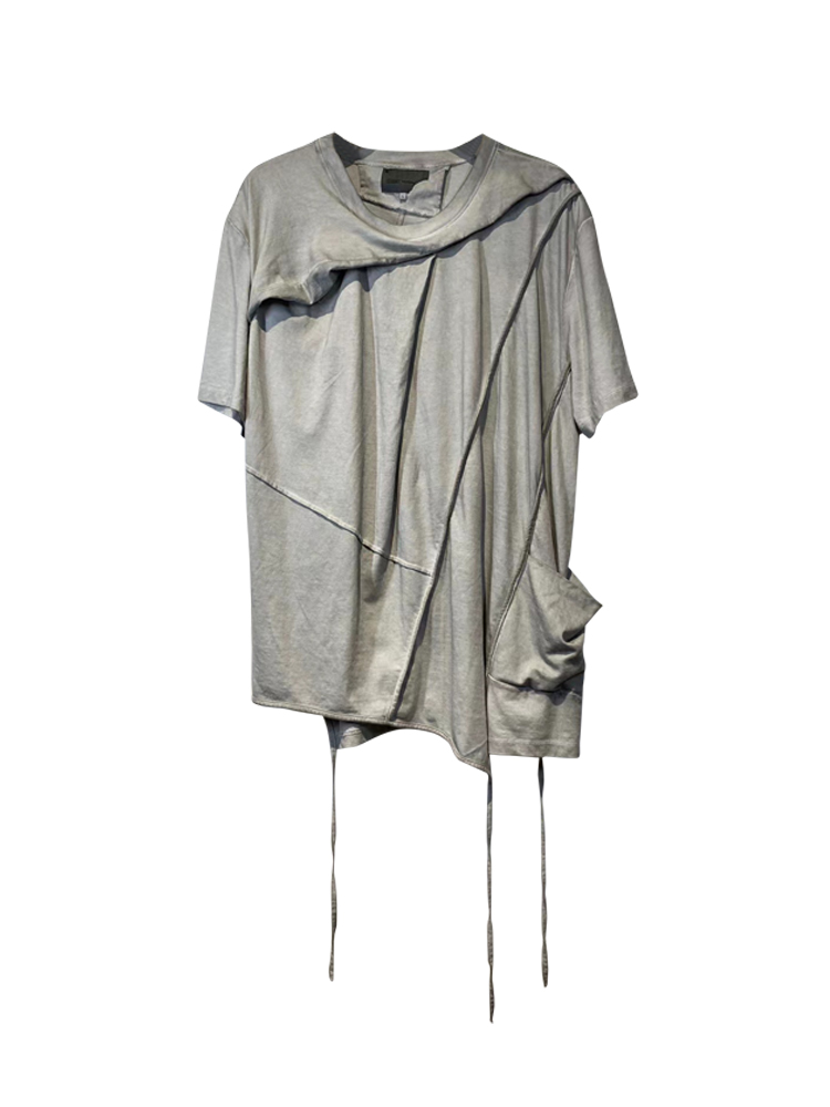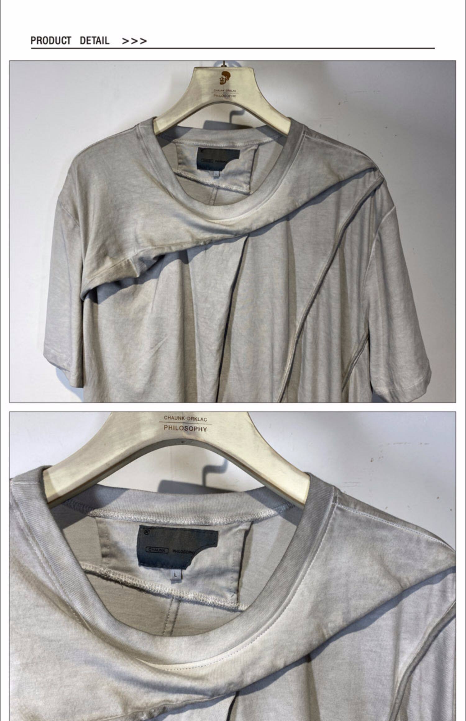 CHAUNK先鋒沙丘廢土不對稱紮染做舊流蘇DEMO褶襉純棉半袖T恤男潮