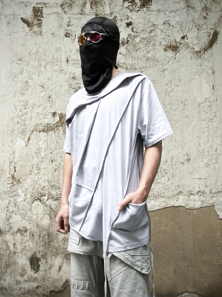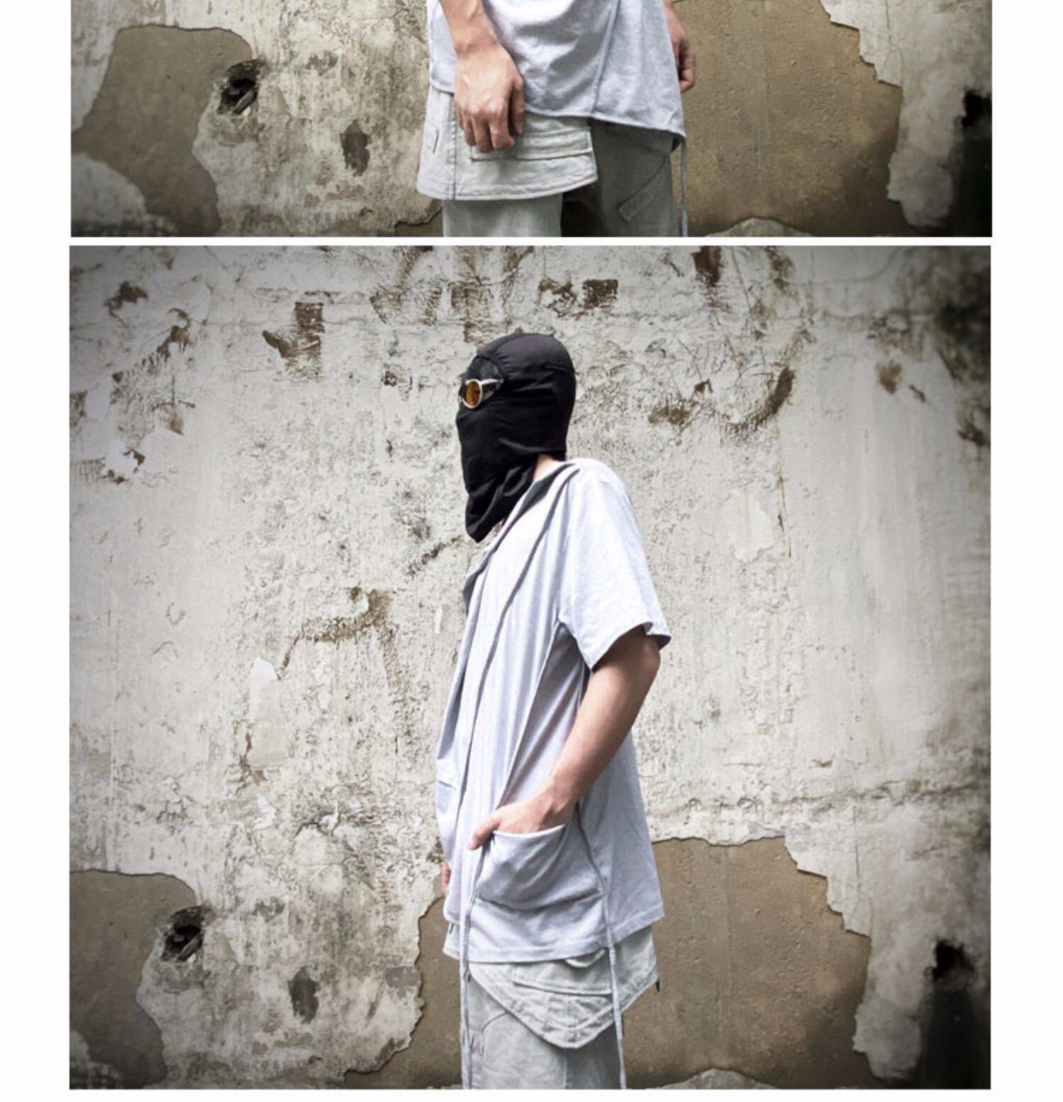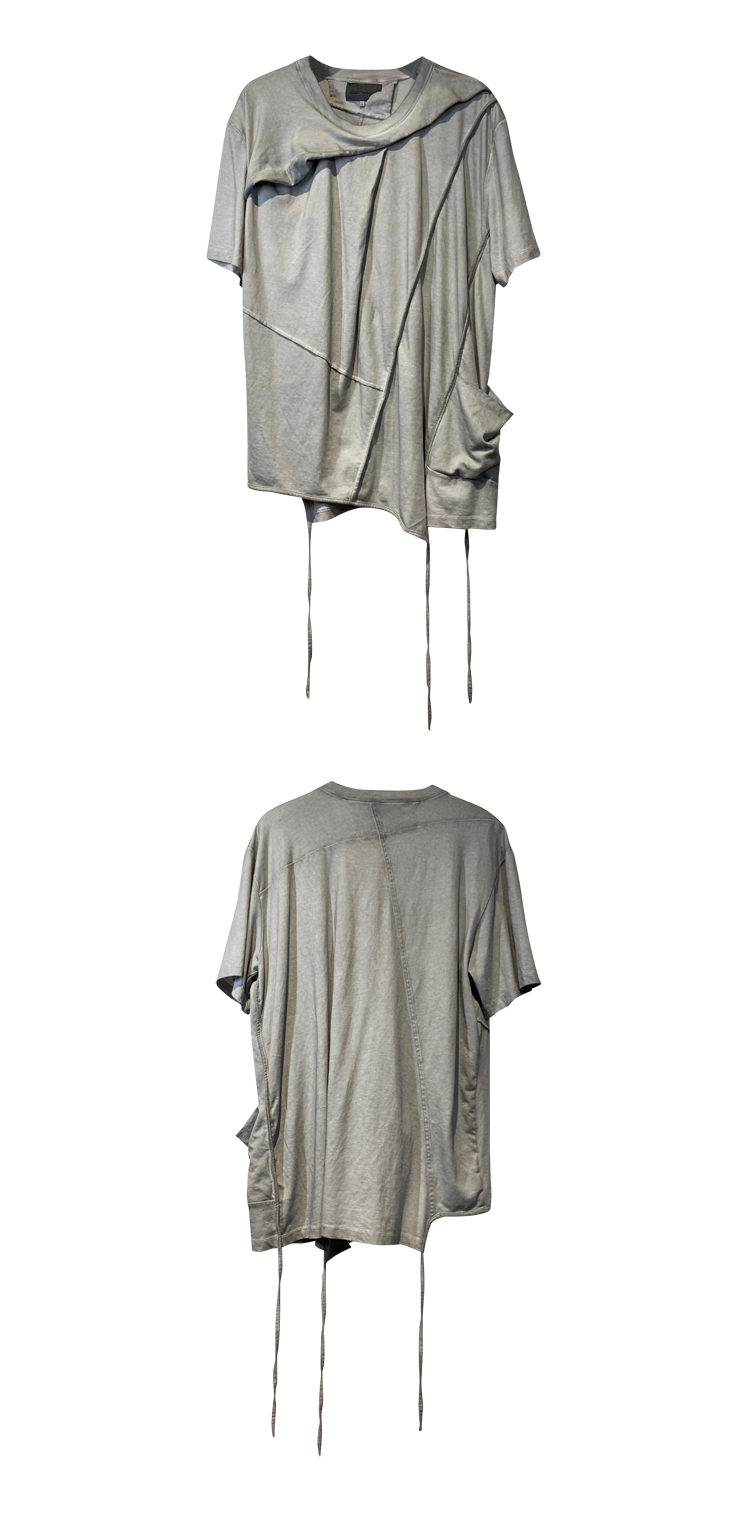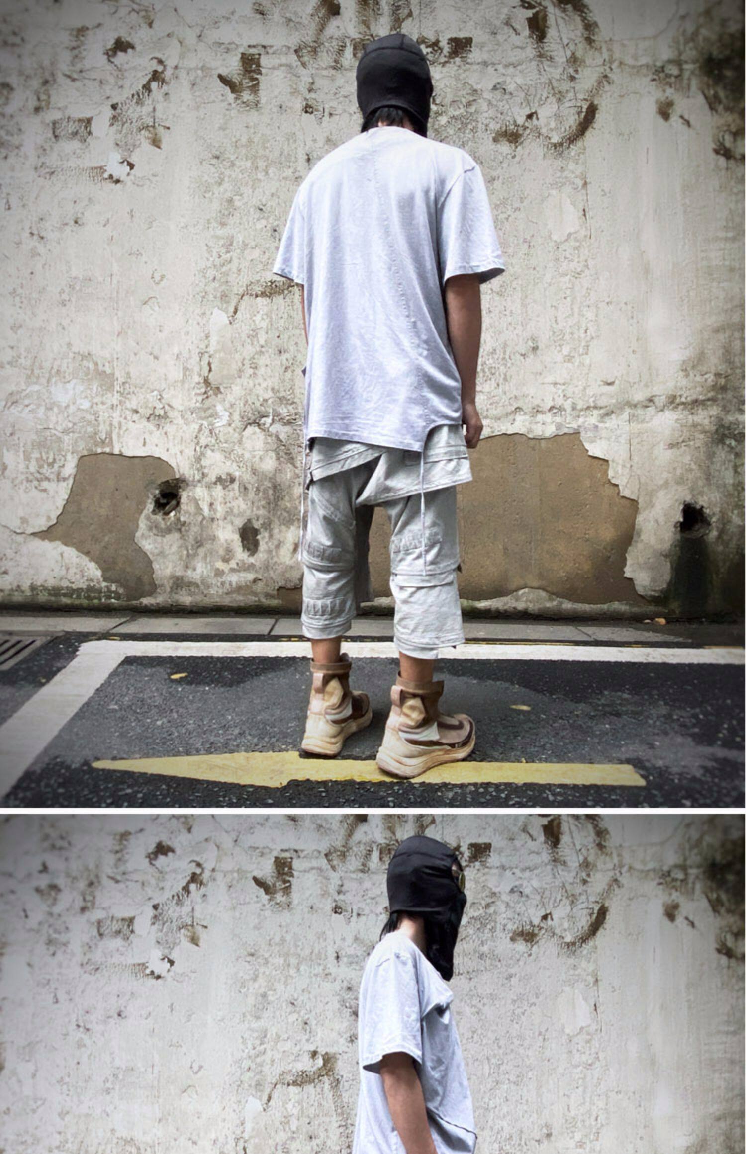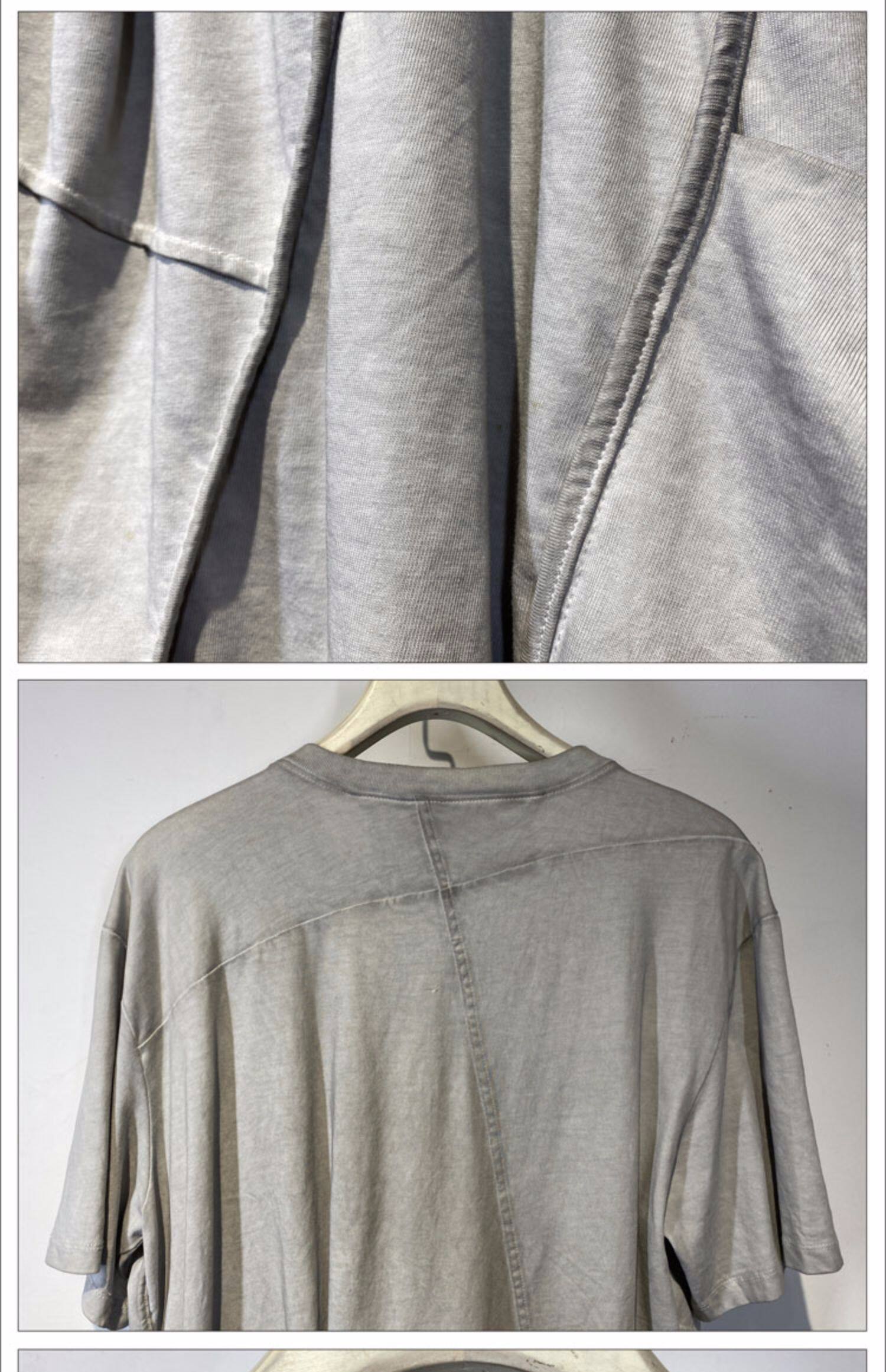 CHAUNK先鋒沙丘廢土不對稱紮染做舊流蘇DEMO褶襉純棉半袖T恤男潮