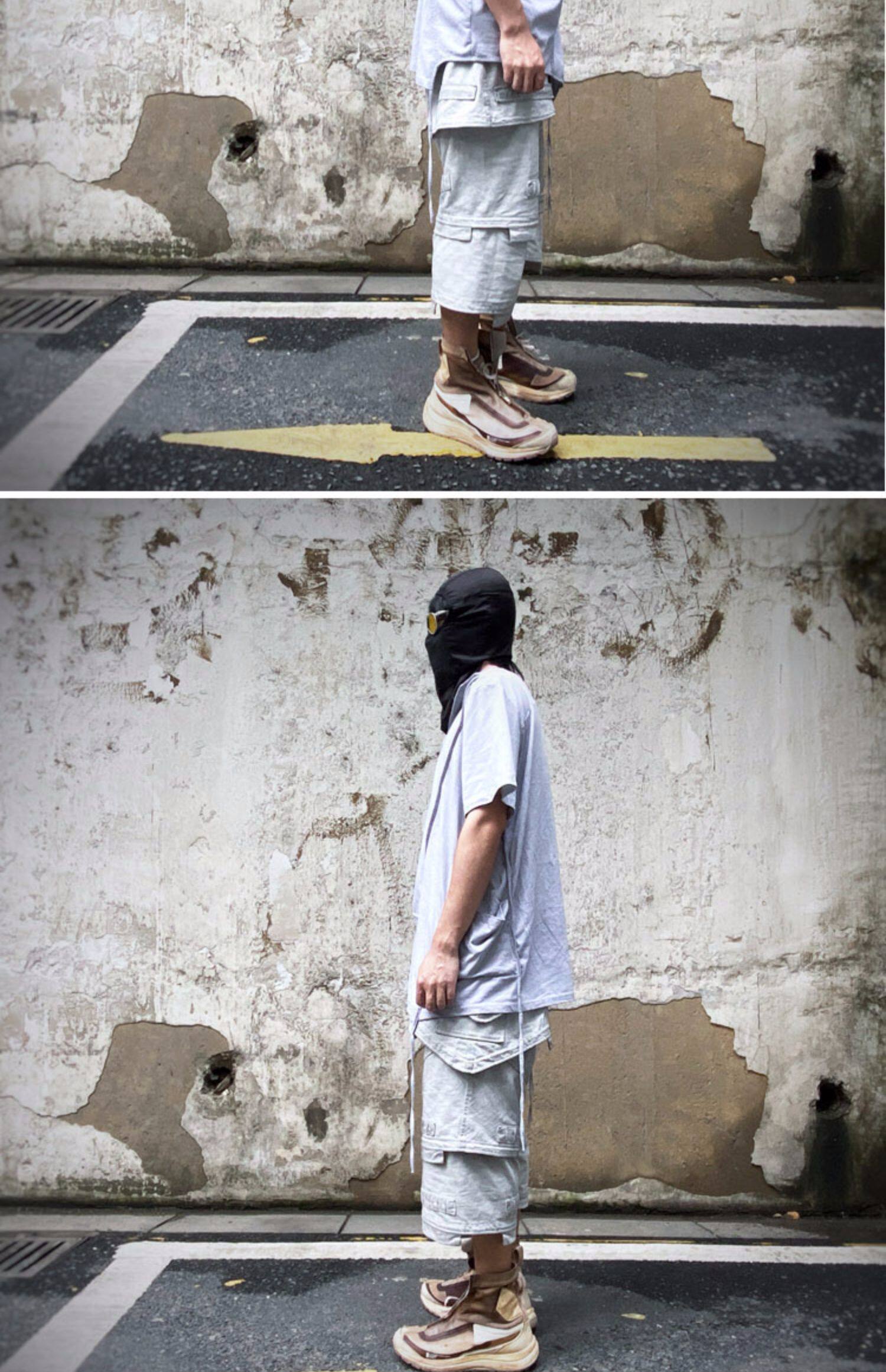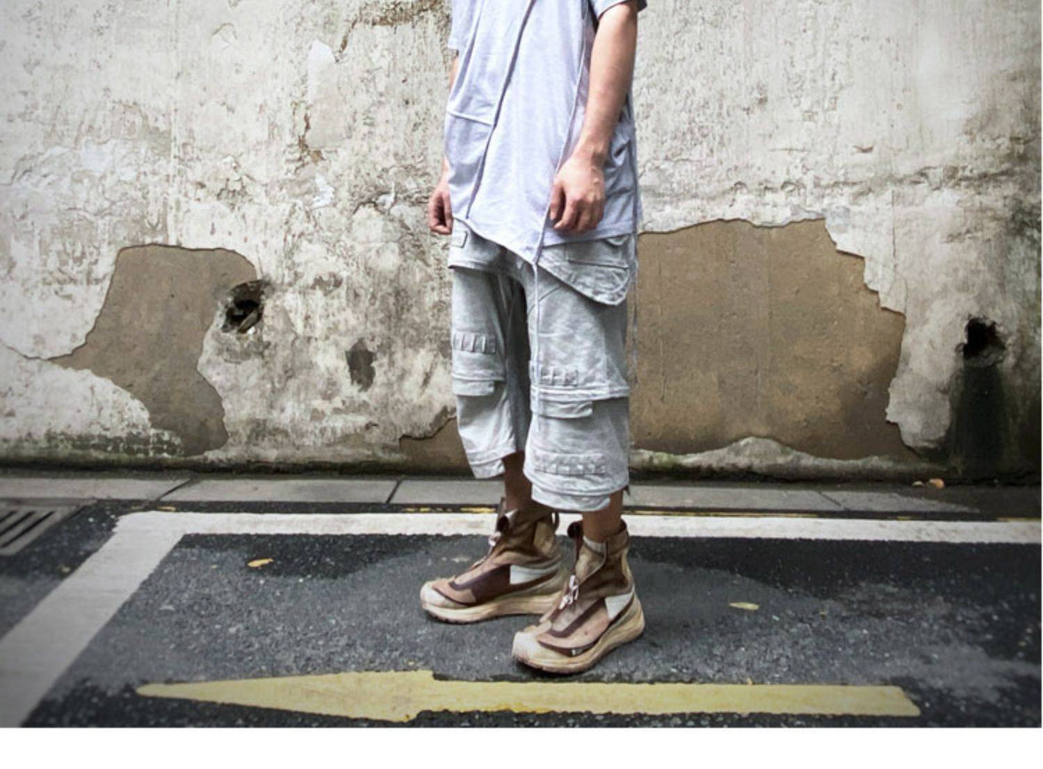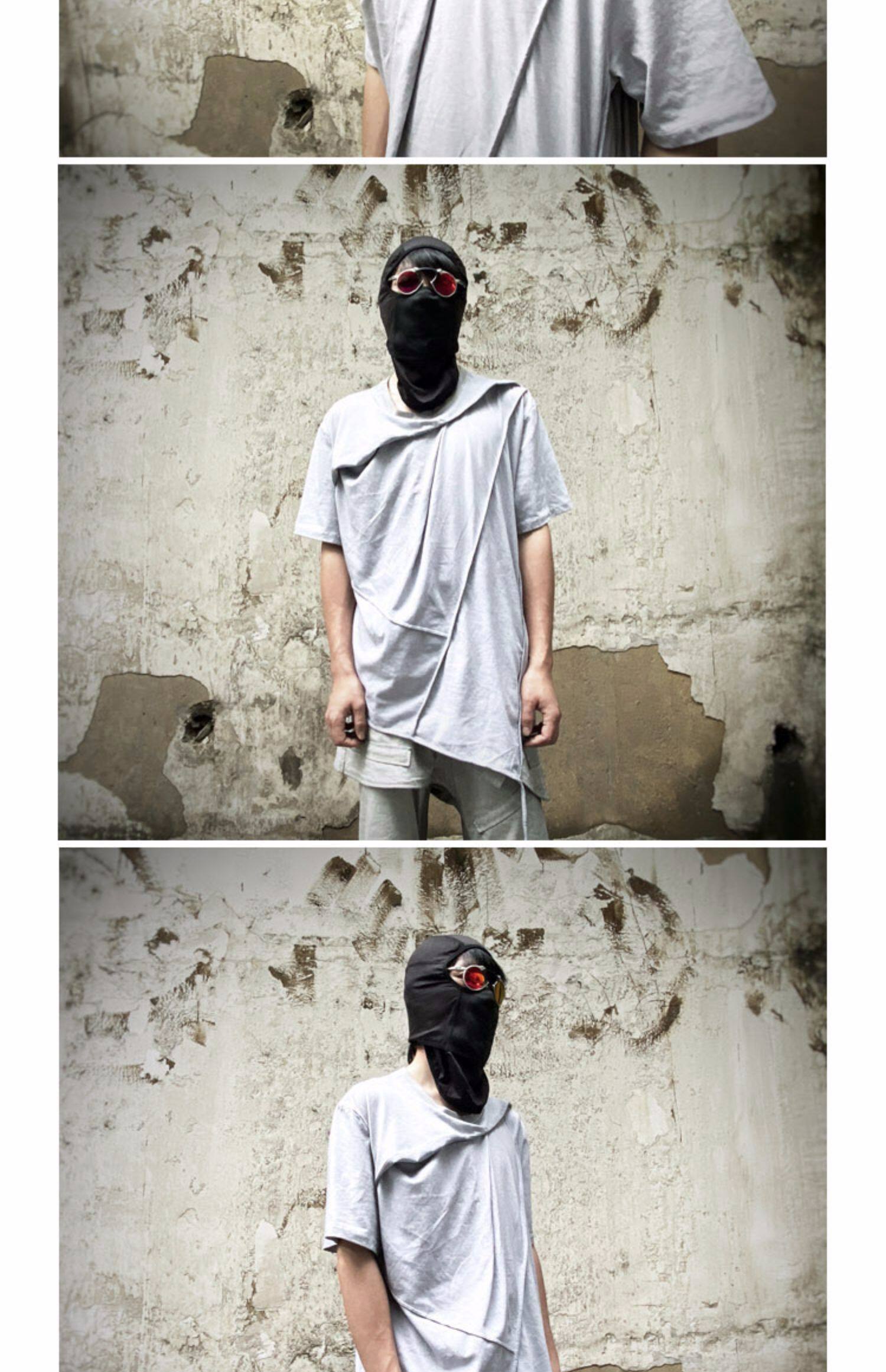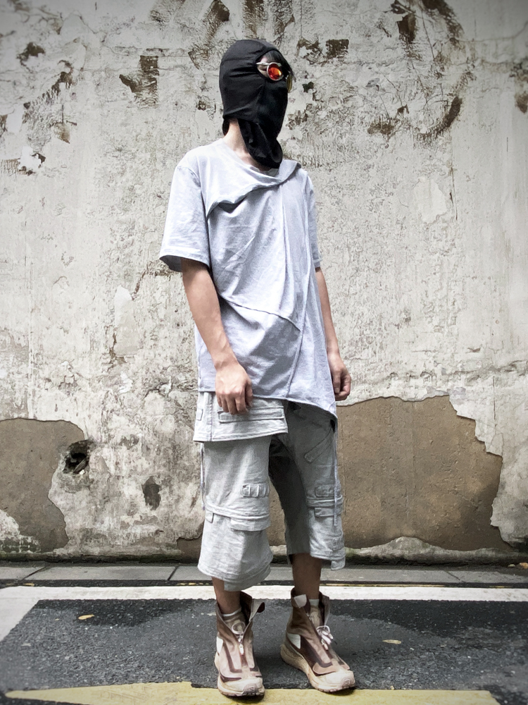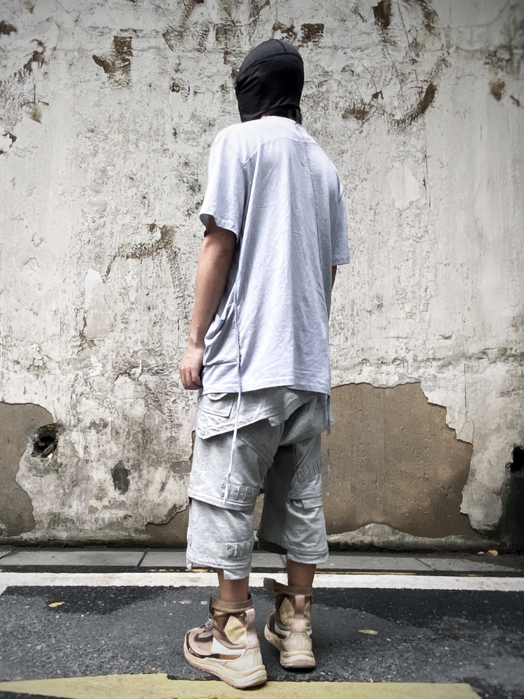 CHAUNK先鋒沙丘廢土不對稱紮染做舊流蘇DEMO褶襉純棉半袖T恤男潮