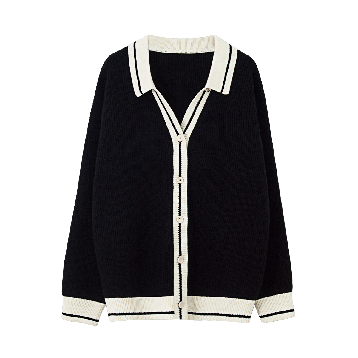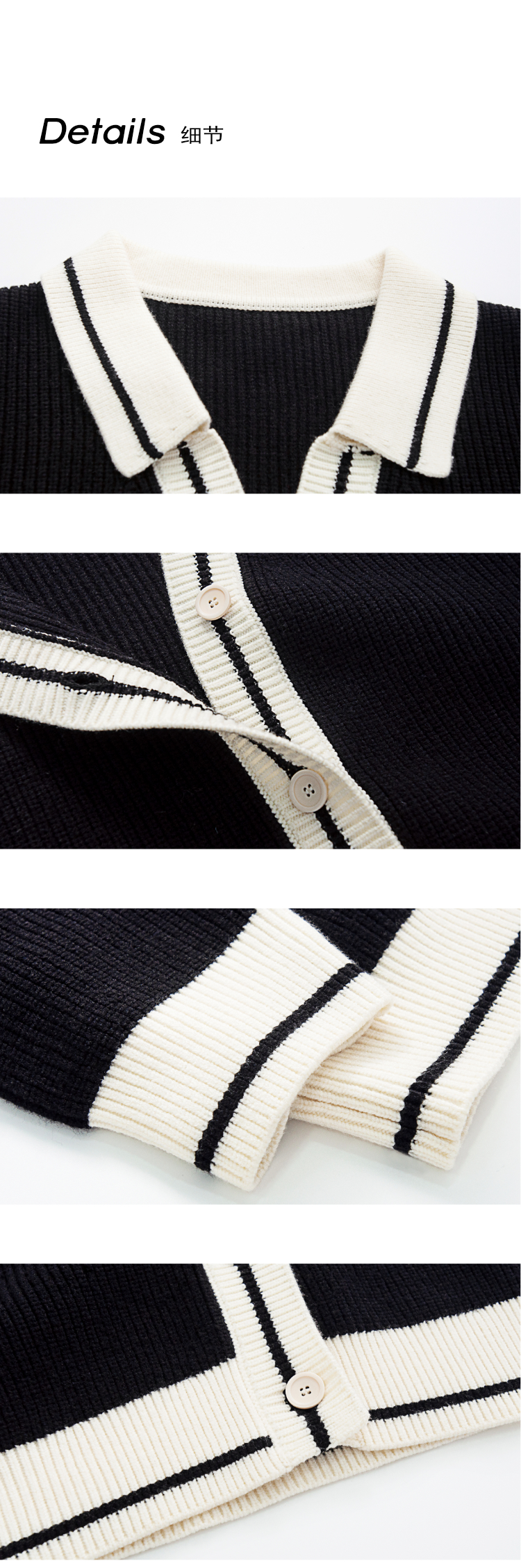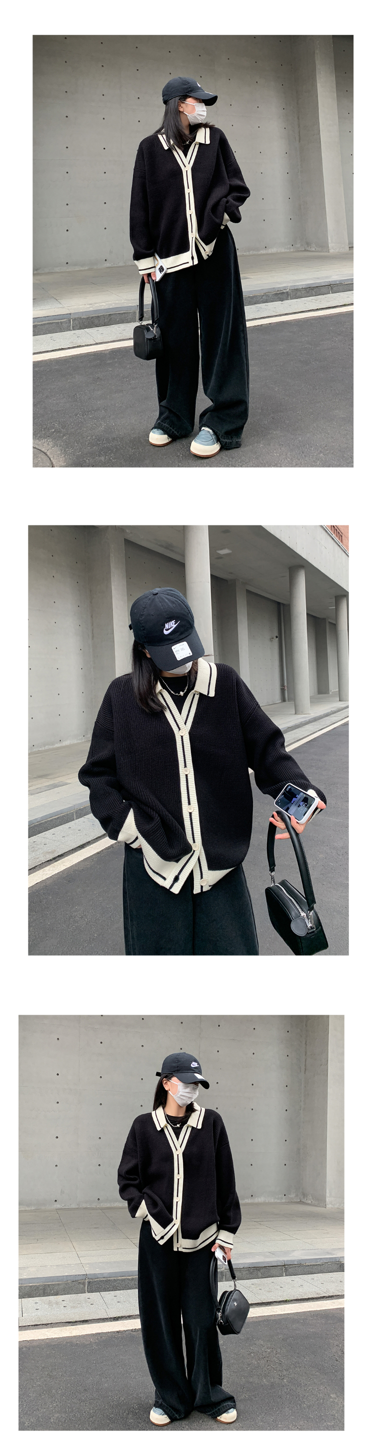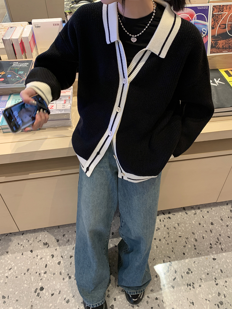 SIXI四喜家春季 撞色翻領小香毛衣開衫女慵懶風小眾寬鬆薄針織衫