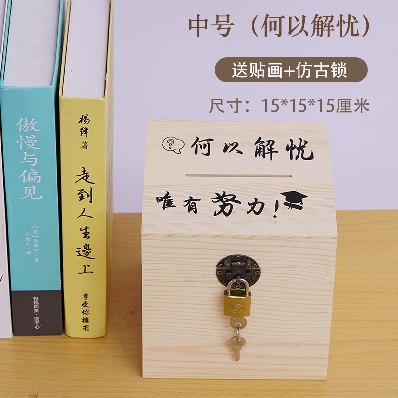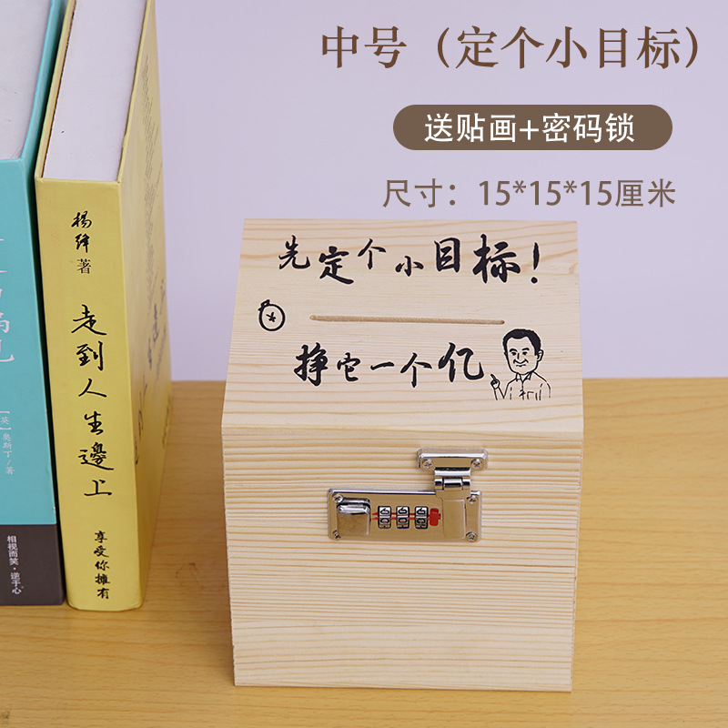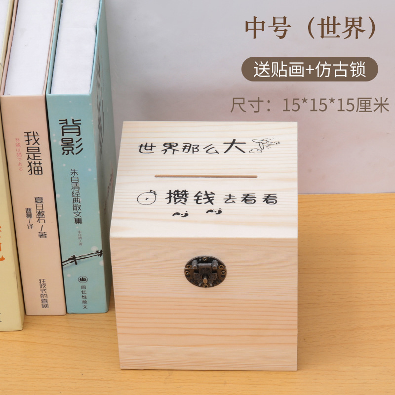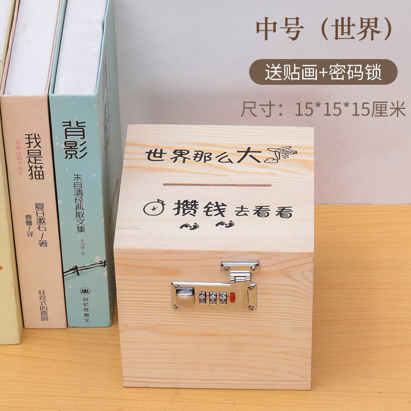 颜色 【定个小目标】超大号(送仿古锁+贴画) 26*15*15厘米,【资产过亿】超大号(送仿古锁+贴画) 26*15*15厘米,【何以解忧】超大号(送仿古锁+贴画) 26*15*15厘米,【世界那么大】超大号(送仿古锁+贴画) 26*15*15厘米,【攒幸福】超大号(送仿古锁+贴画) 26*15*15厘米,【奇心协力】超大号(送仿古锁+贴画) 26*15*15厘米,【定个小目标】中号(送仿古锁+贴画) 15*15*15厘米,【资产过亿】中号(送仿古锁+贴画) 15*15*15厘米,【何以解忧】中号(送仿古锁+贴画) 15*15*15厘米,【世界那么大】中号(送仿古锁+贴画) 15*15*15厘米,【攒幸福】中号(送仿古锁+贴画) 15*15*15厘米,【奇心协力】中号(送仿古锁+贴画) 15*15*15厘米,【定个小目标】超大号(送密码锁+贴画) 26*15*15厘米,【资产过亿】超大号(送密码锁+贴画) 26*15*15厘米,【何以解忧】超大号(送密码锁+贴画) 26*15*15厘米,【世界那么大】超大号(送密码锁+贴画) 26*15*15厘米,【攒幸福】超大号(送密码锁+贴画) 26*15*15厘米,【奇心协力】超大号(送密码锁+贴画) 26*15*15厘米,【定个小目标】中号(送密码锁+贴画) 15*15*15厘米,【资产过亿】中号(送密码锁+贴画) 15*15*15厘米,【何以解忧】中号(送密码锁+贴画) 15*15*15厘米,【世界那么大】中号(送密码锁+贴画) 15*15*15厘米,【攒幸福】中号(送密码锁+贴画) 15*15*15厘米,【奇心协力】中号(送密码锁+贴画) 15*15*15厘米,【奇心协力】小号(送仿古锁+贴画) 12.5*12.5*12.5厘米,【只进不出 】无图案无锁 12.5*12.5*12.5厘米