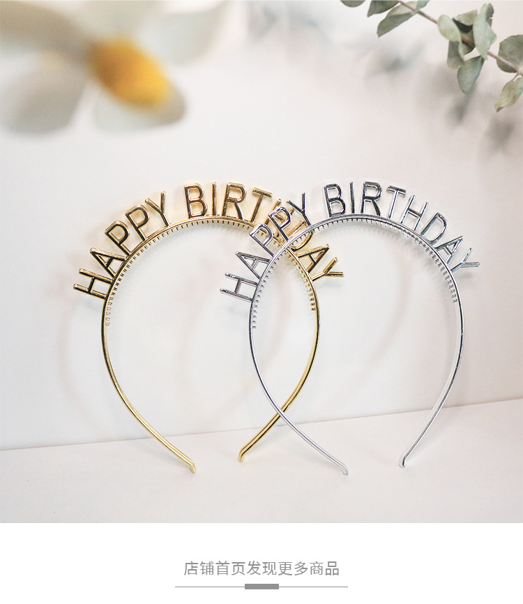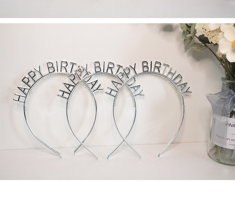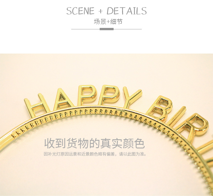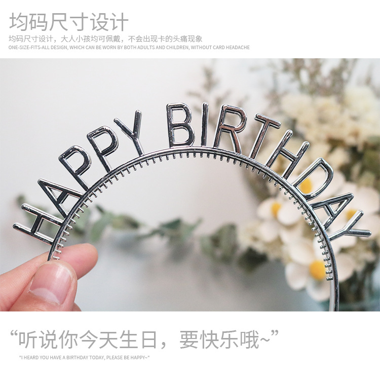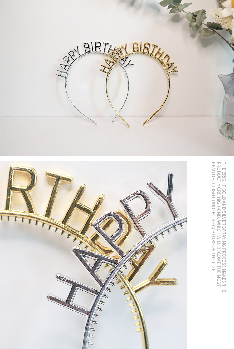 生日快乐字母发箍头饰生日装饰塑料速卖通塑料电镀金银发箍英文字