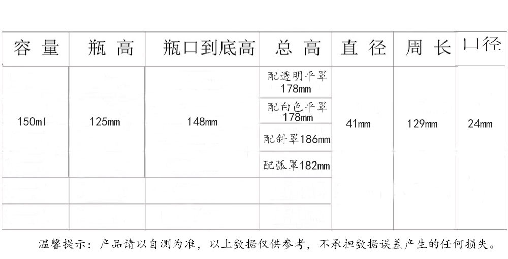 产品容量:150ml