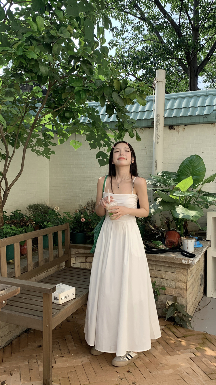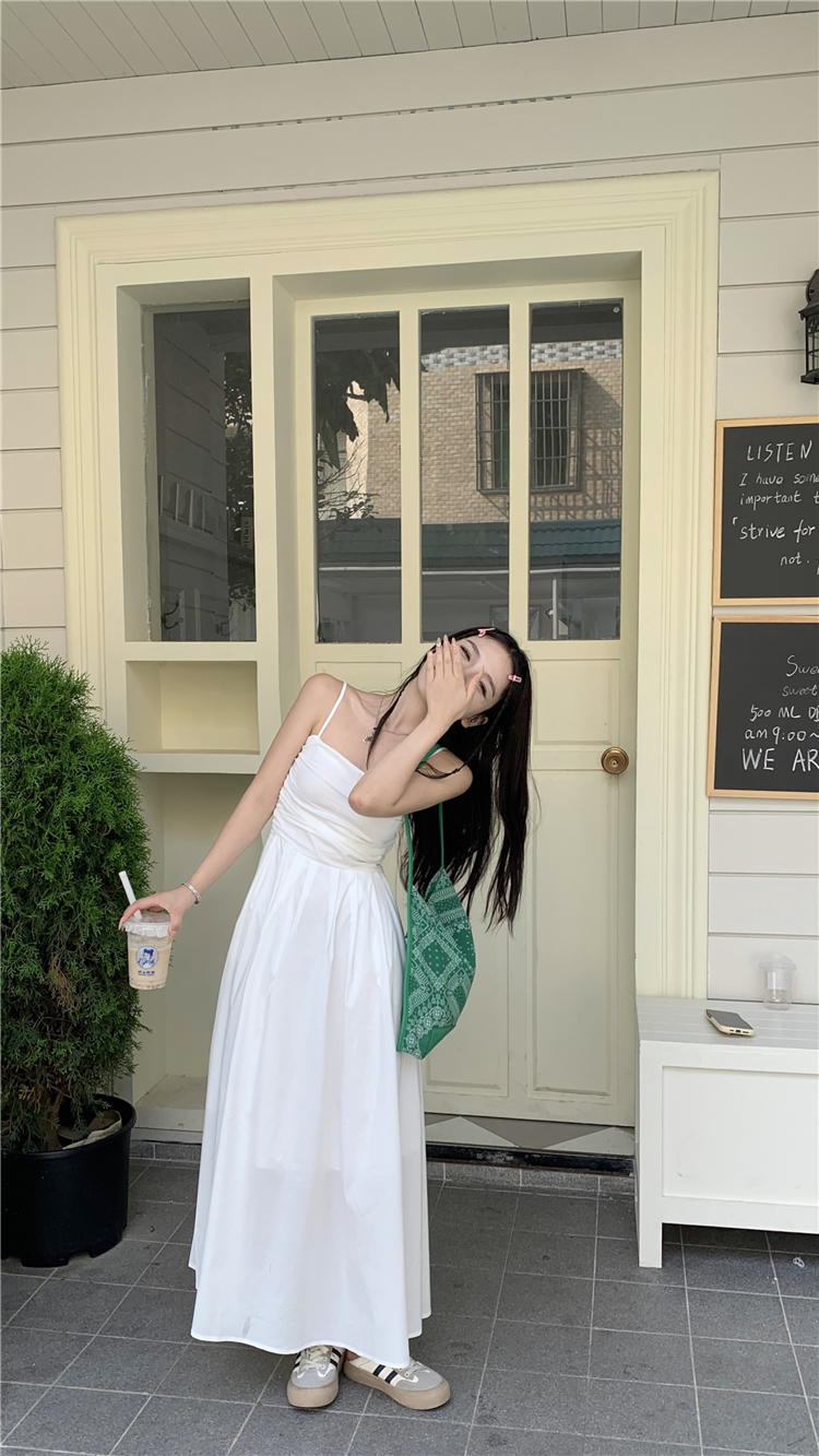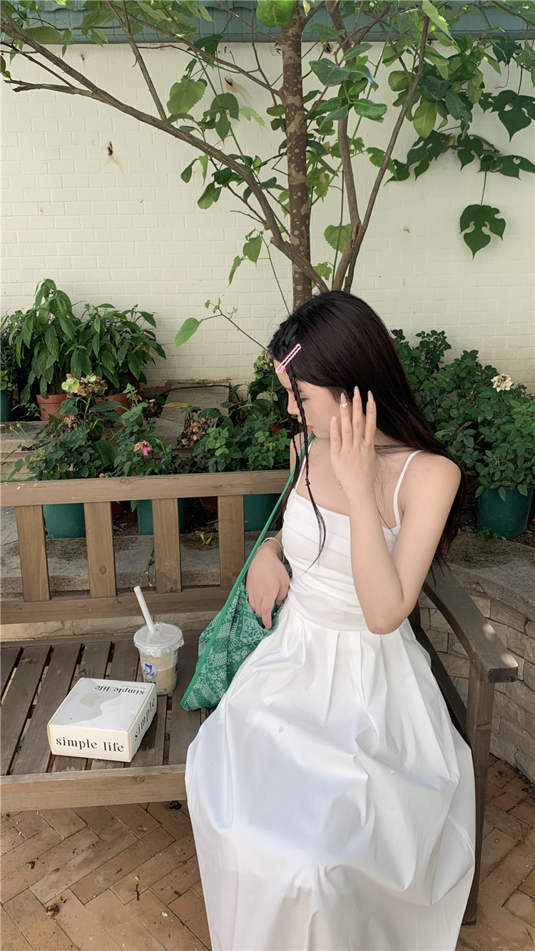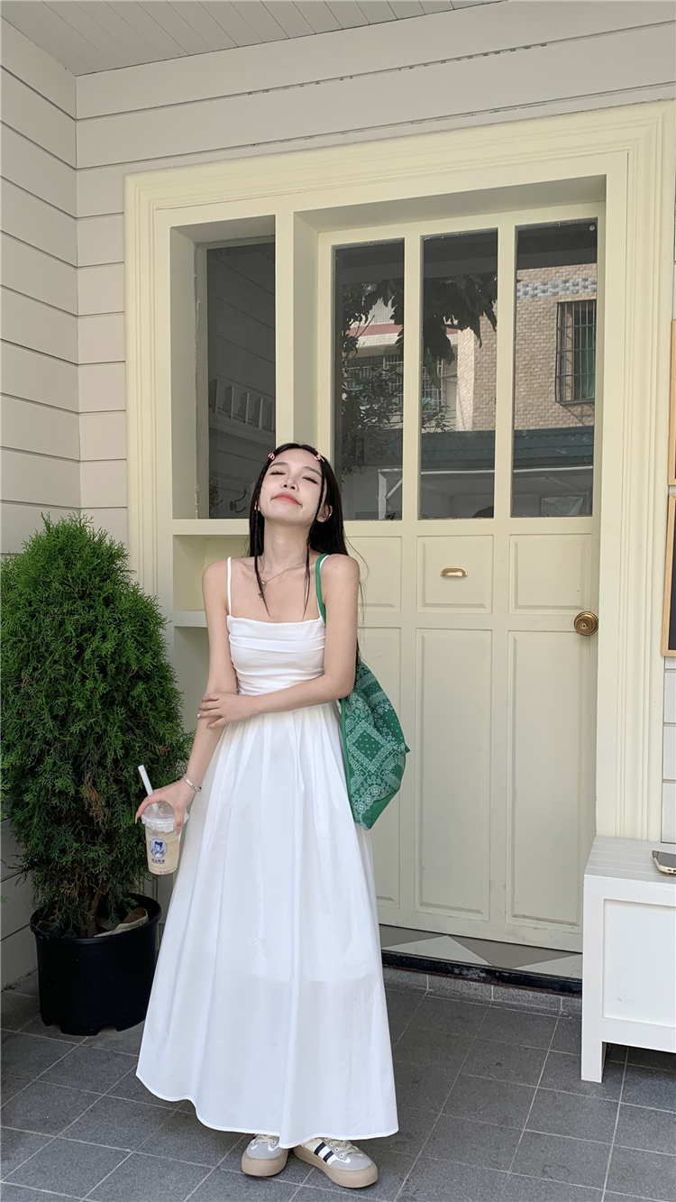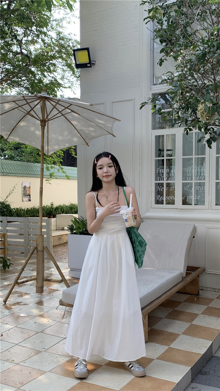 PPHOME嬌欲千金~法式褶皺顯瘦百搭露背氣質中長版吊帶洋裝夏季