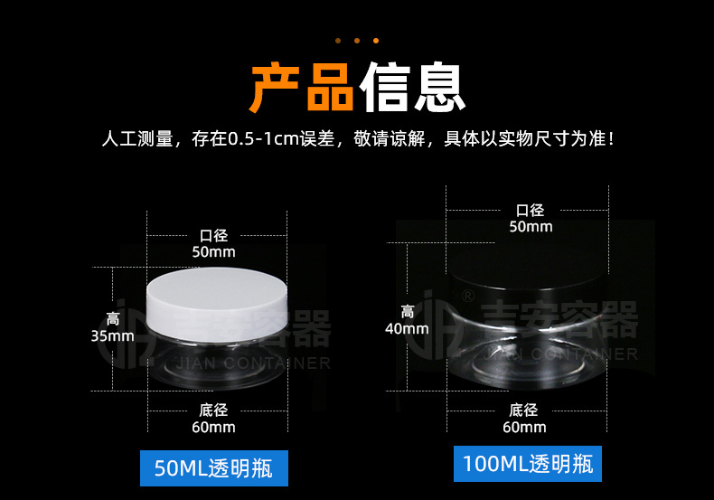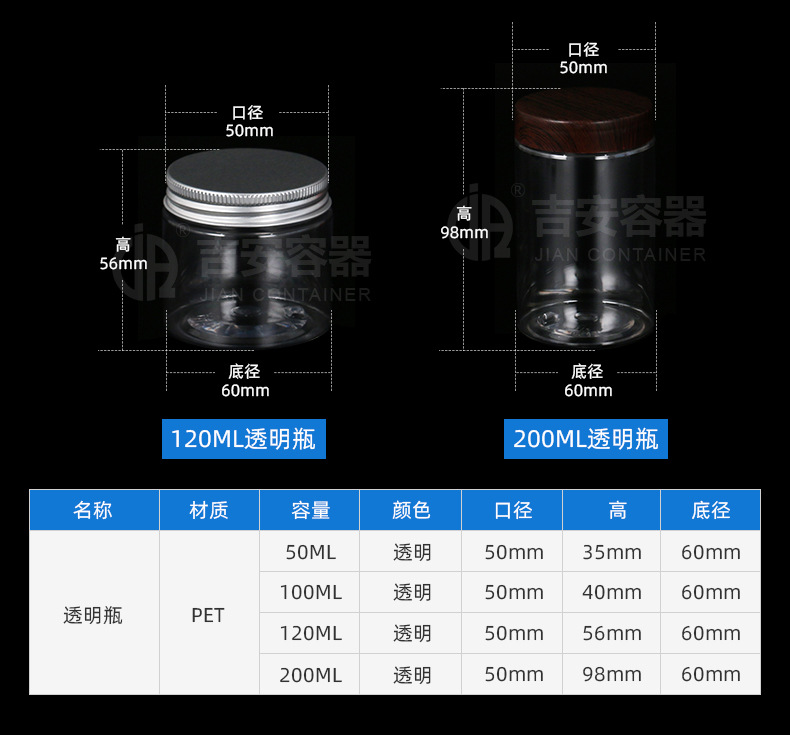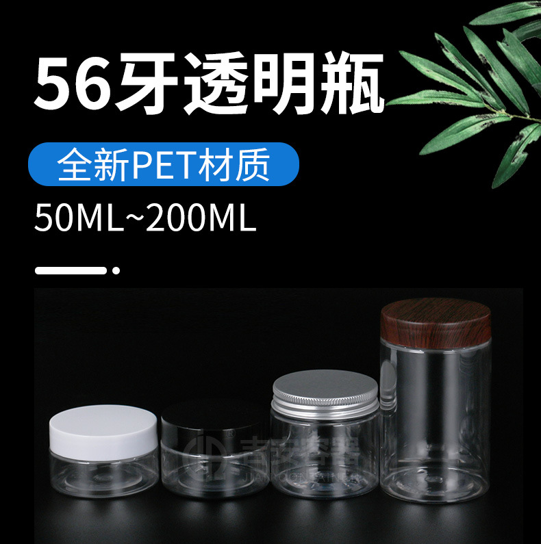 pet透明塑料罐56牙50/100/200ml广口瓶120g日化包装圆罐食品罐