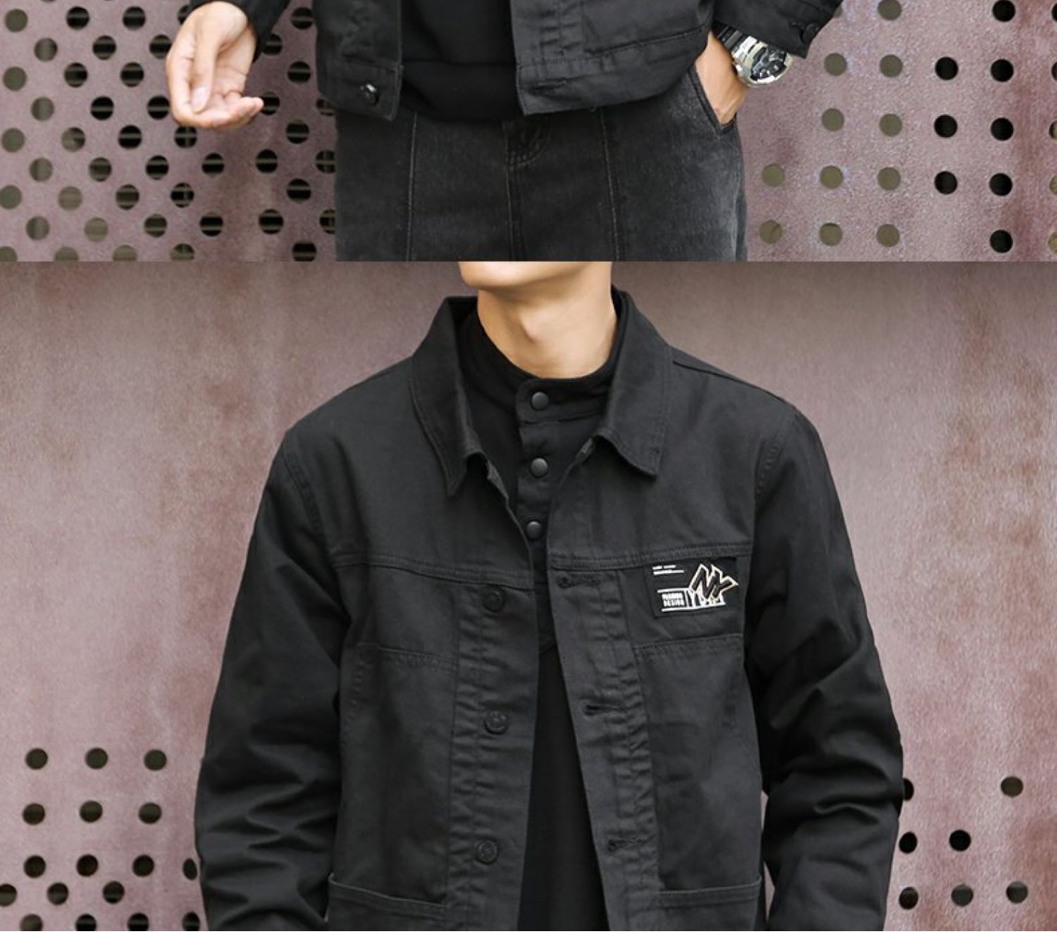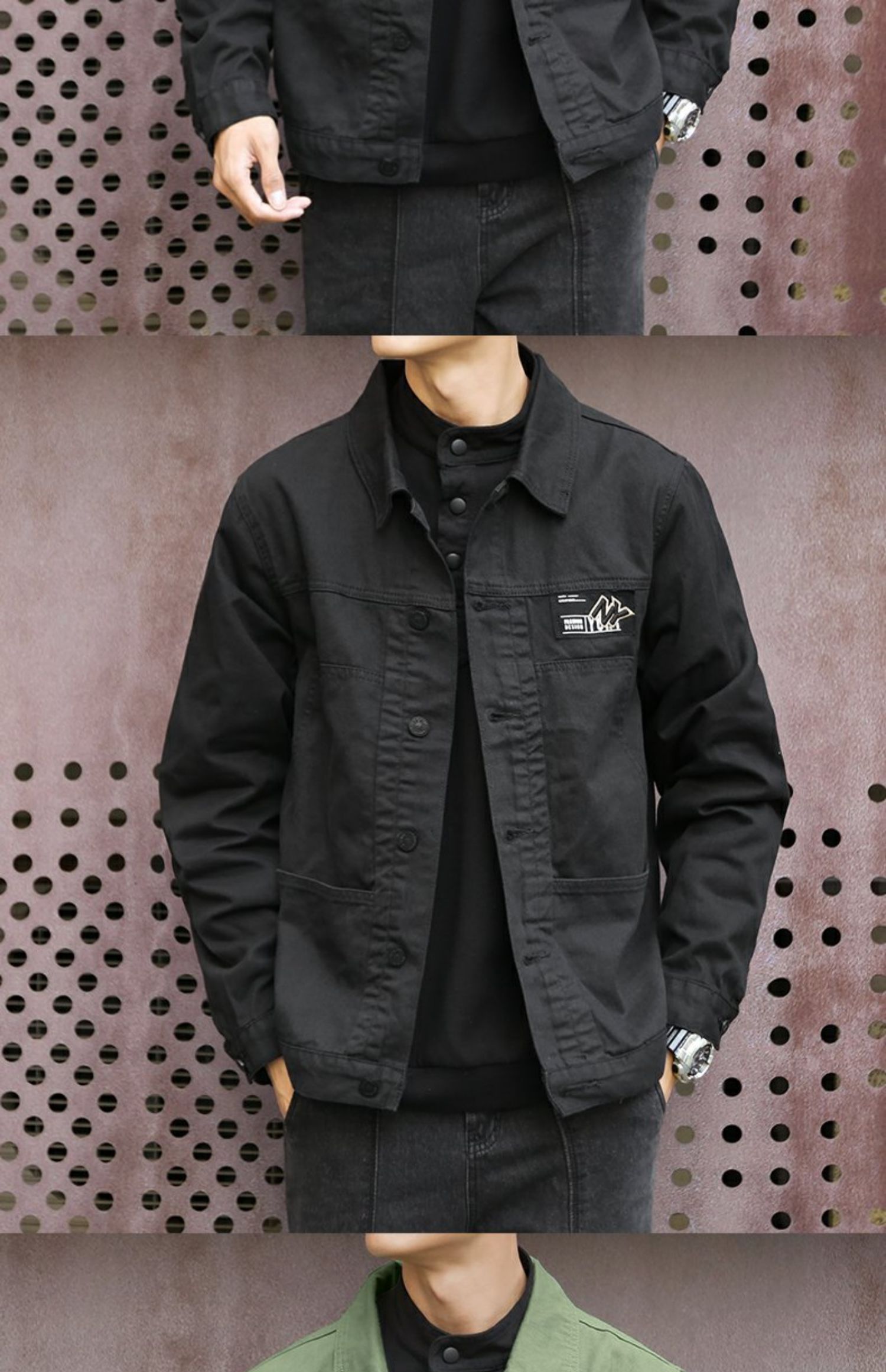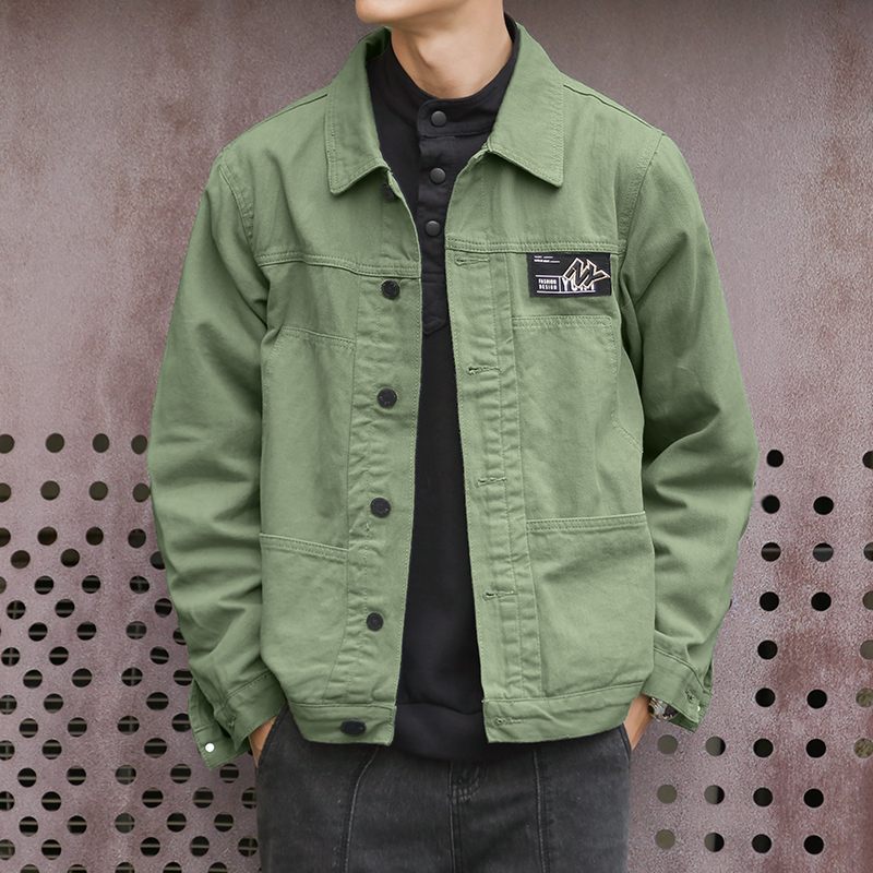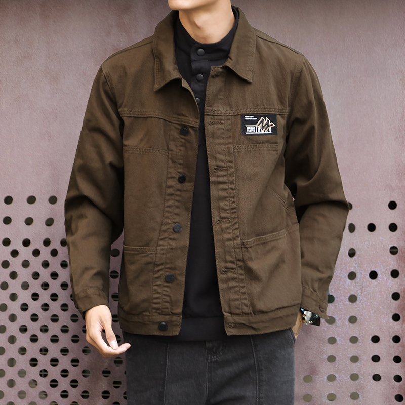 潮牌外套男士2023年春秋季新款美式復古翻領上衣寬鬆純色潮流夾克