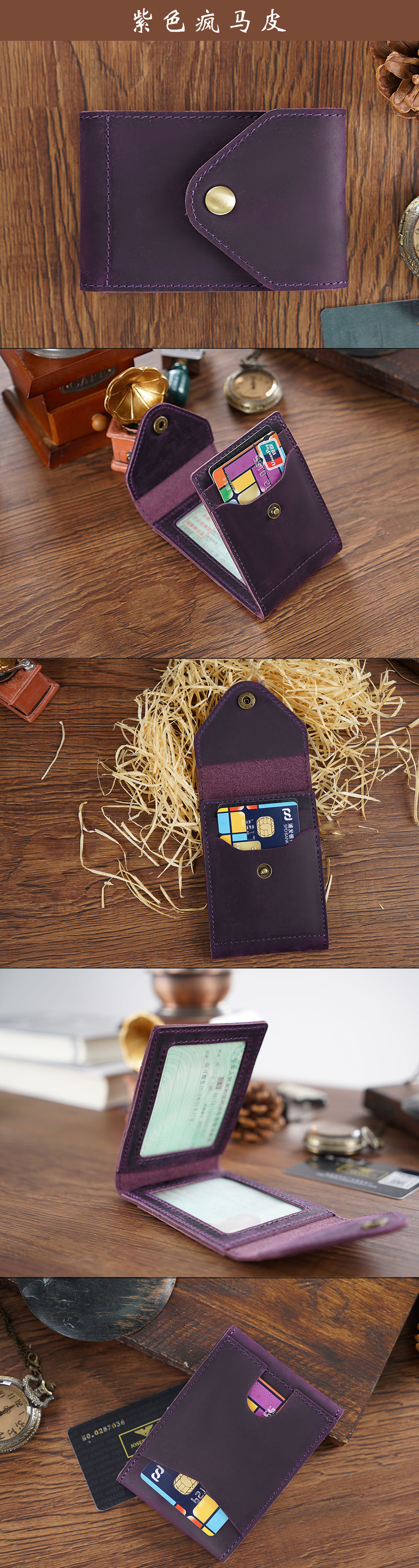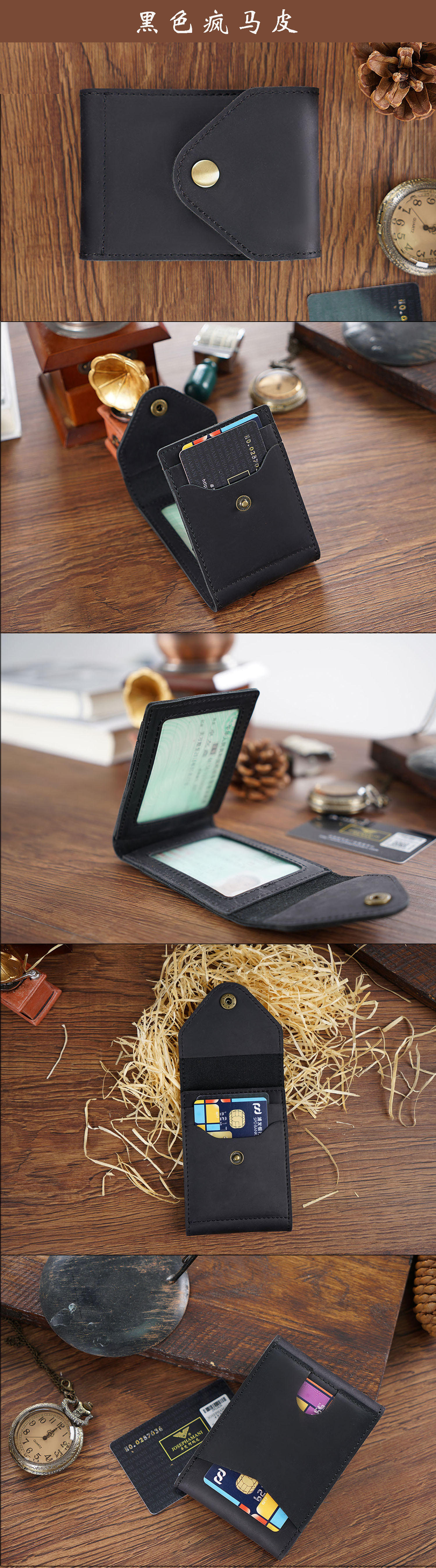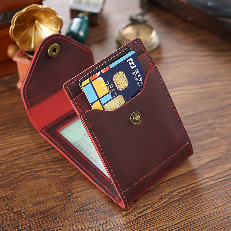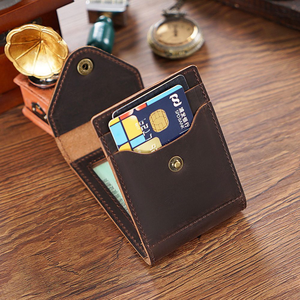 新款真皮名片卡包疯马皮按扣零钱包简约名片卡夹
