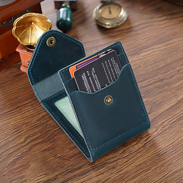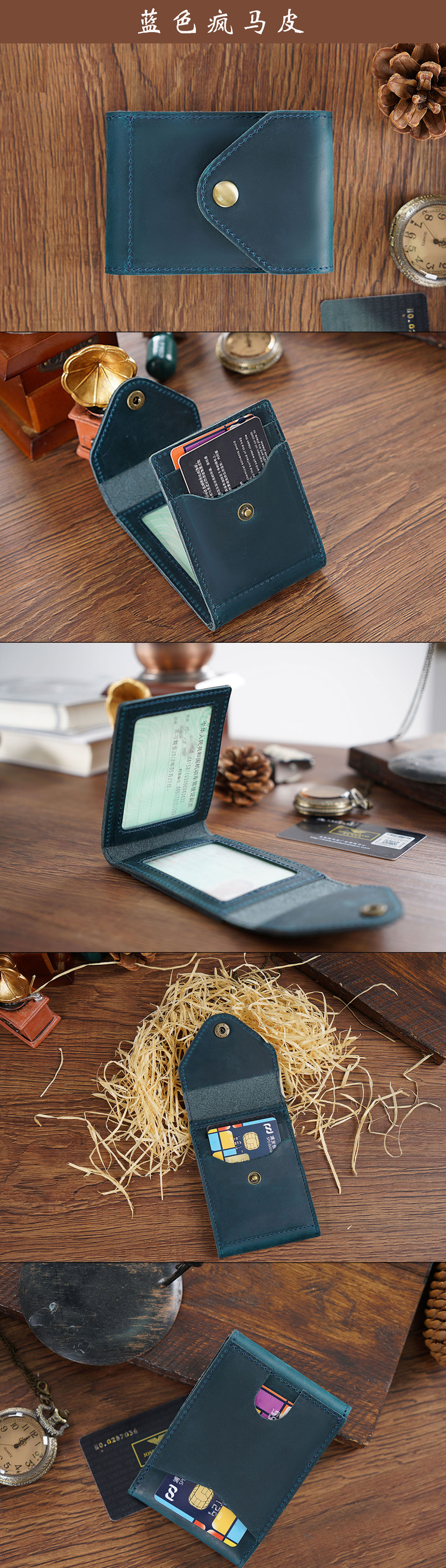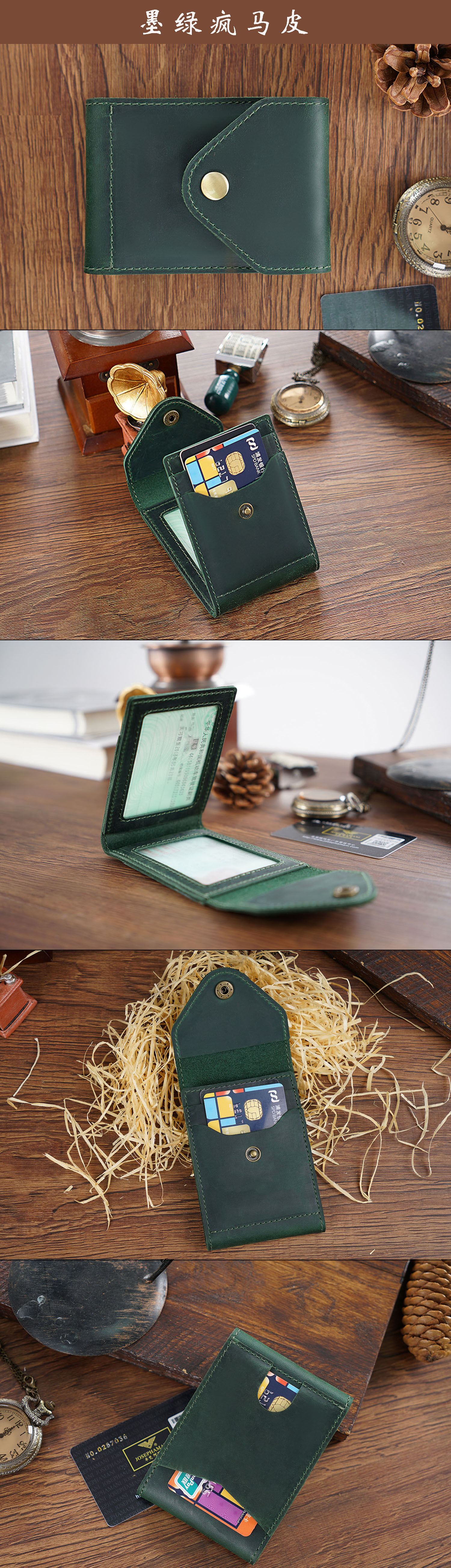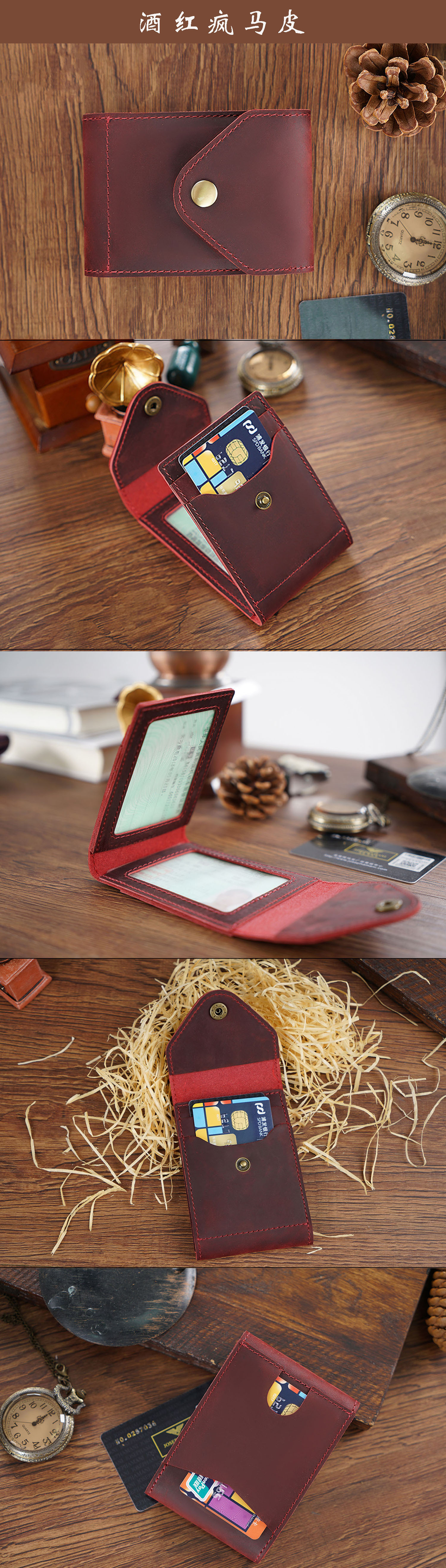 新款真皮名片卡包疯马皮按扣零钱包简约名片卡夹