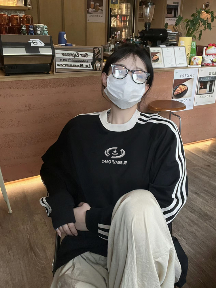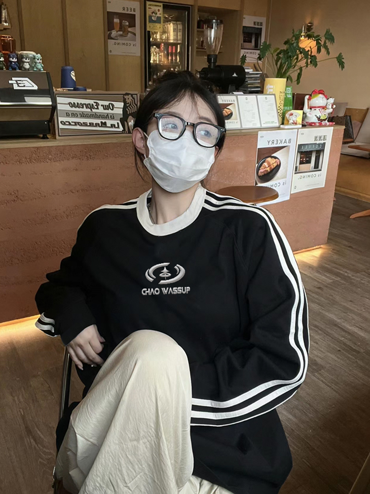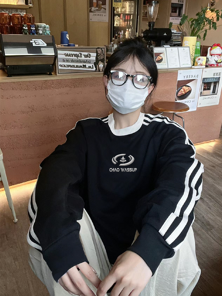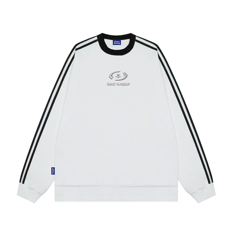 CHAO WASSUP立體金屬標槓條衛衣女秋冬情侶寬鬆運動休閒套頭上衣