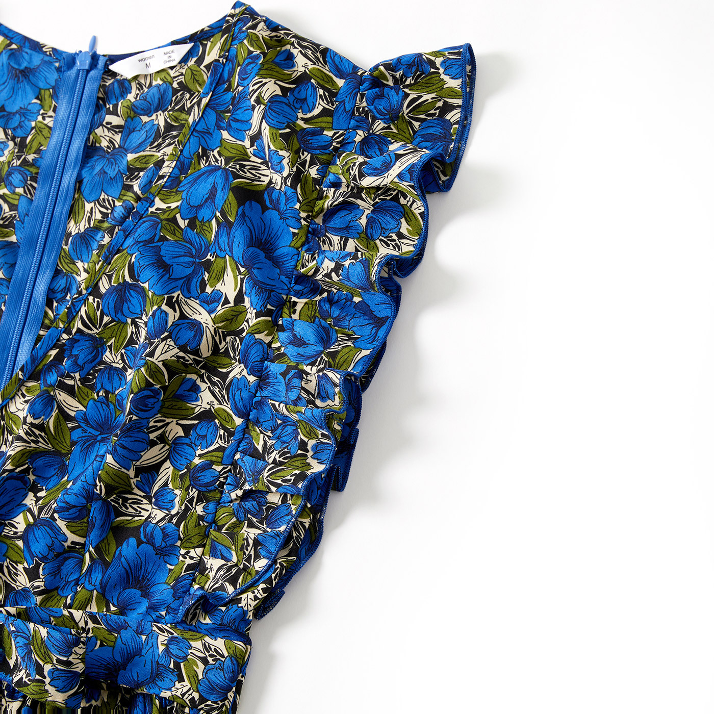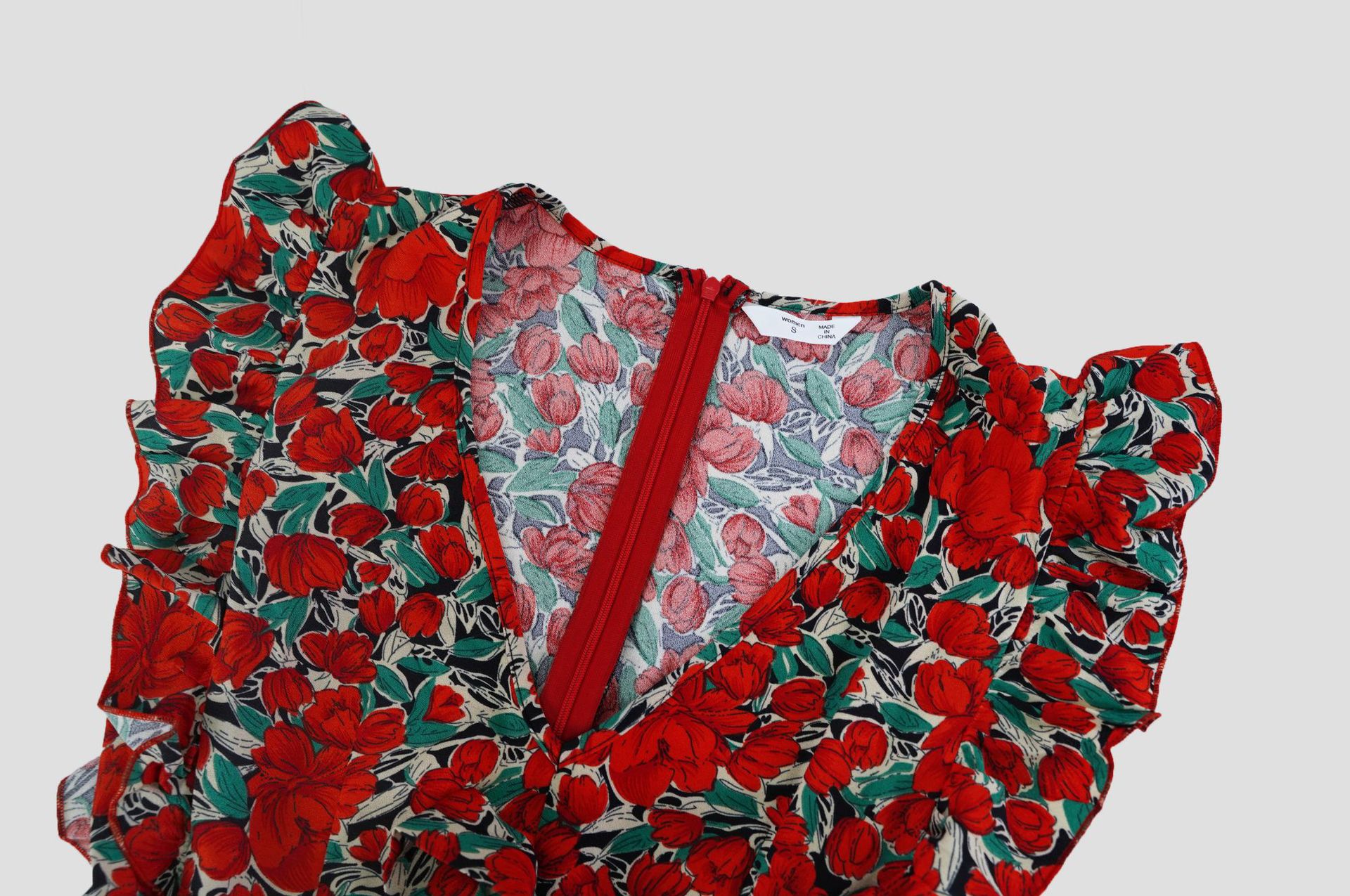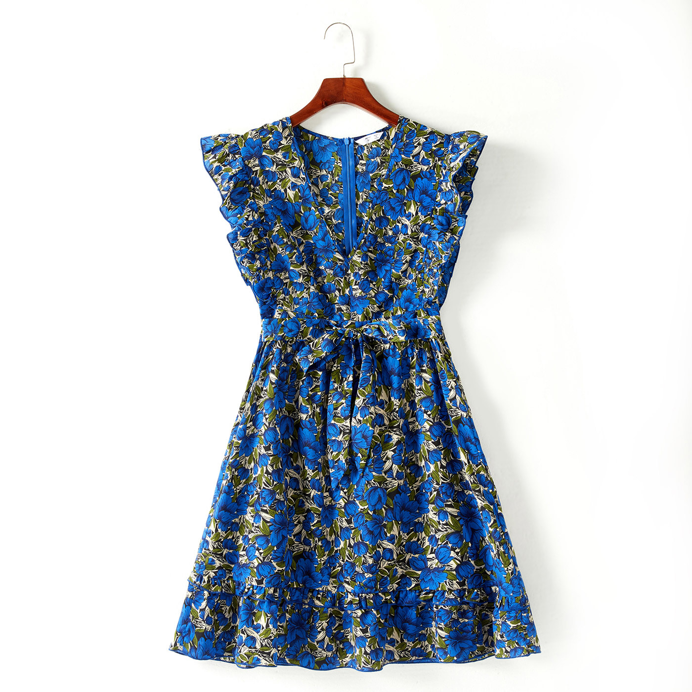 颜色 211034红色碎花V领连衣裙,211034蓝色碎花V领连衣裙