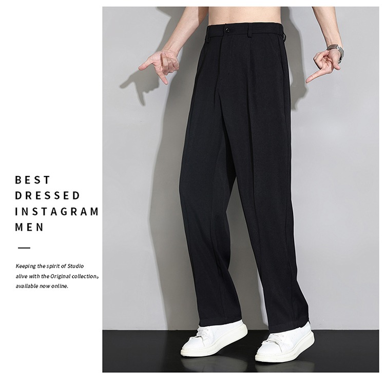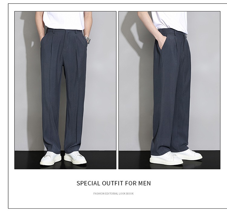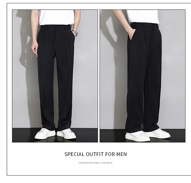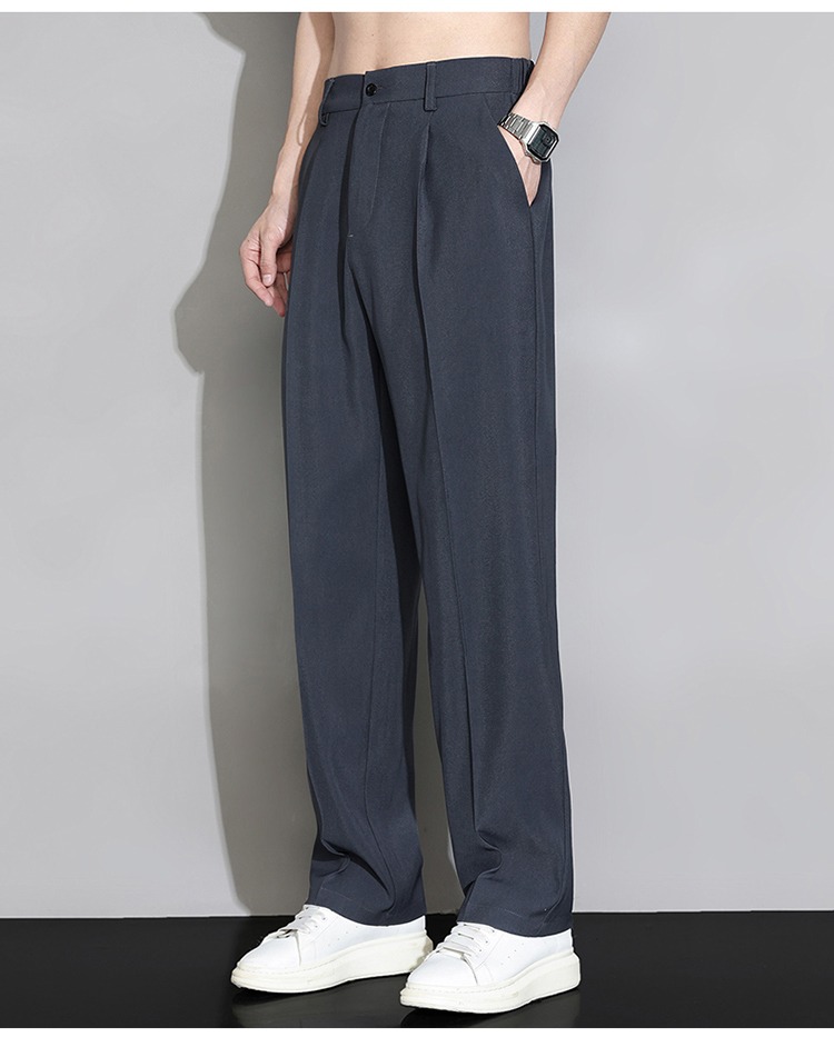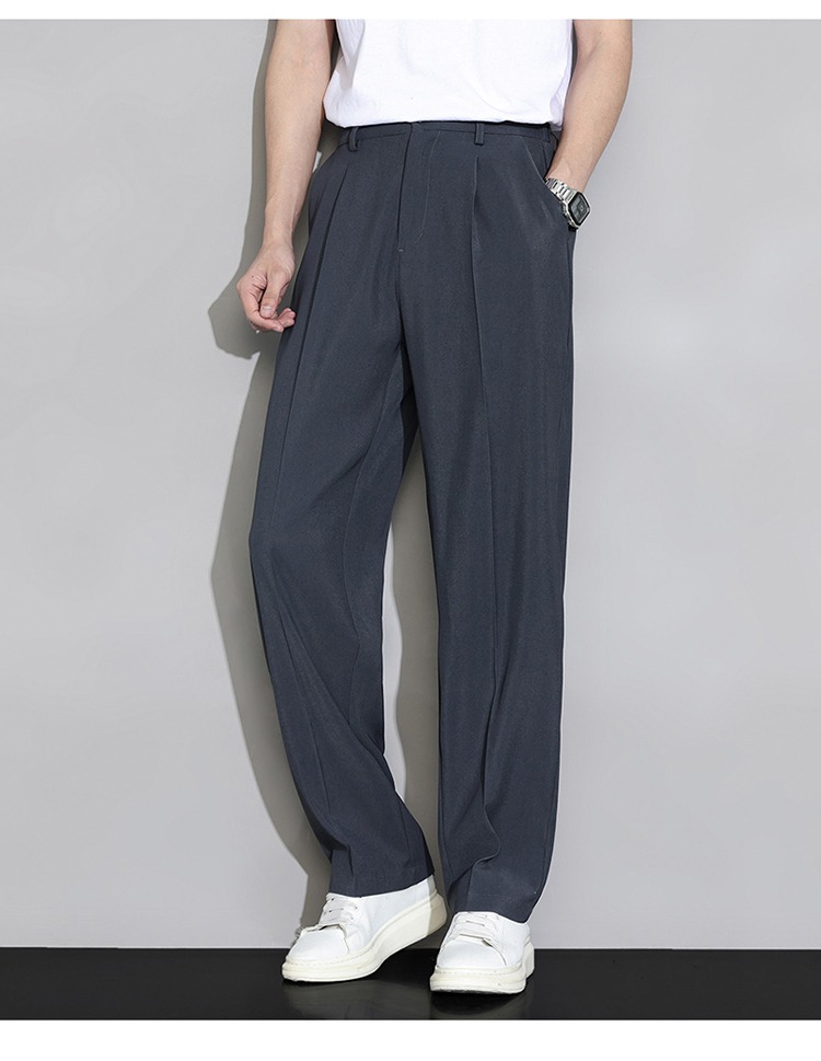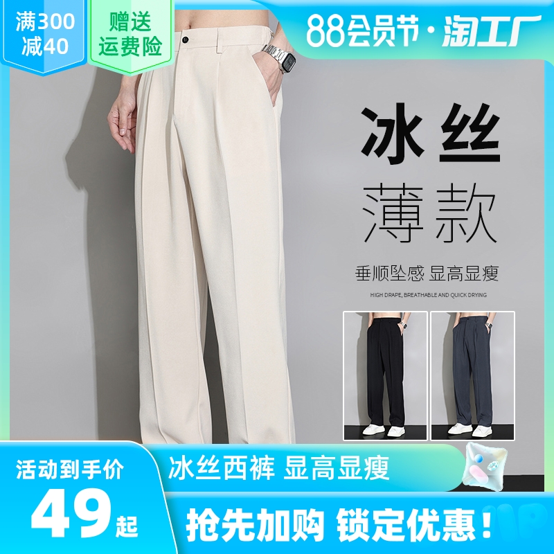 冰絲西褲男士夏季薄款寬鬆直筒垂墜感高級感西裝褲子夏天休閒長褲