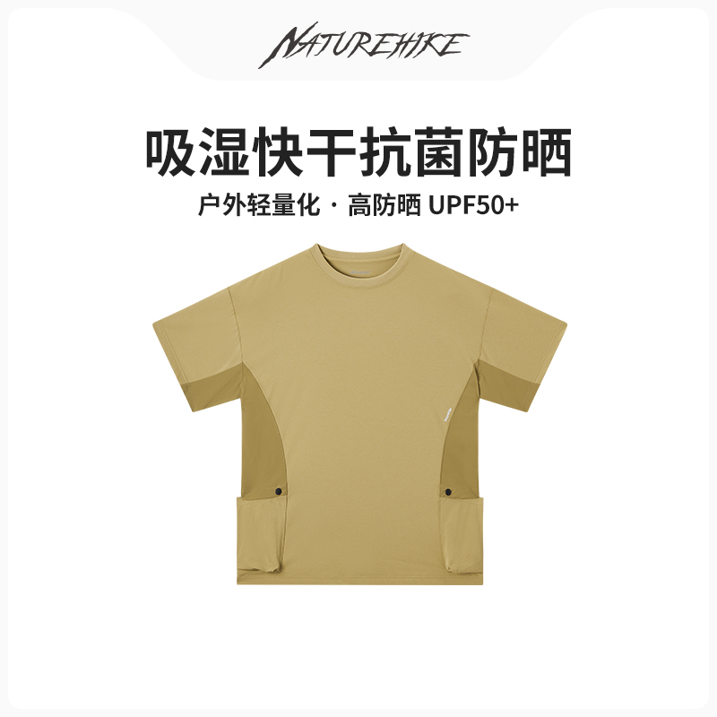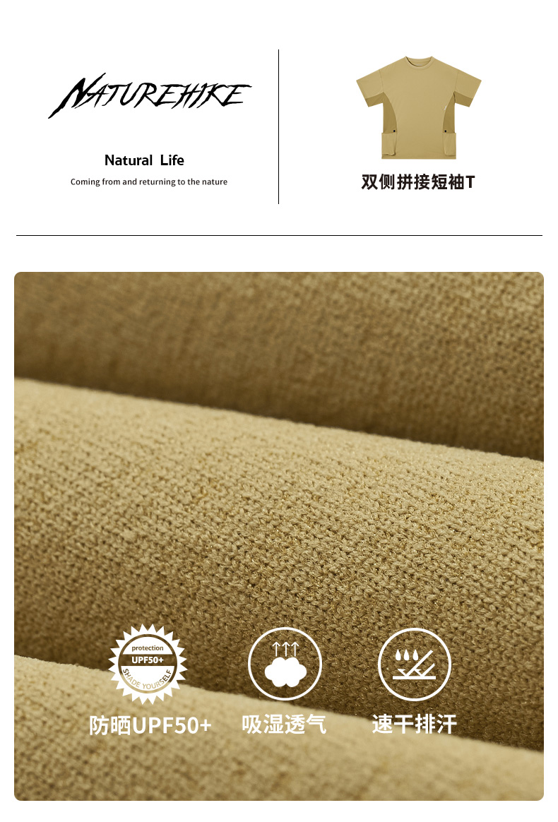 Naturehike挪客雙側拼接短袖2023夏季戶外運動防曬T恤男速乾寬鬆